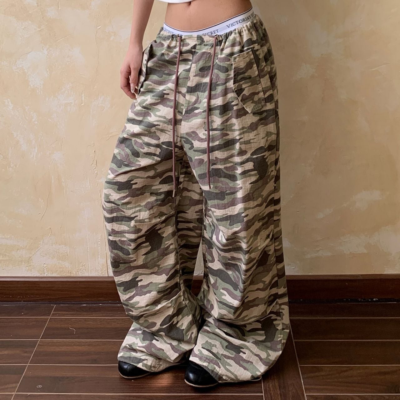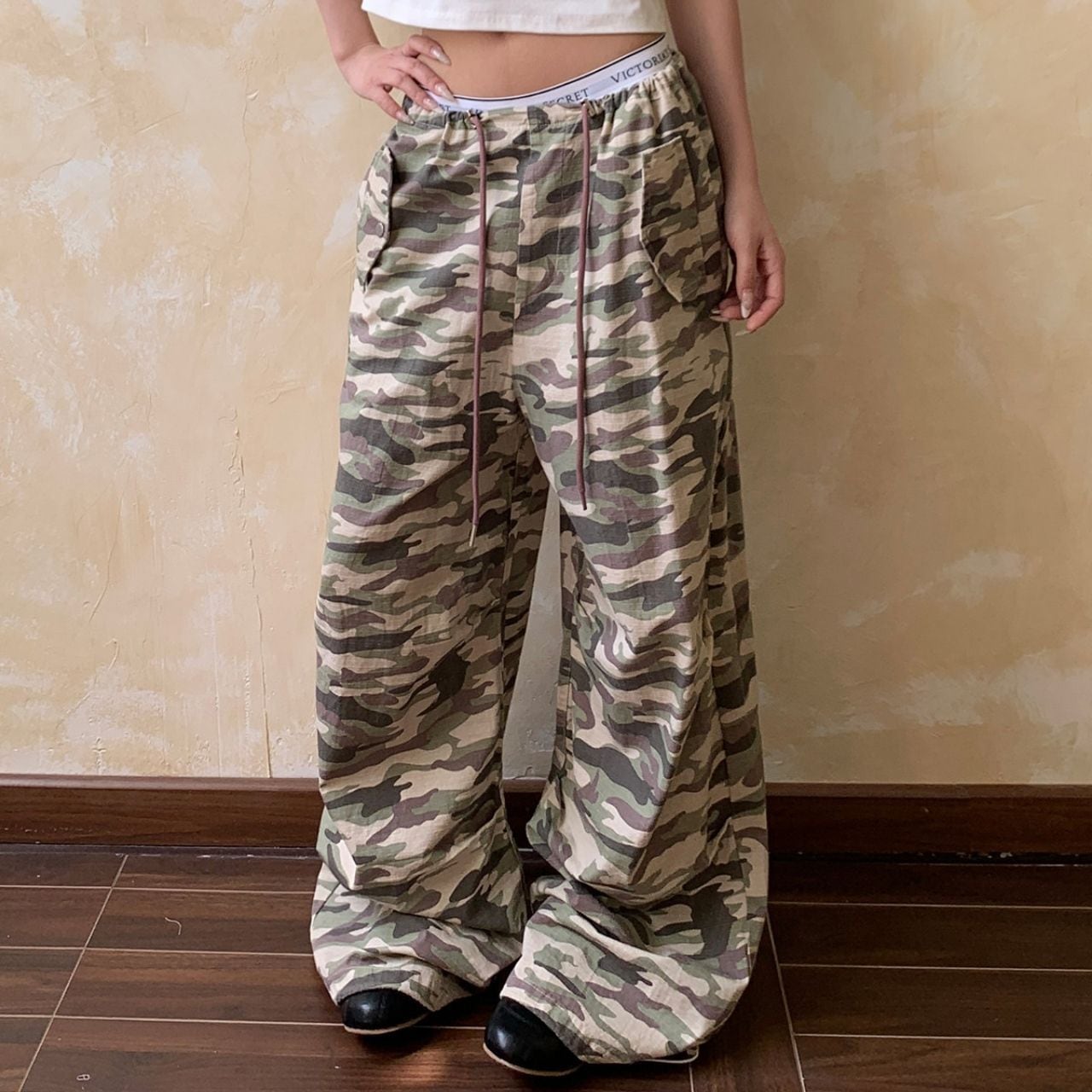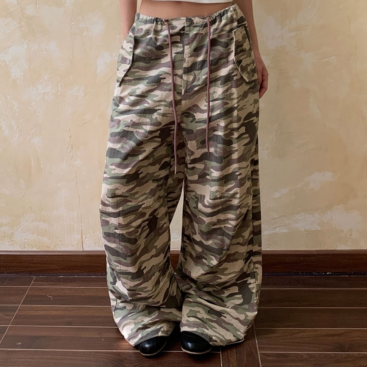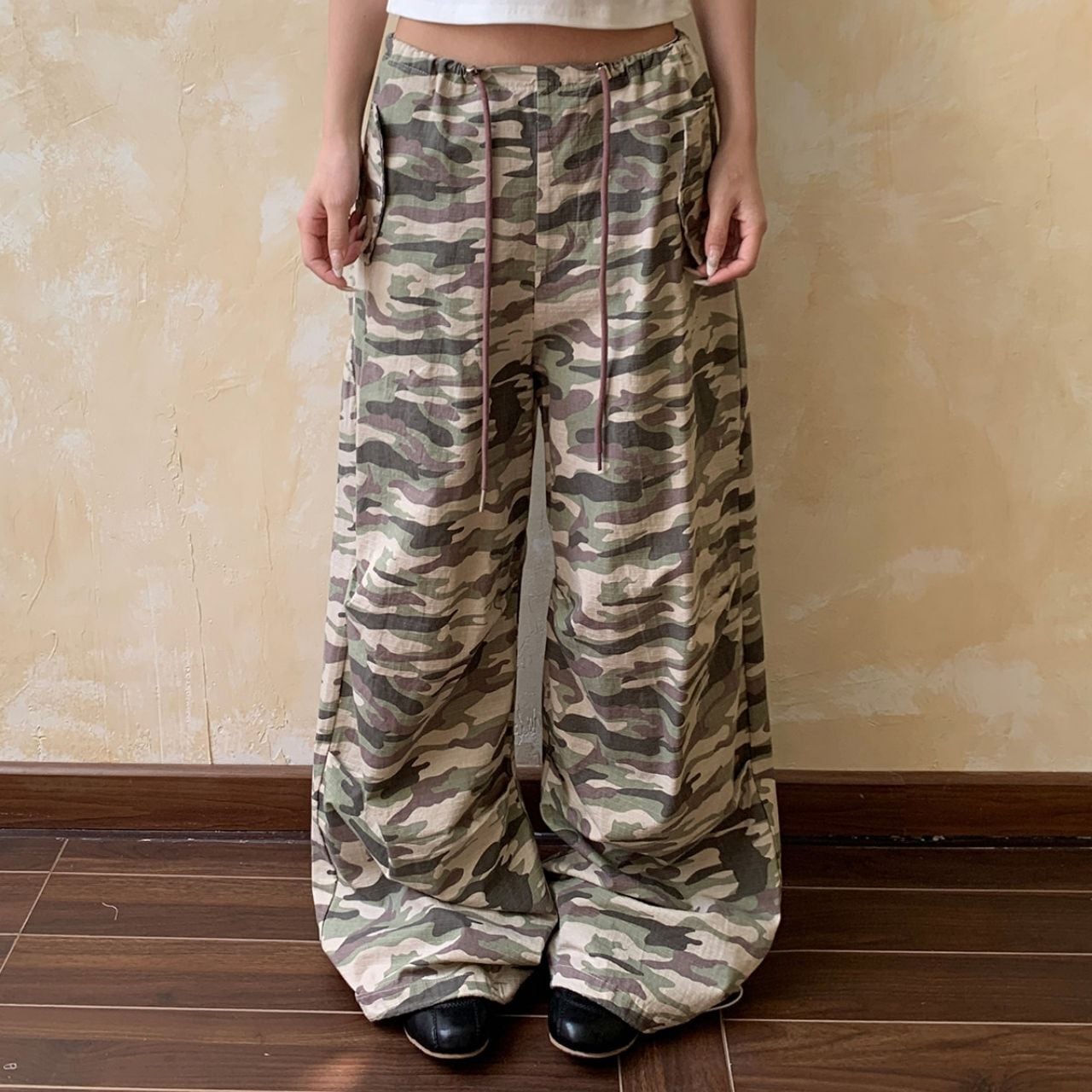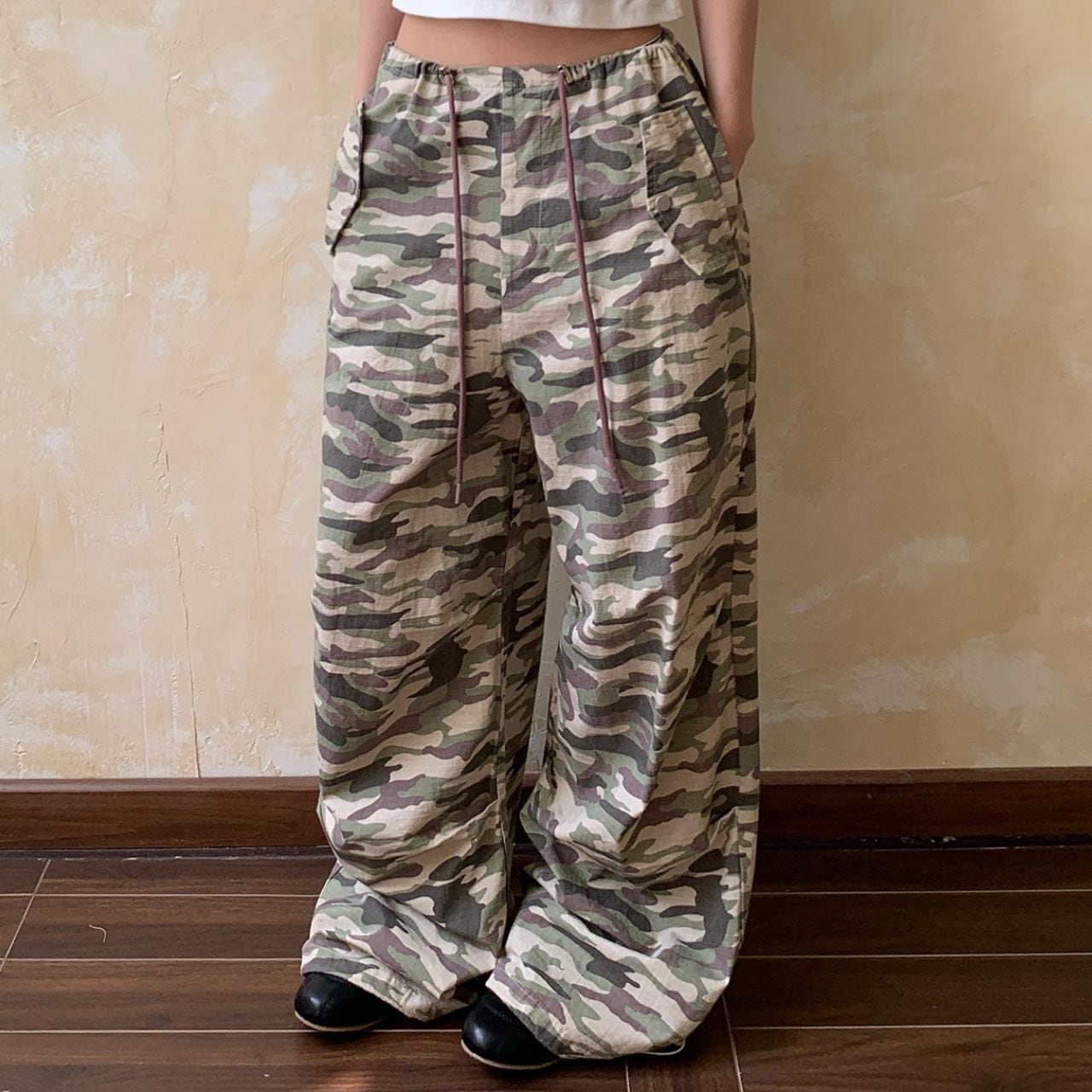 存在感のあるカモフラージュ柄が、スタイリングの主役になるワイドパンツ。