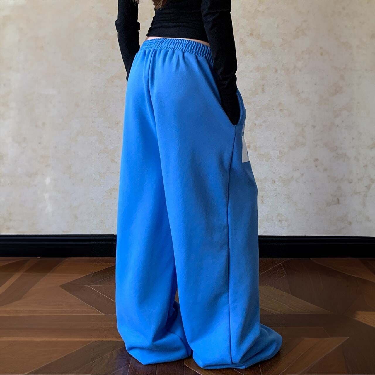 大胆なロゴプリントが目を引く、ストリートムード全開のワイドパンツ。