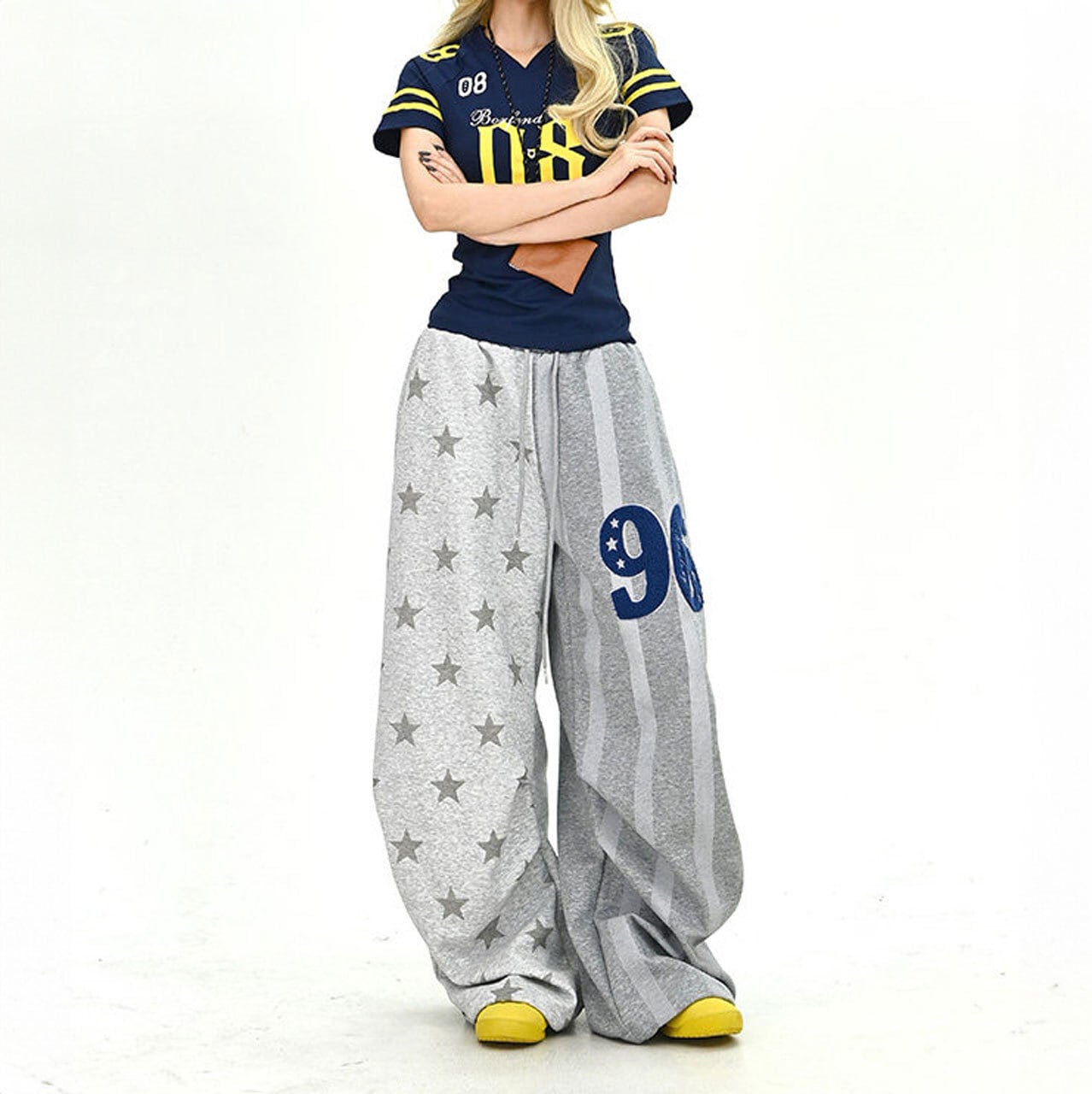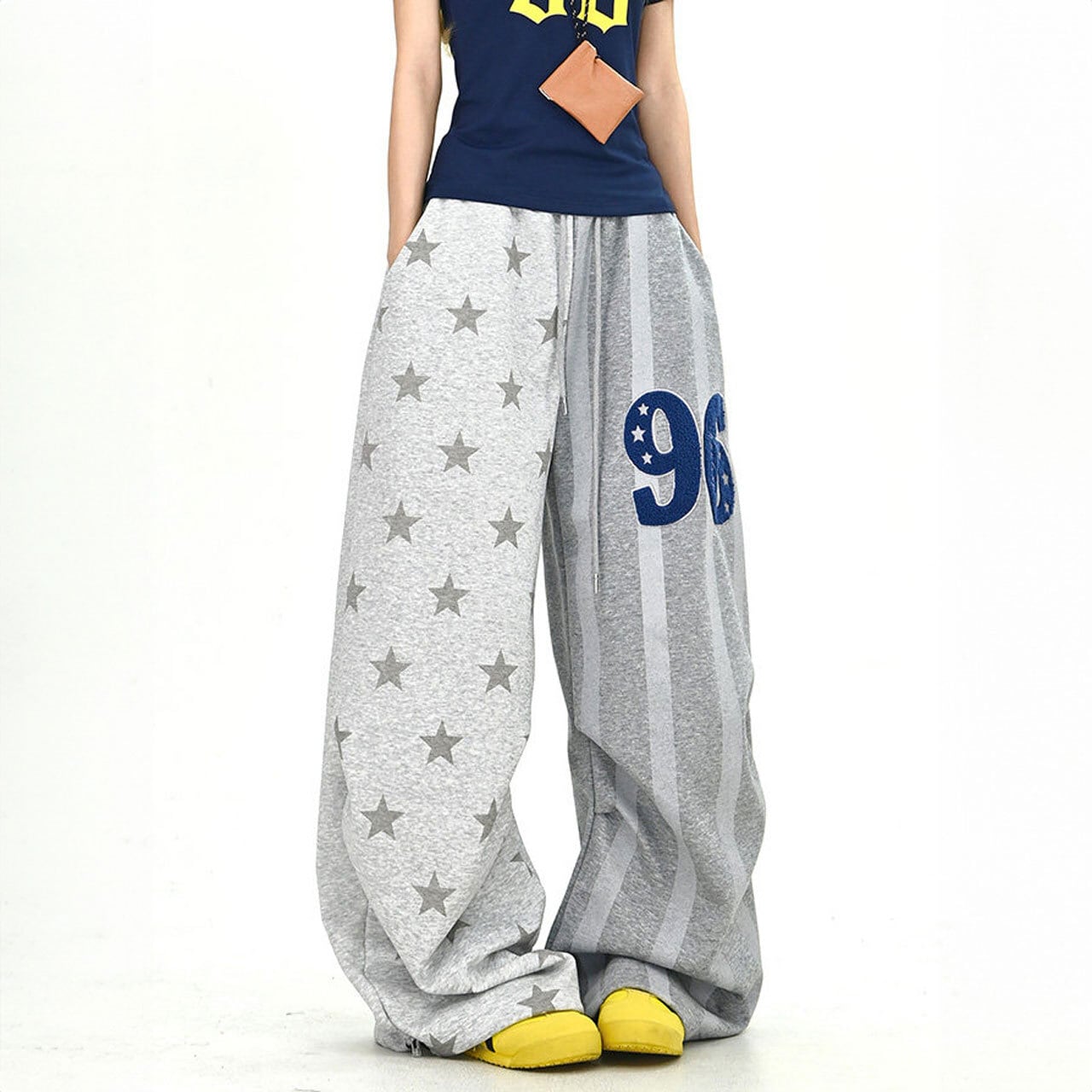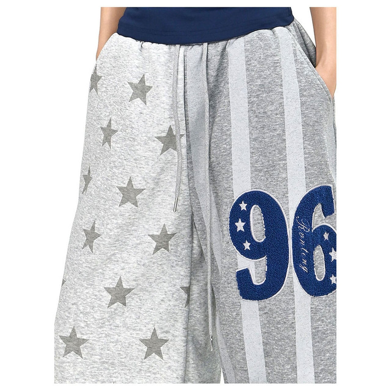 スター柄とストライプを大胆に切り替えた、インパクト抜群のワイドパンツ。