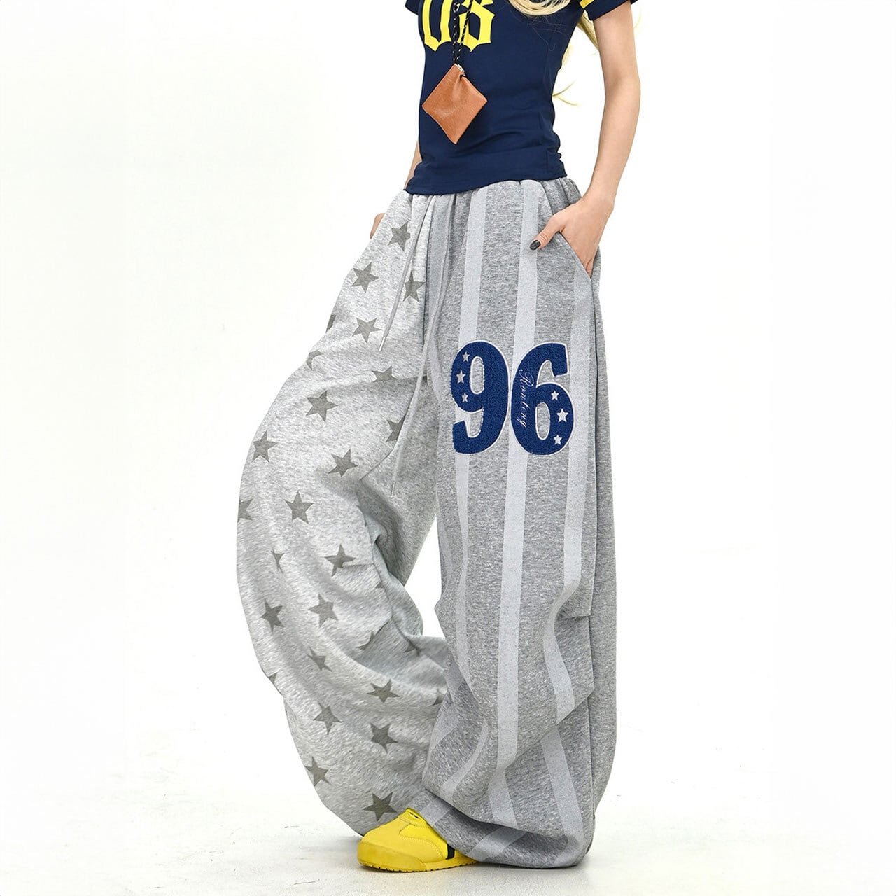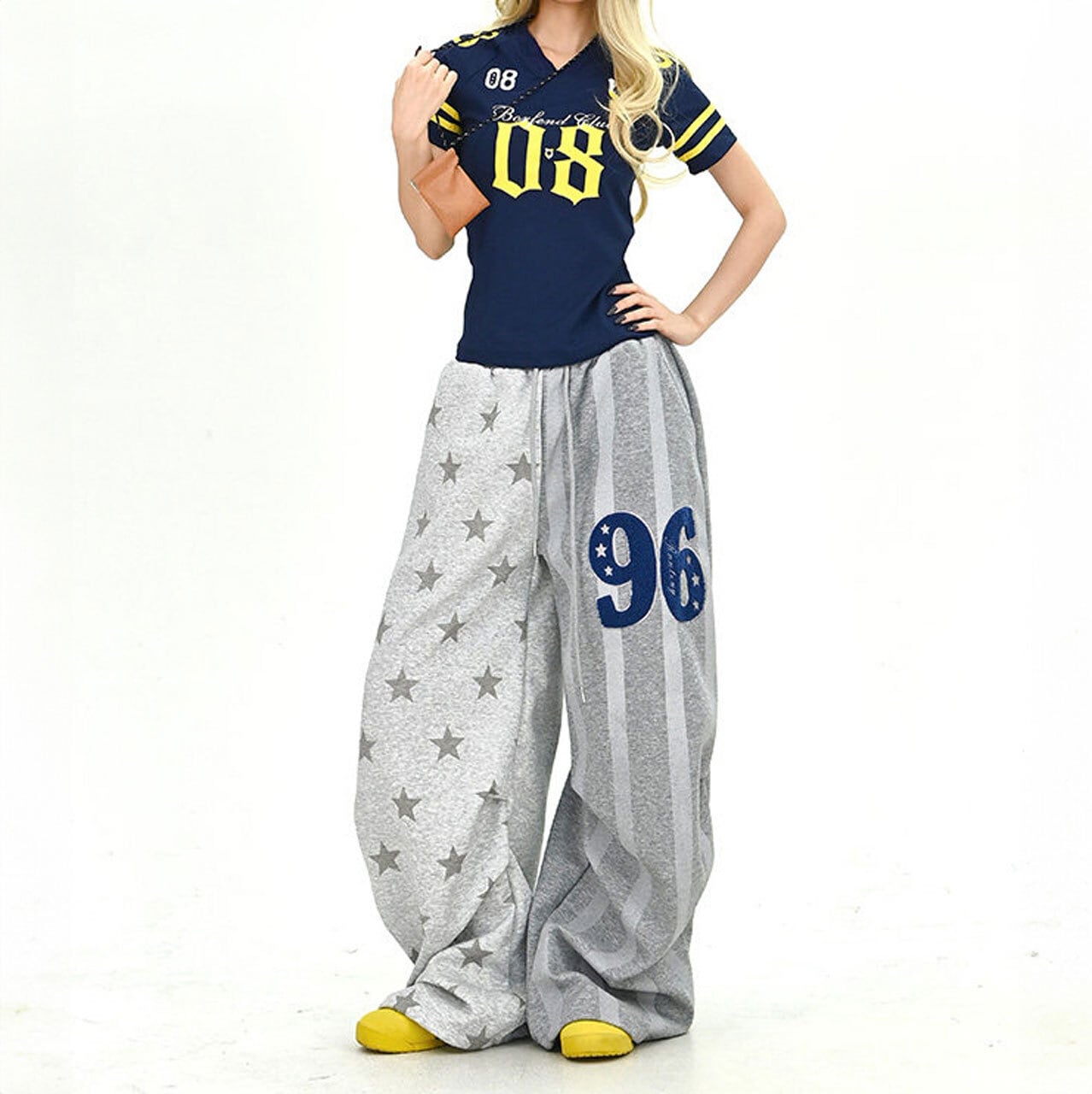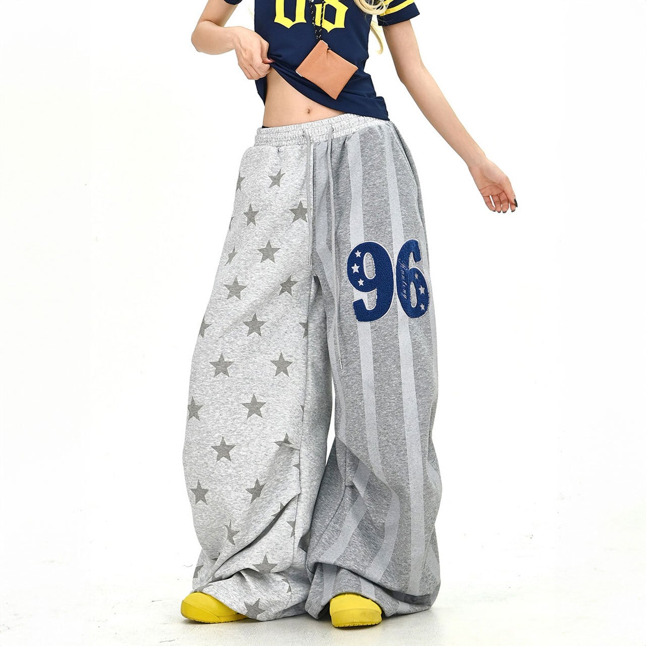 スター柄とストライプを大胆に切り替えた、インパクト抜群のワイドパンツ。