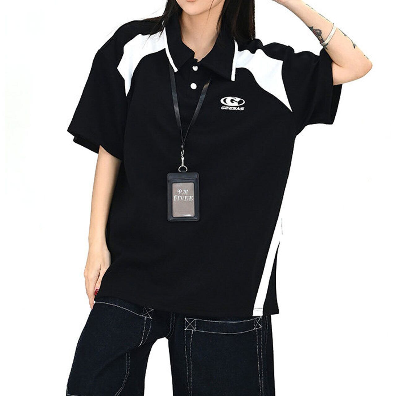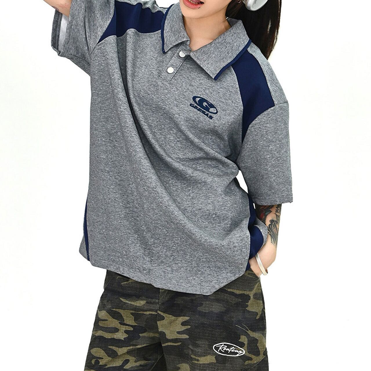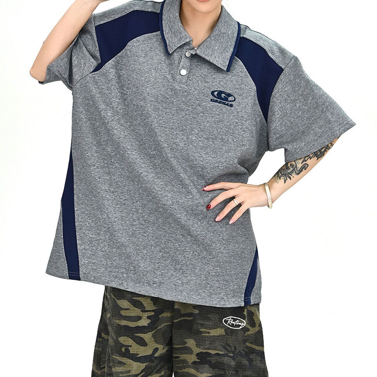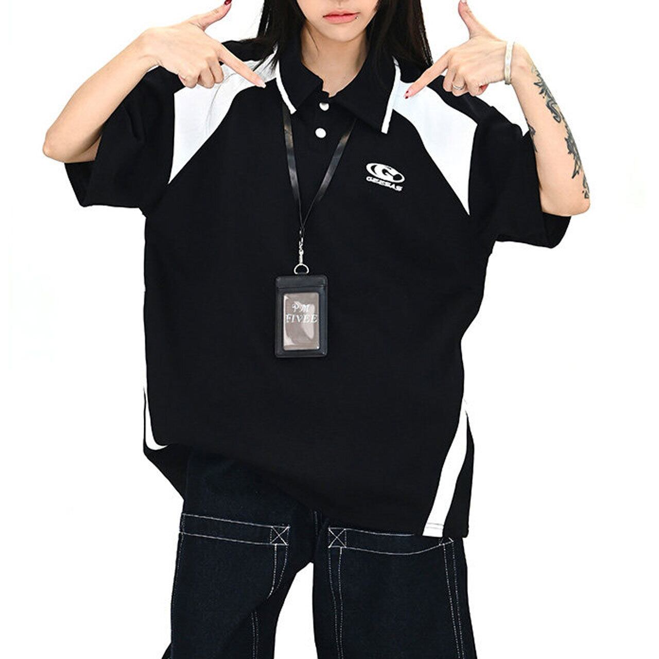 配色切替が目を引く、スポーティームード漂うポロトップス。