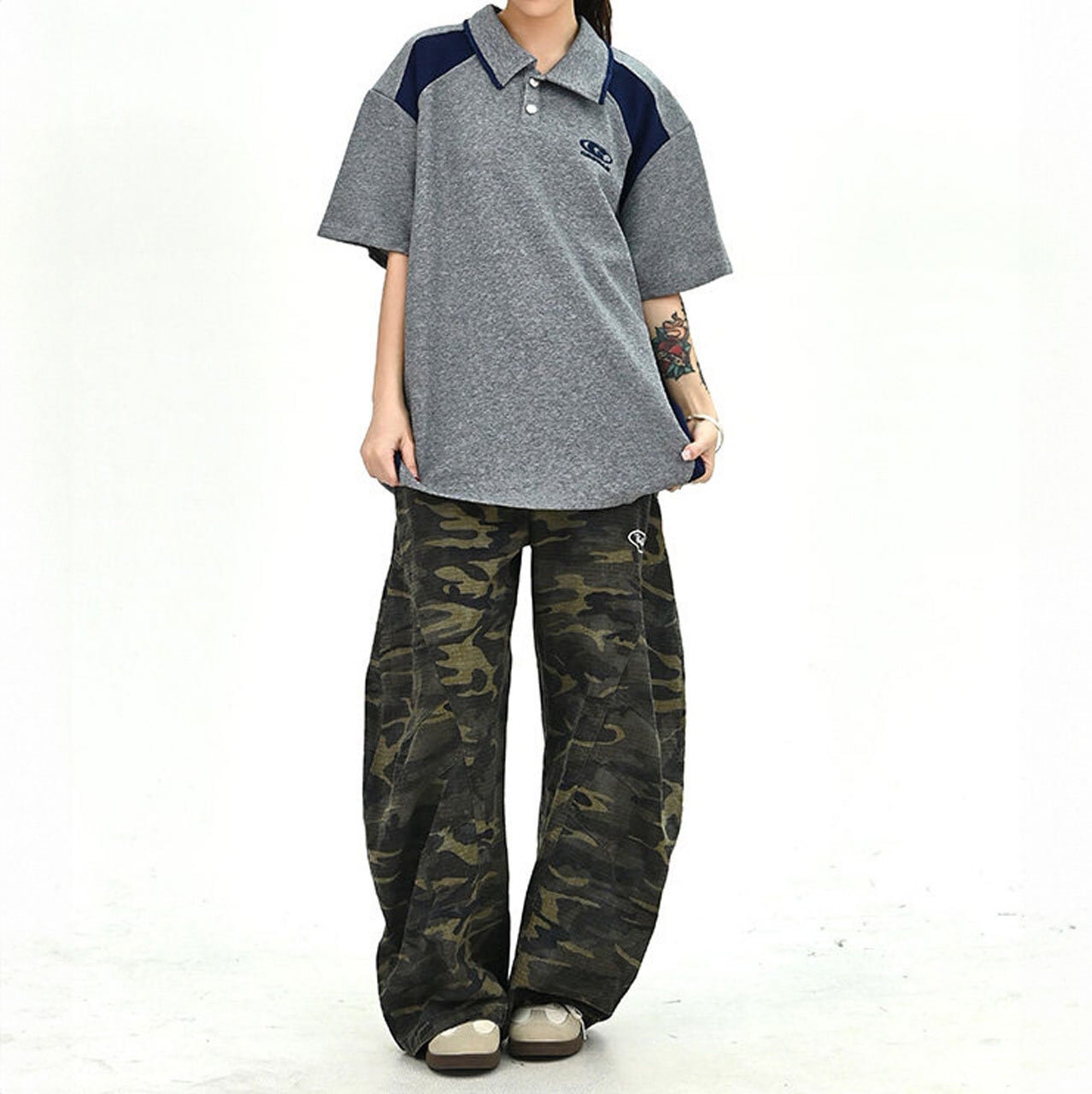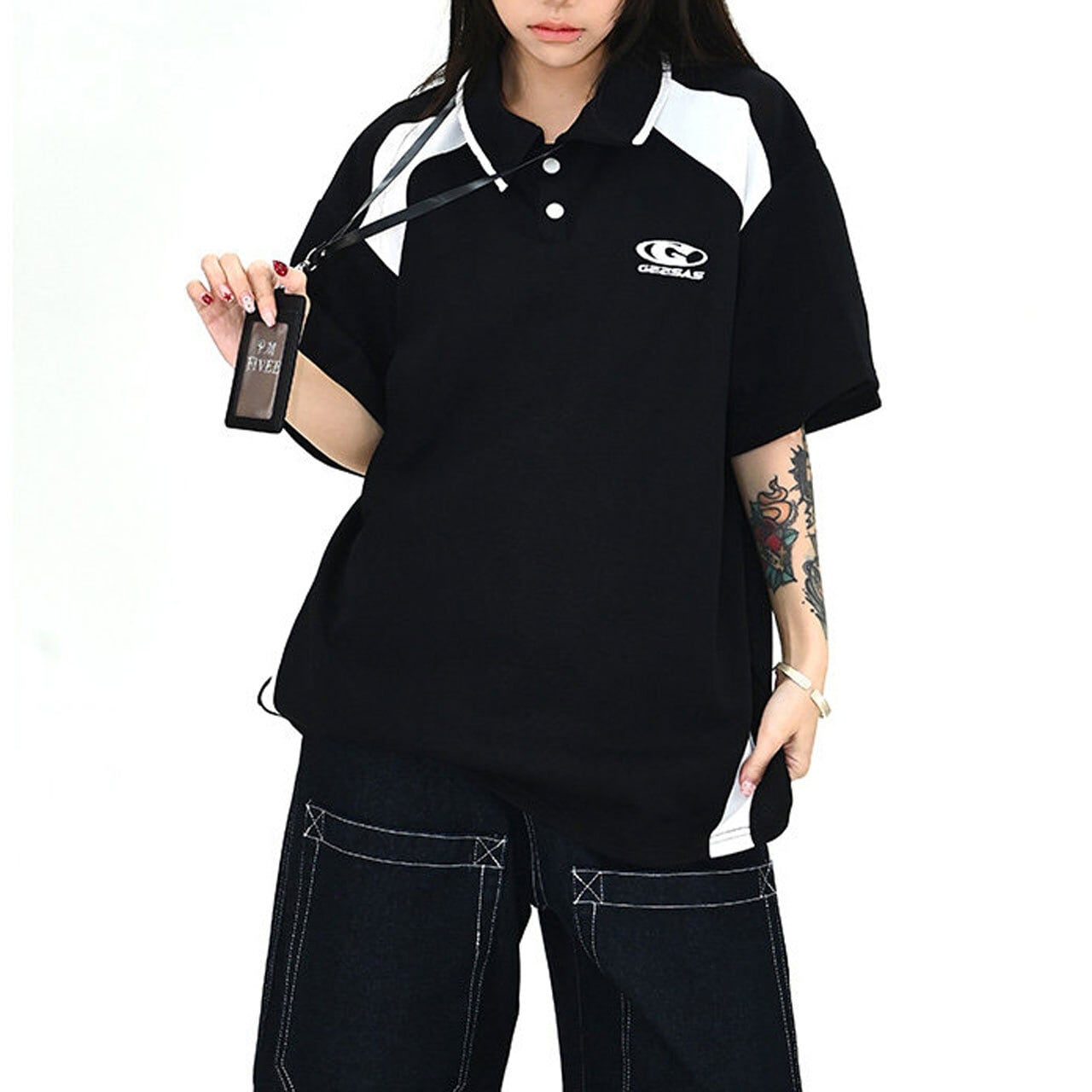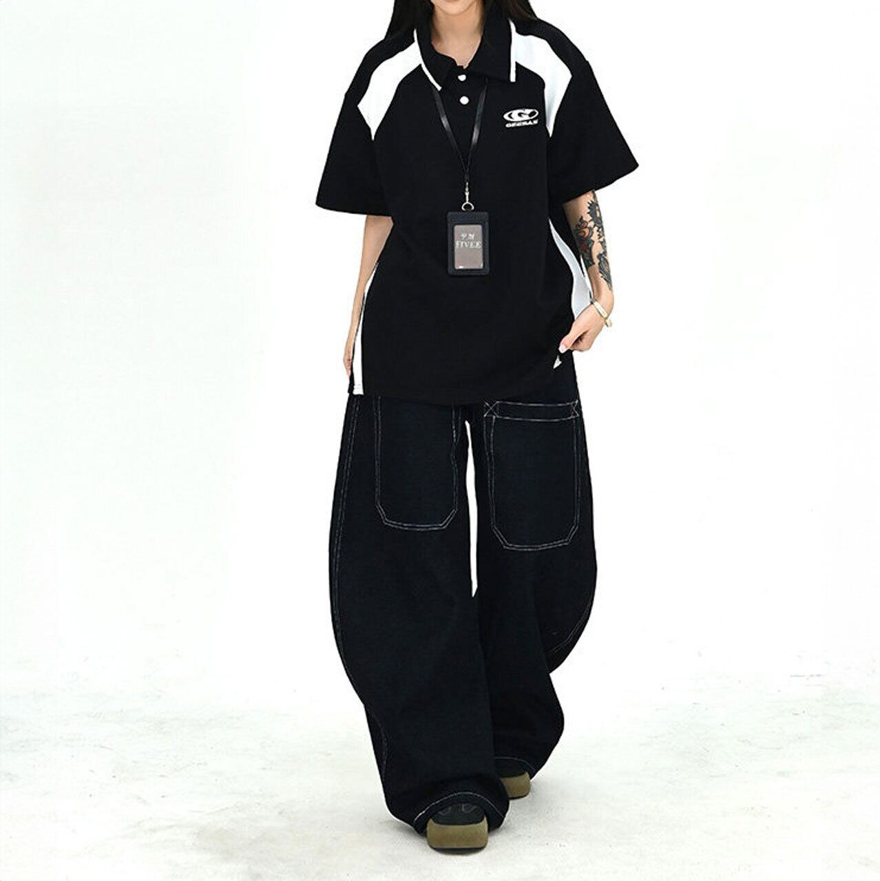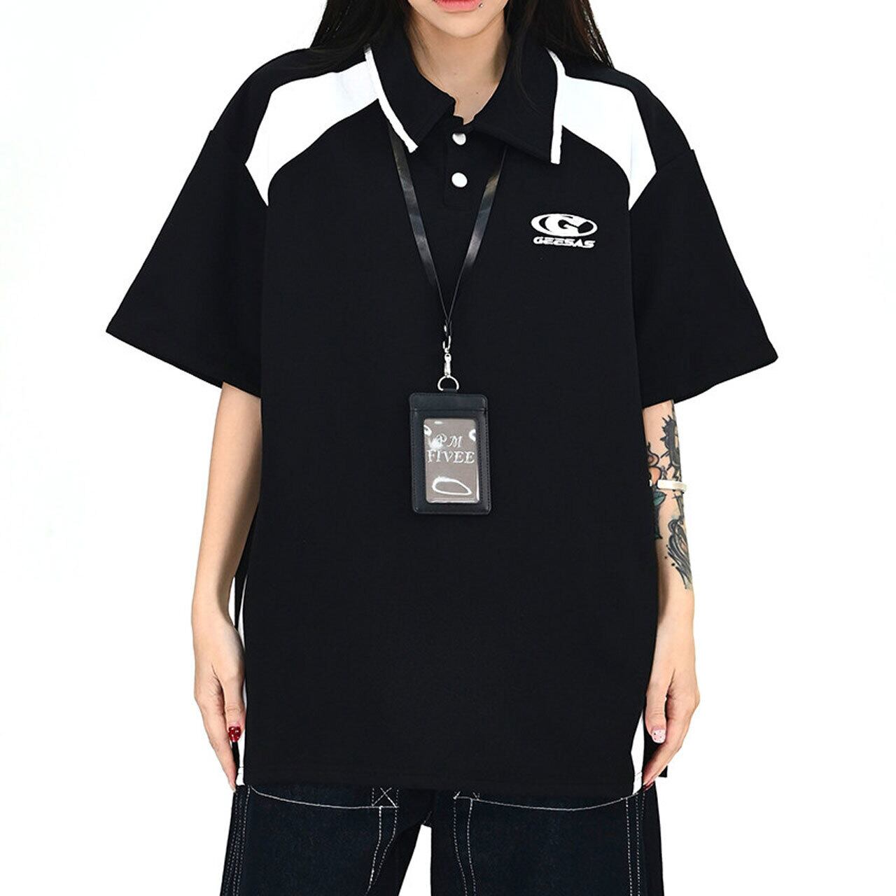 配色切替が目を引く、スポーティームード漂うポロトップス。