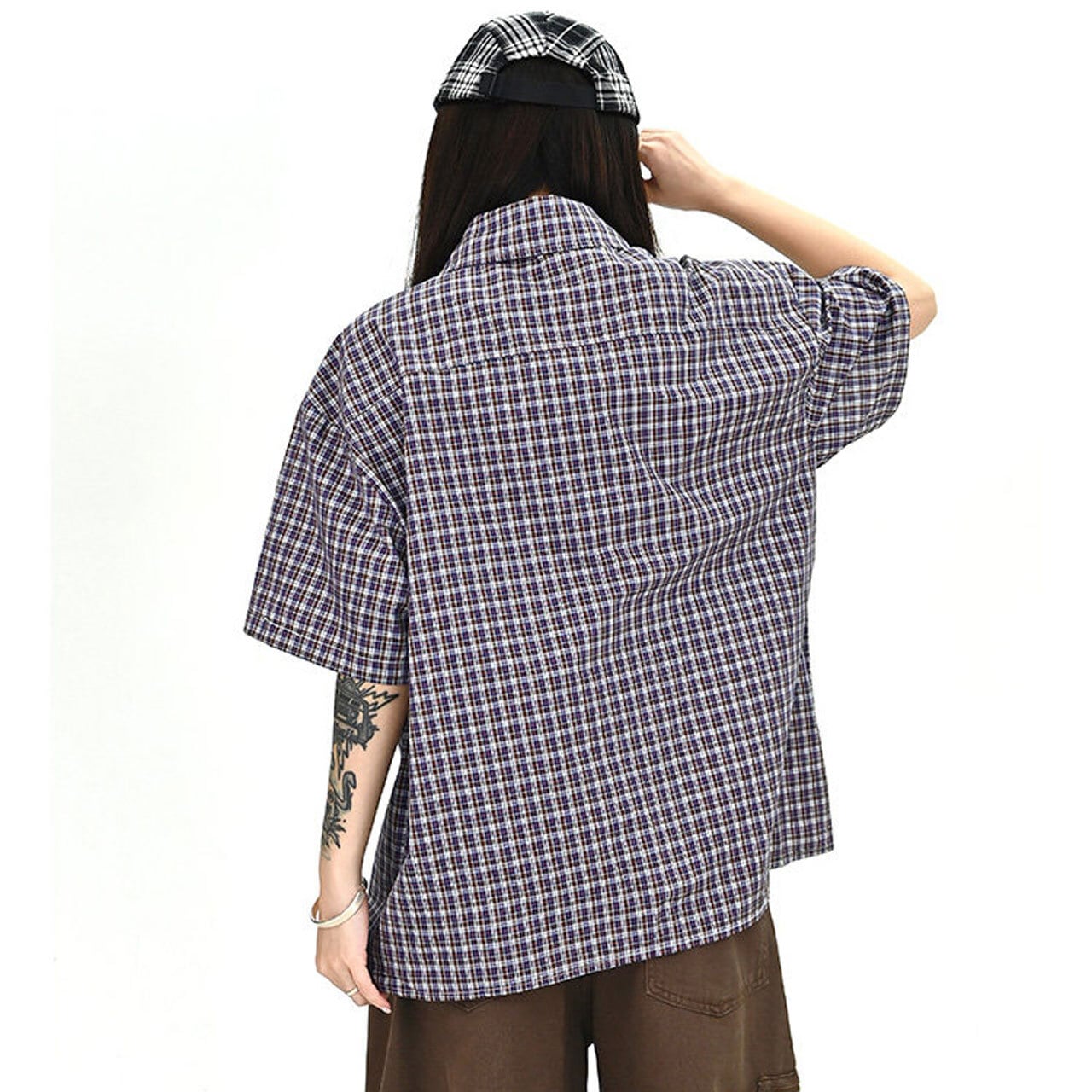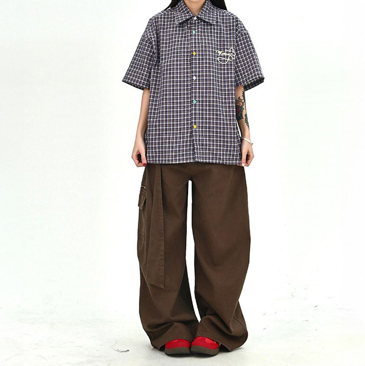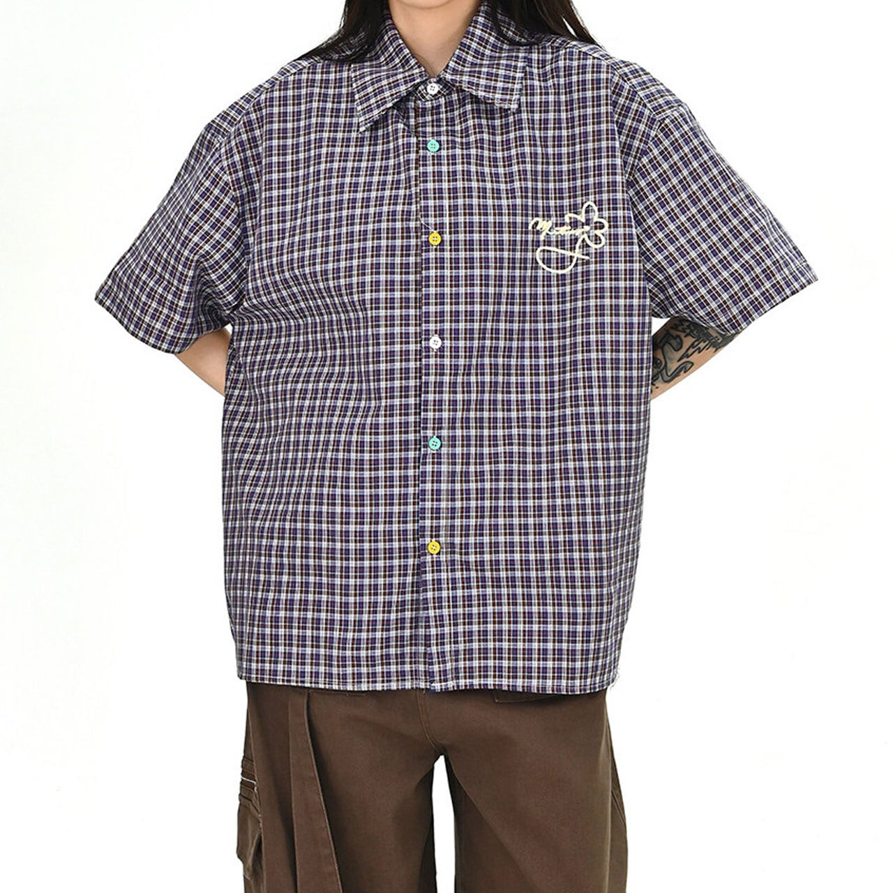 カラーボタンチェックデザインオーバーシャツ 1col R01674
