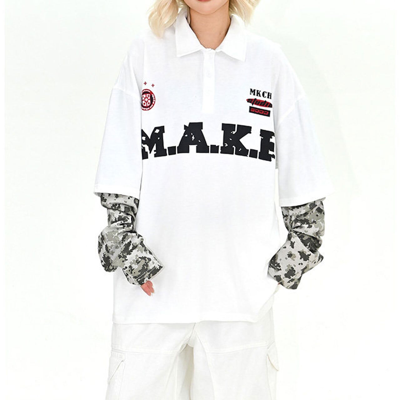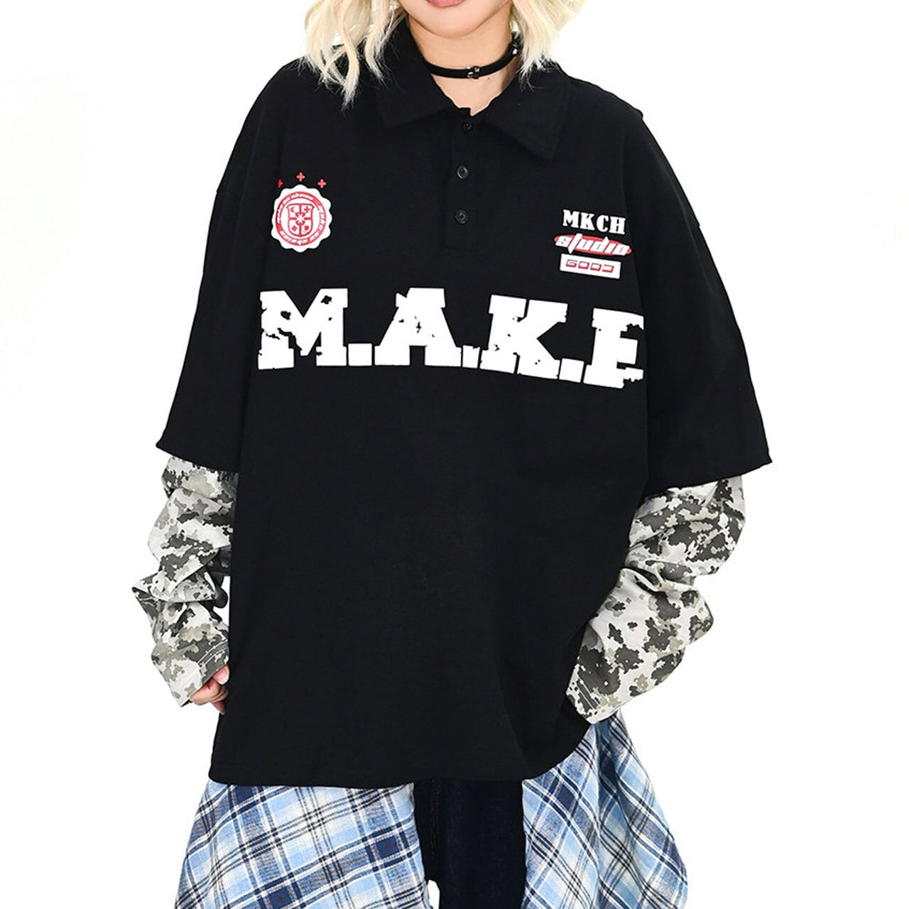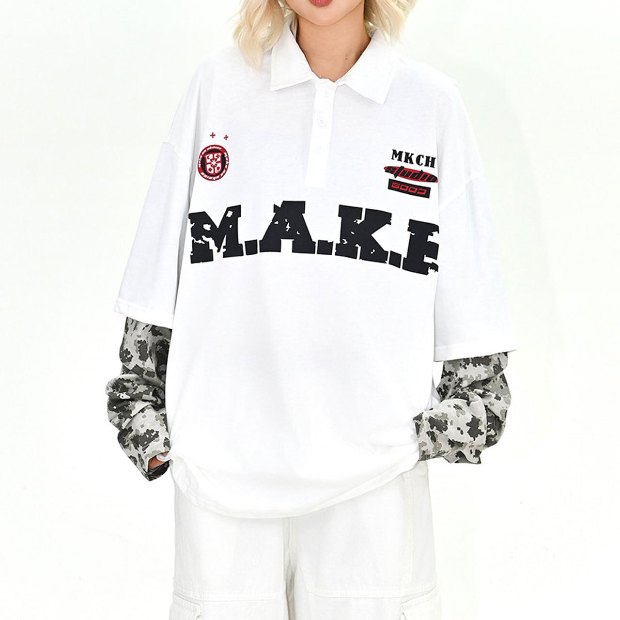 フロントのビッグロゴが視線を奪う、存在感抜群のポロトップス。