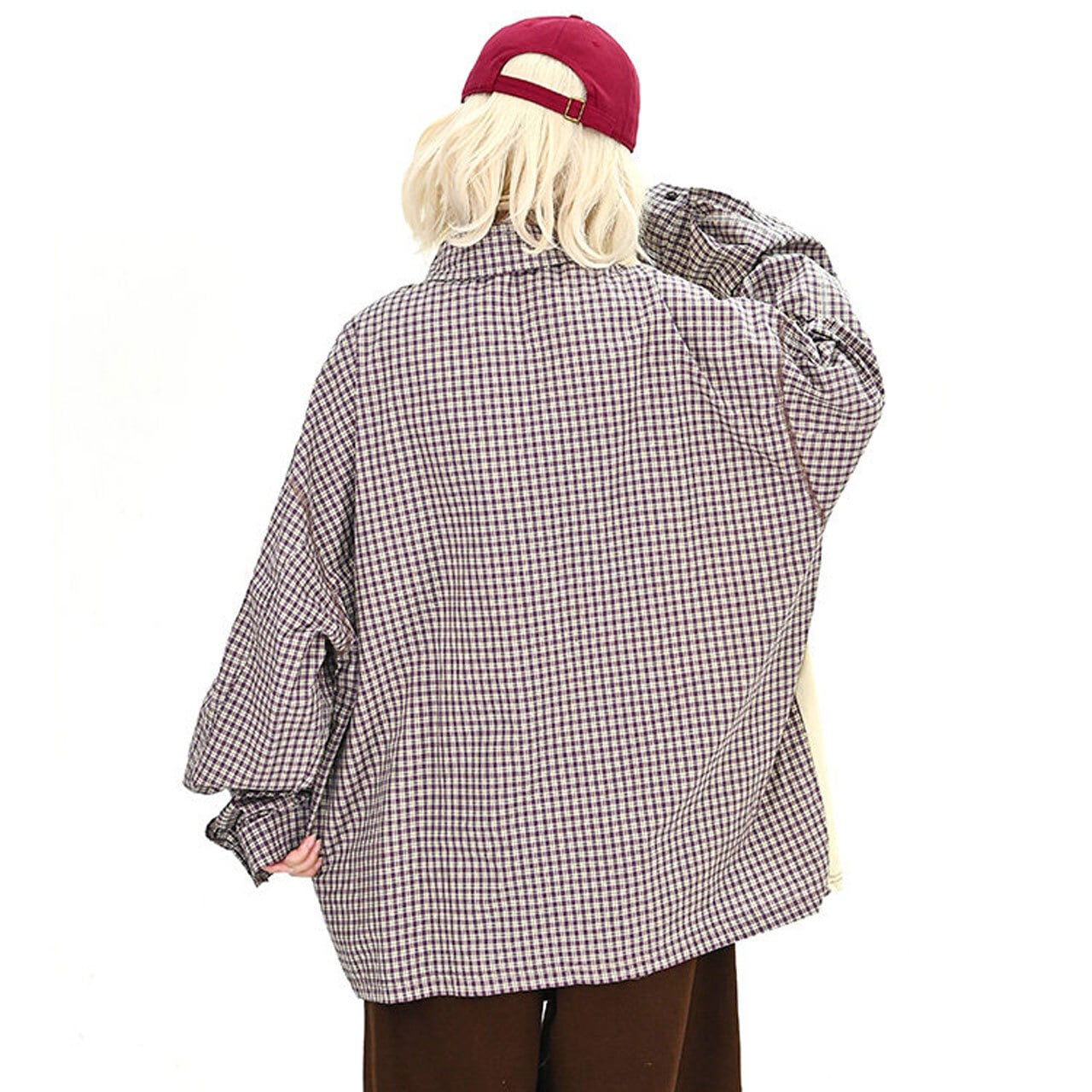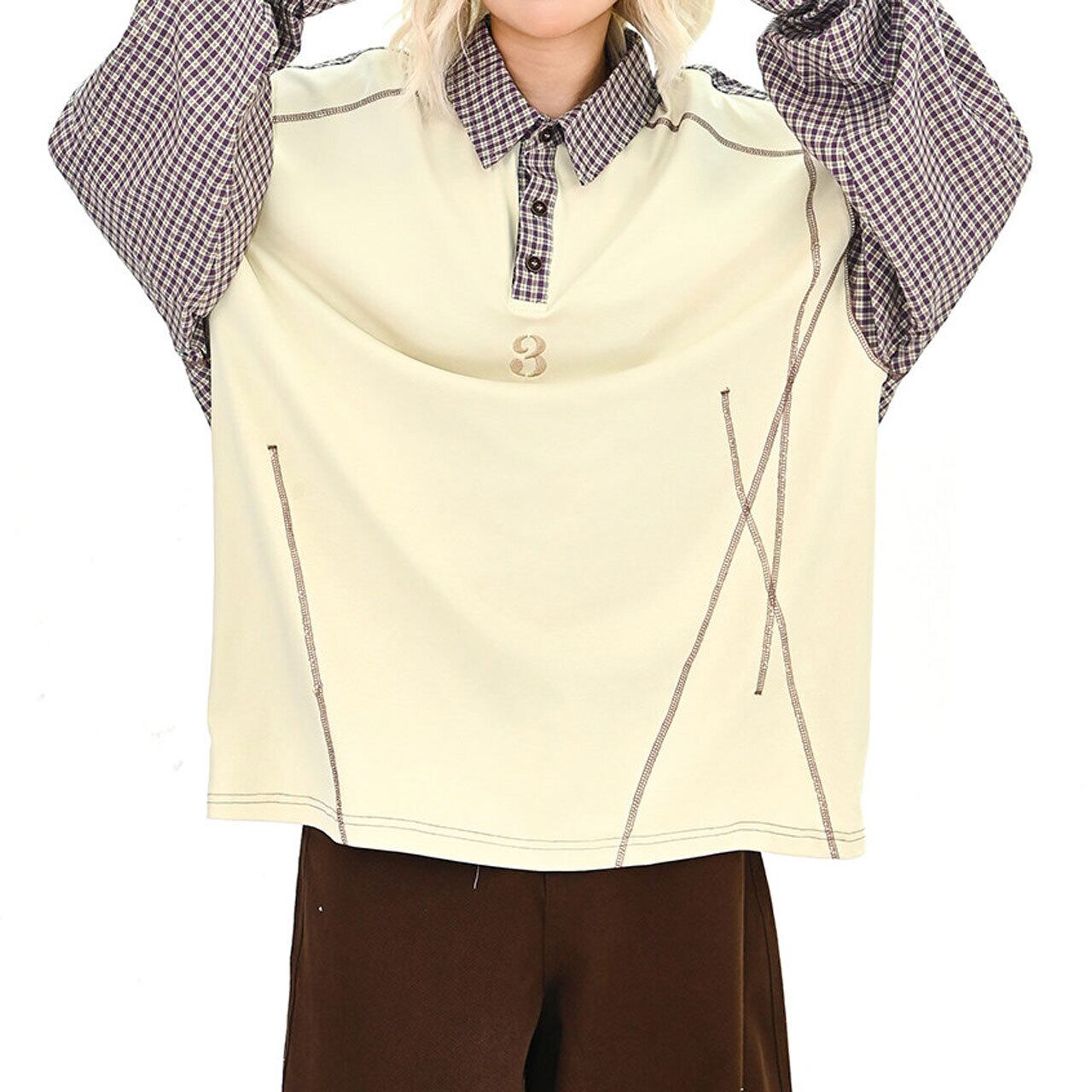 チェックシャツをドッキングしたようなレイヤード風デザインが目を惹く1枚。