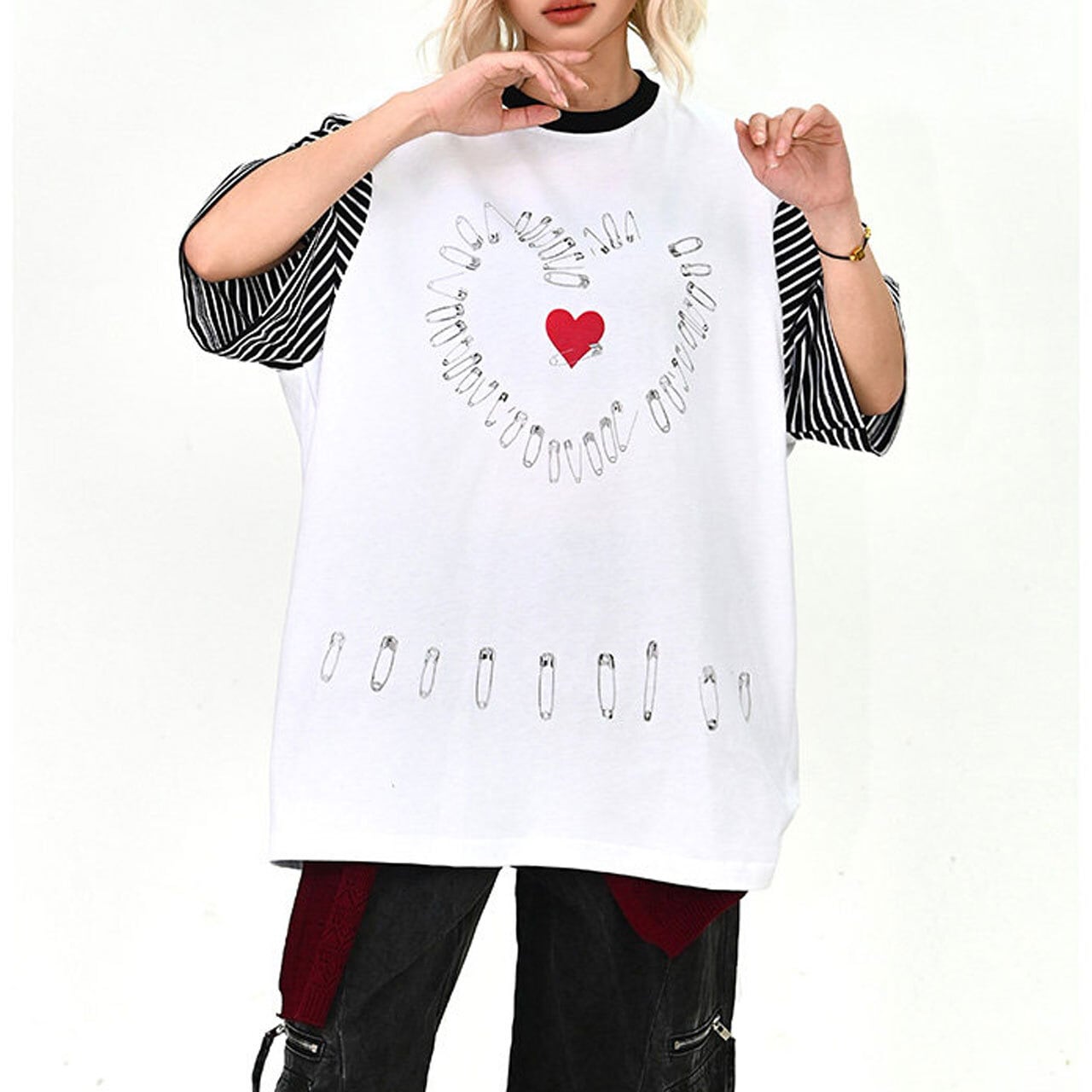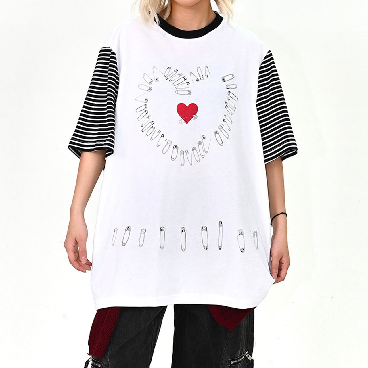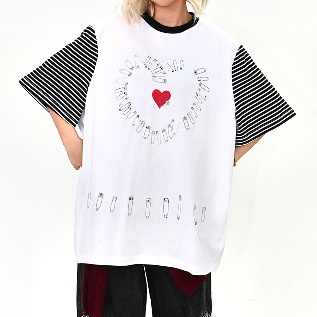 セーフティピンハートグラフィックビッグTシャツ 1col R01693