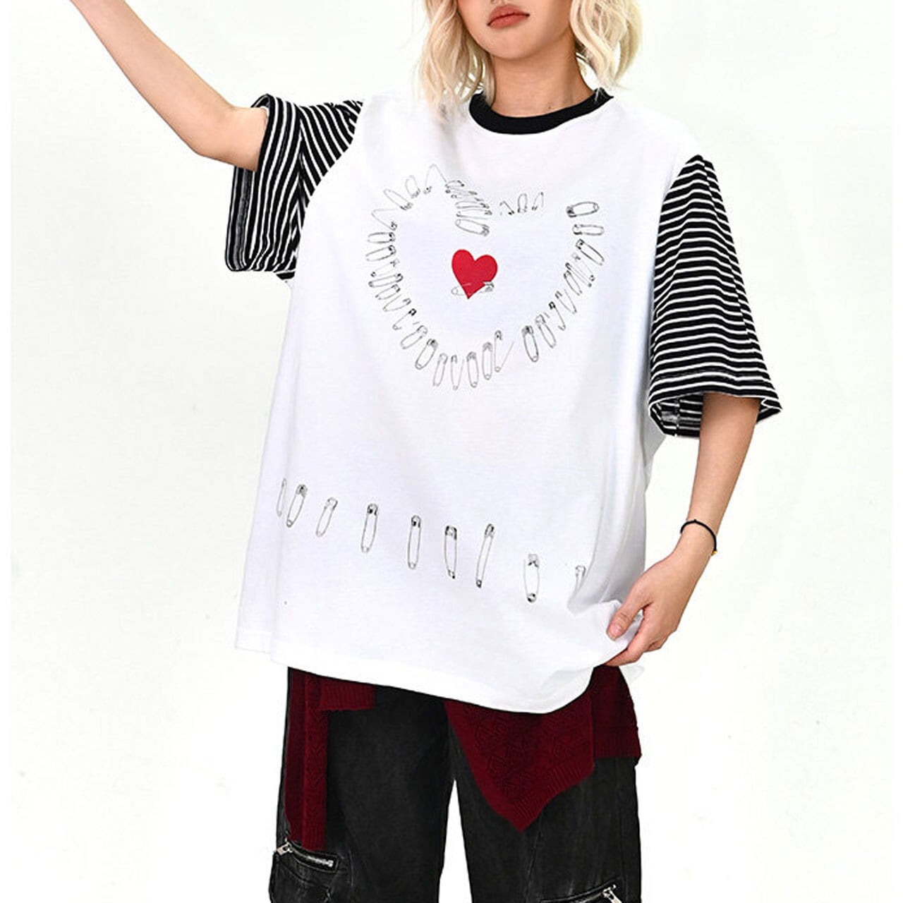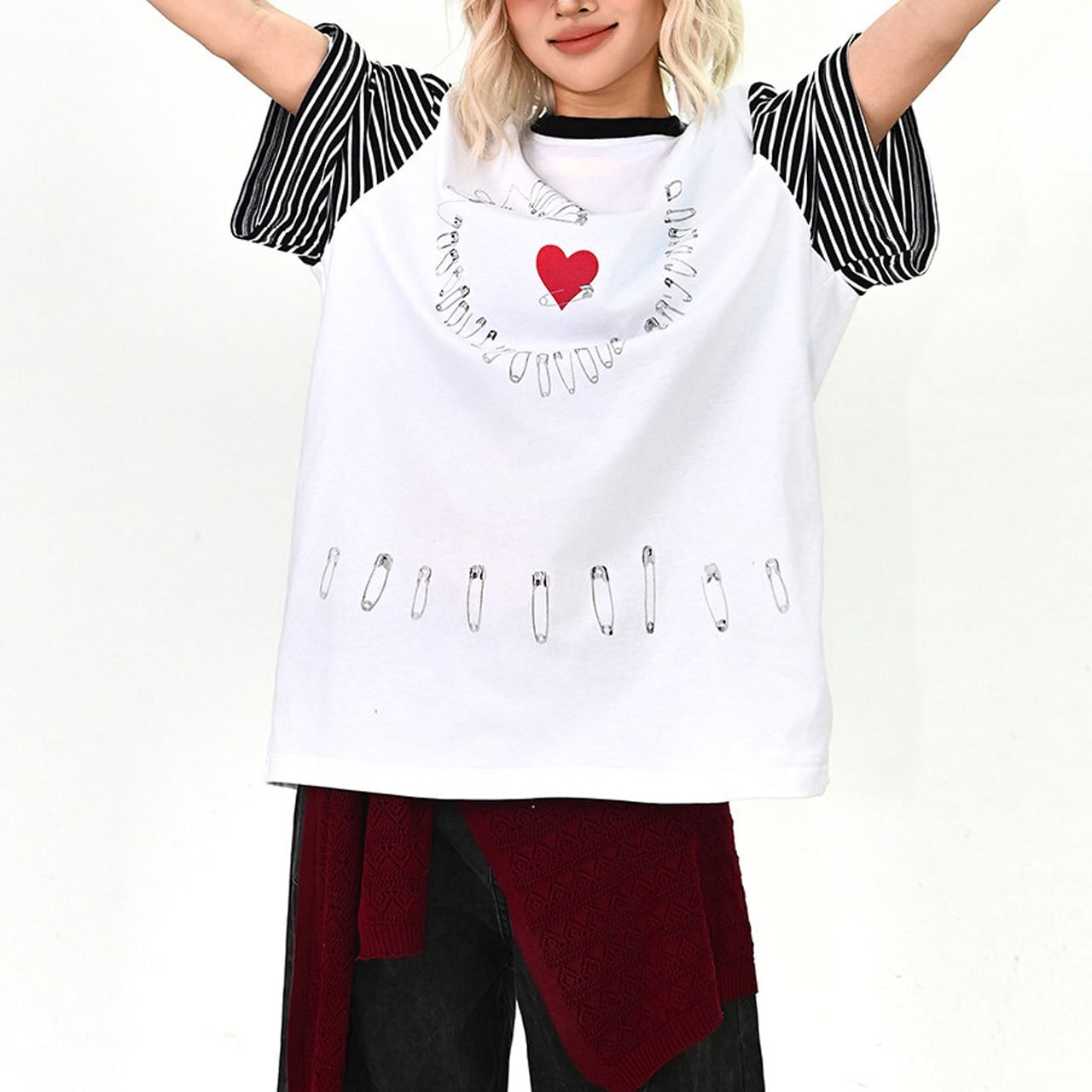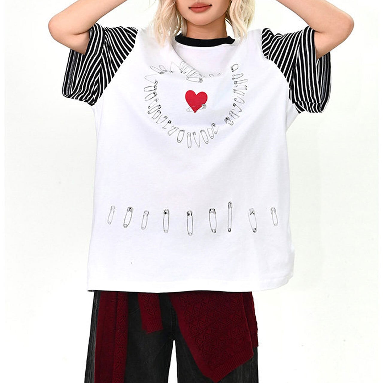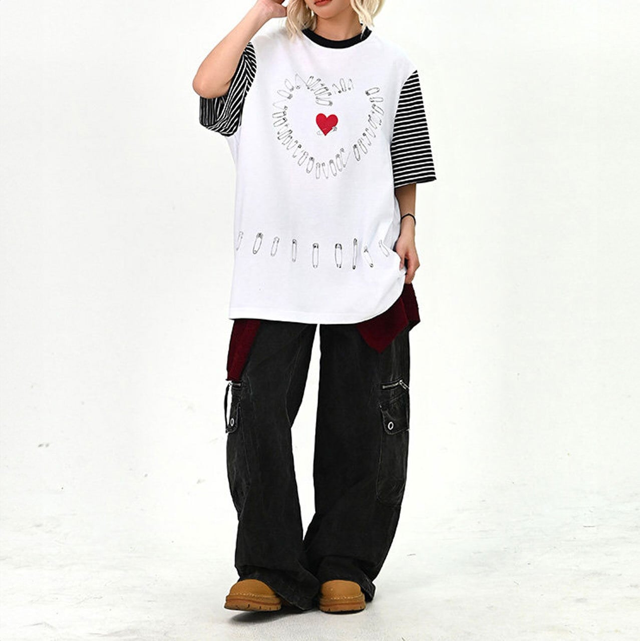 セーフティピンハートグラフィックビッグTシャツ 1col R01693