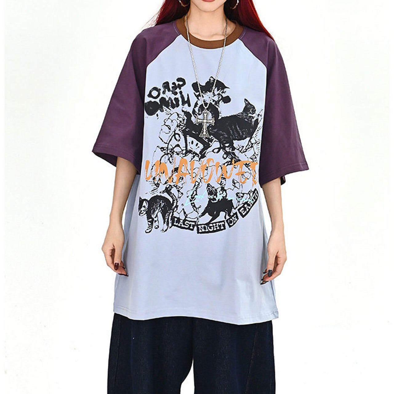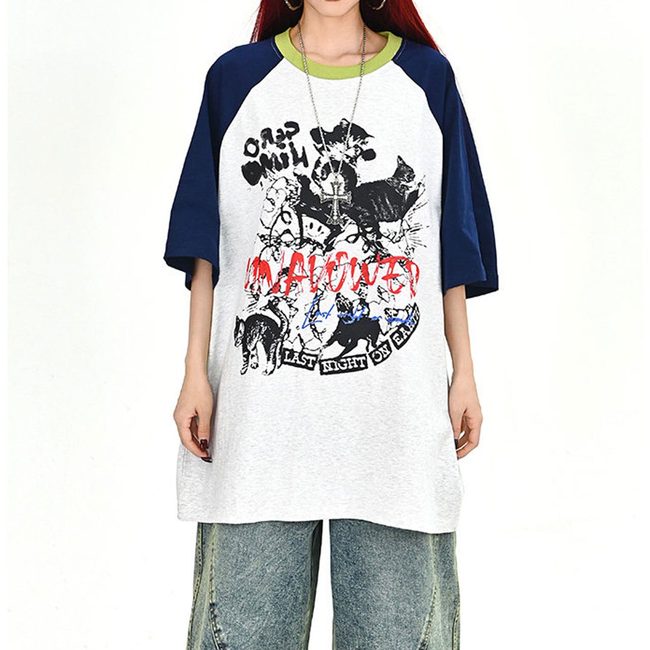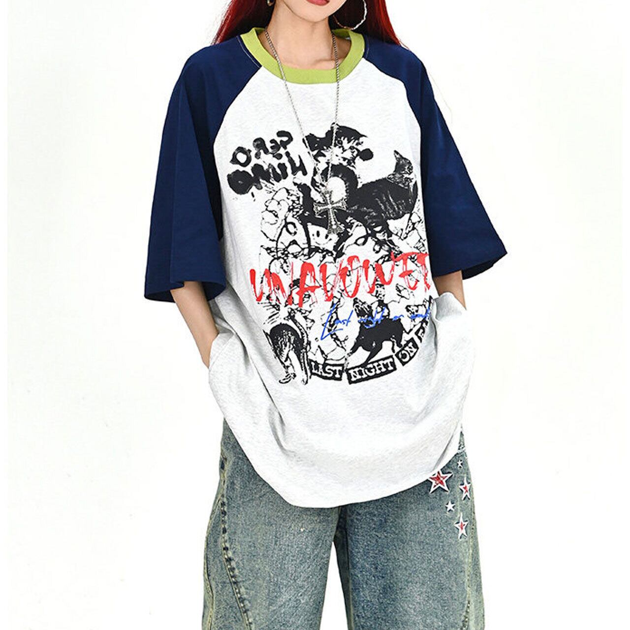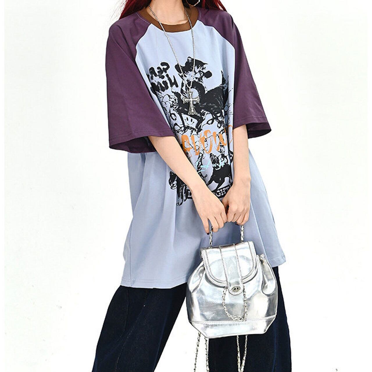 キャットグラフィックラグランビッグTシャツ 2col R01702