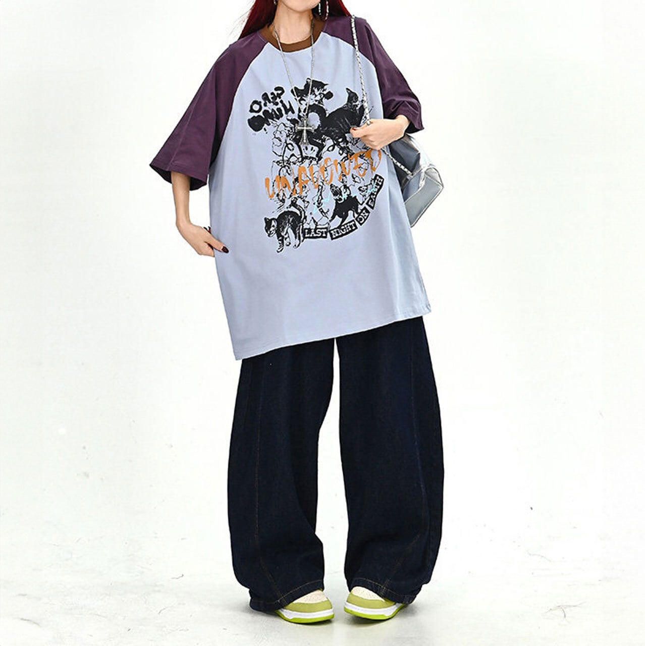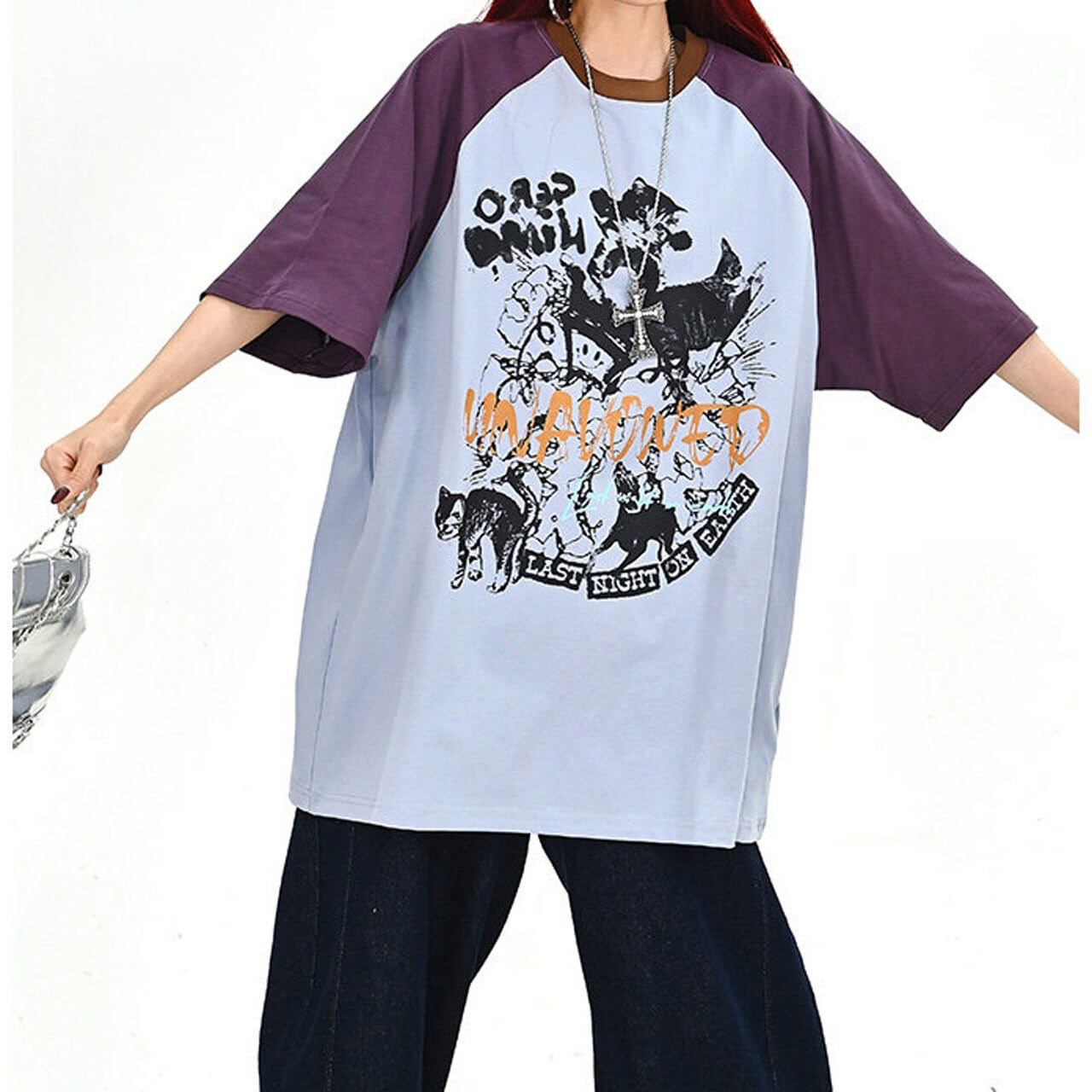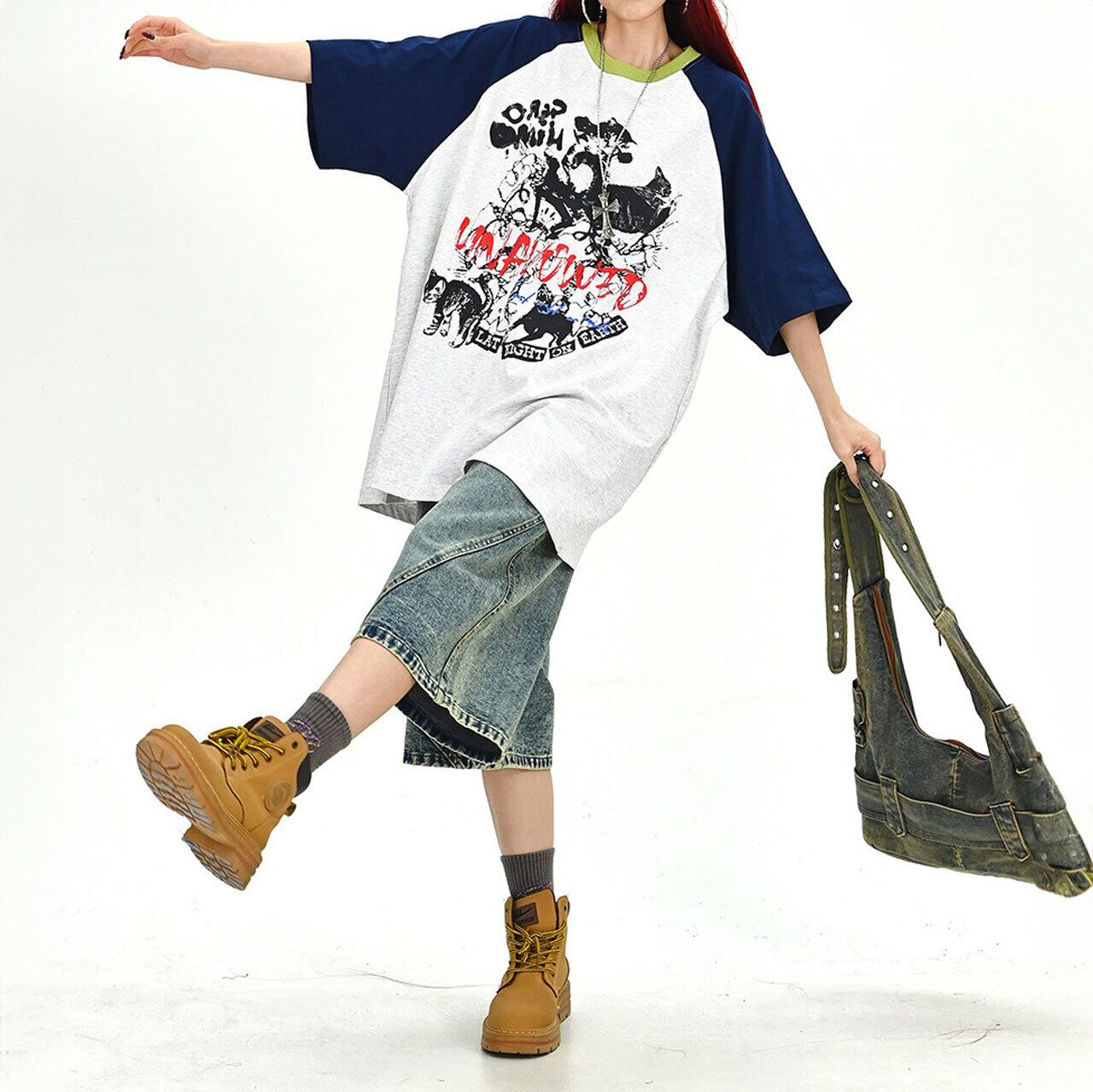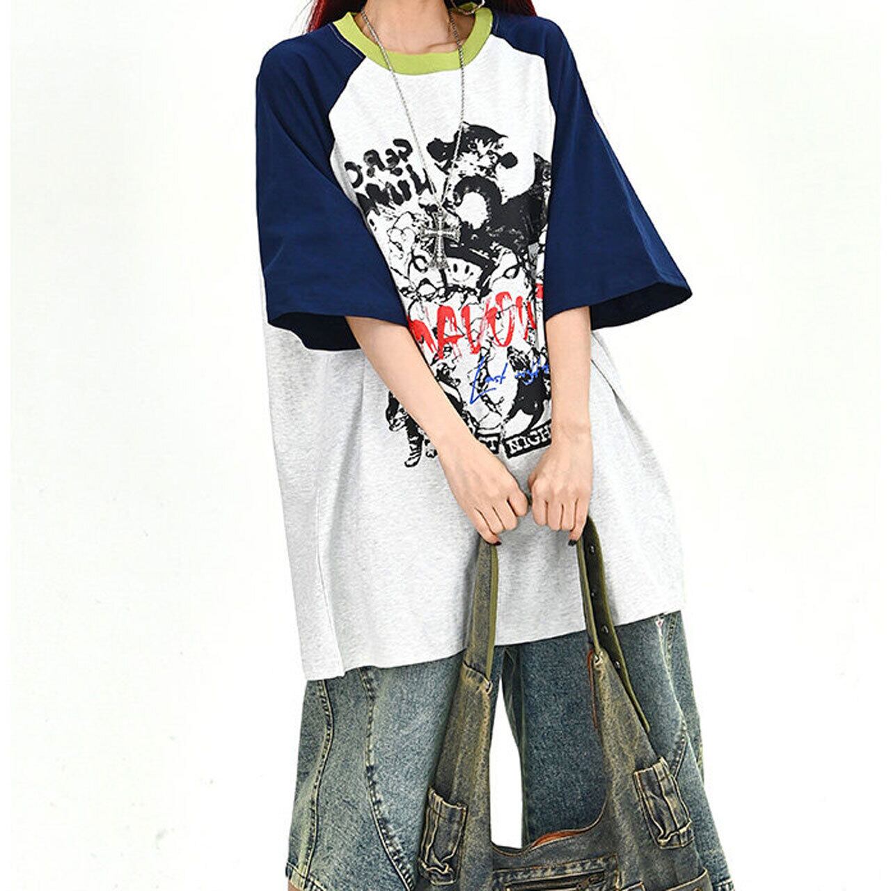 キャットグラフィックラグランビッグTシャツ 2col R01702