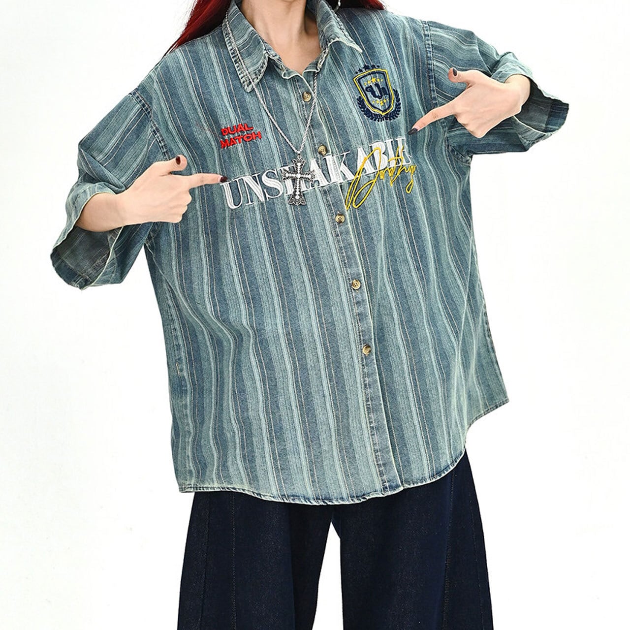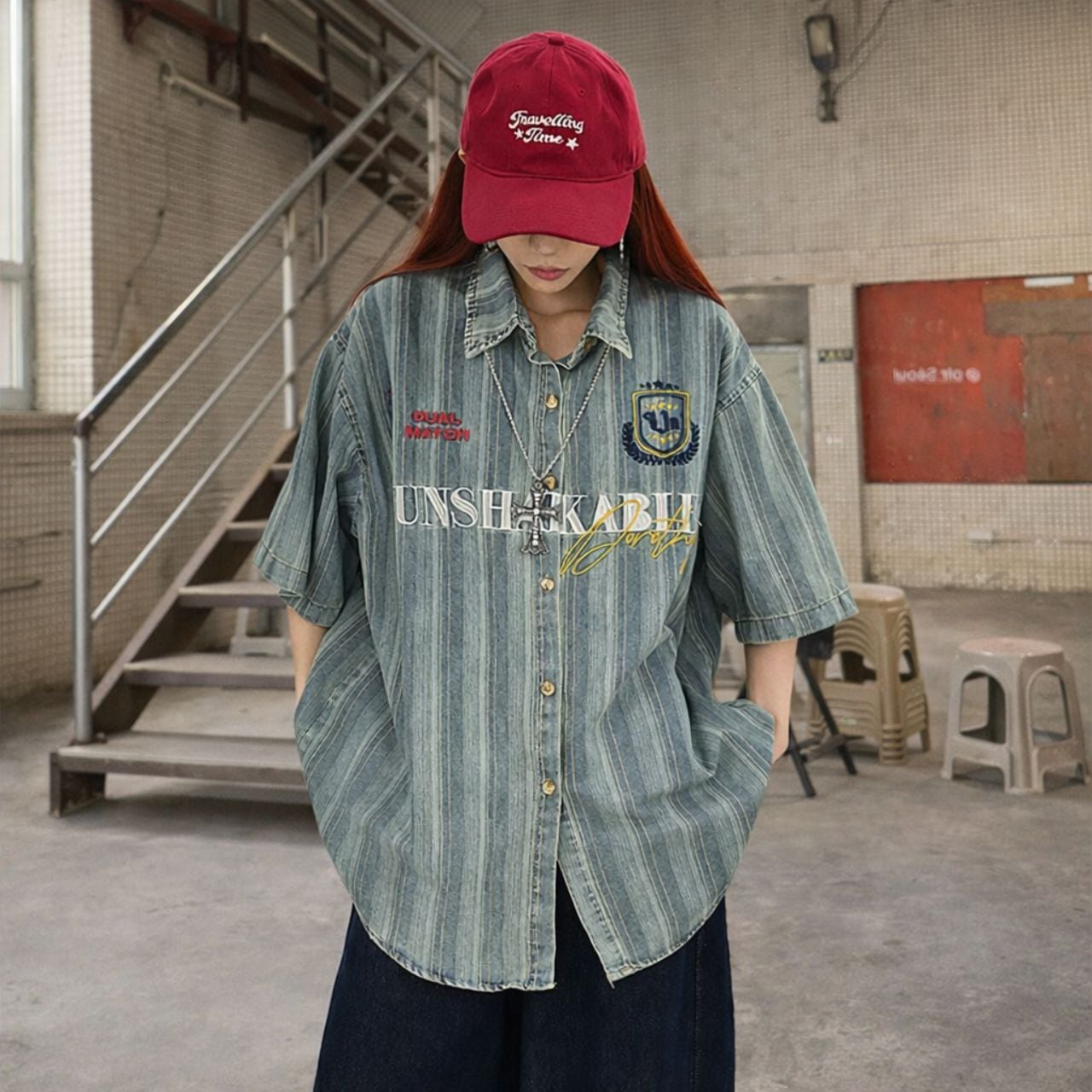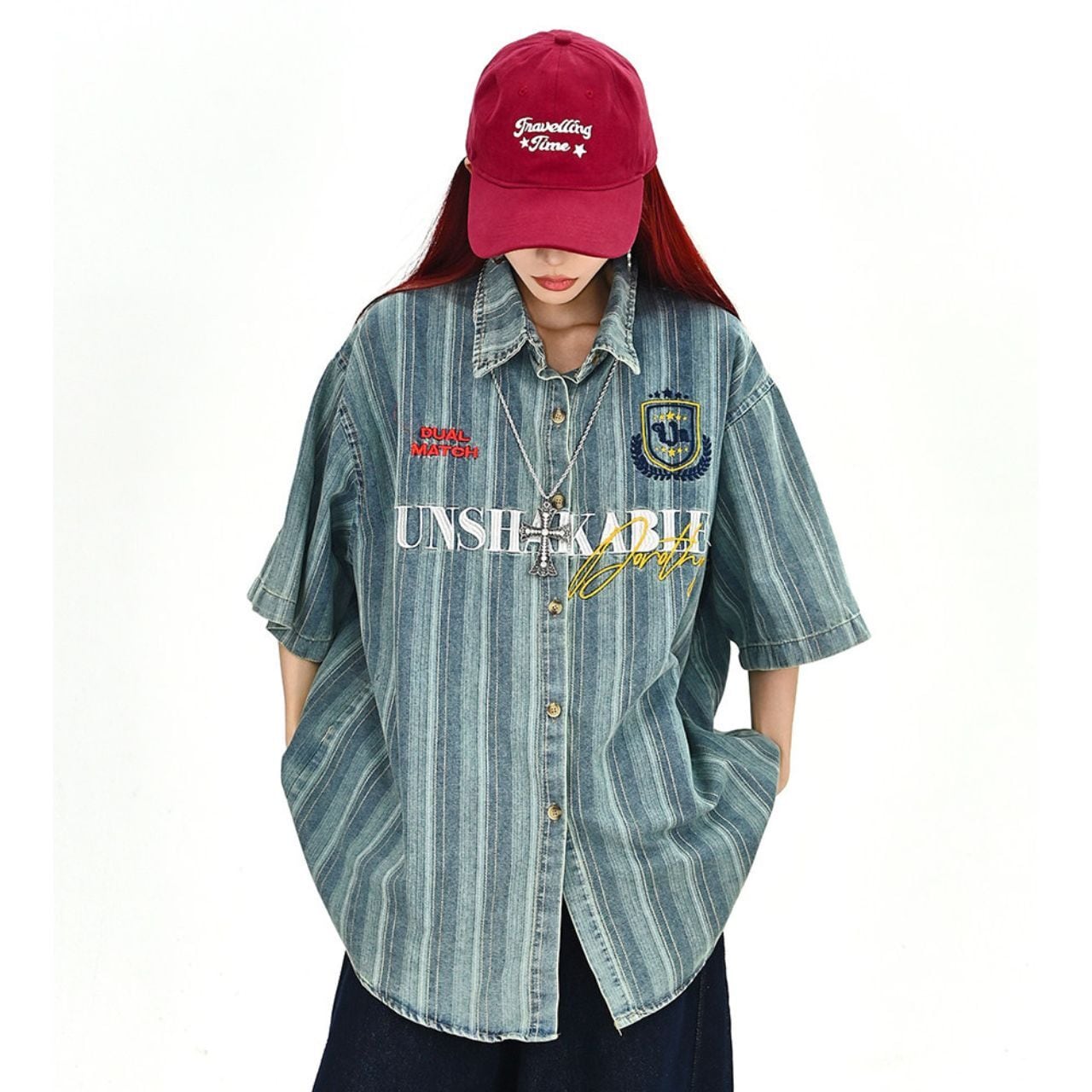 ストライプエンブレムワッペンビッグシャツ 1col R01708