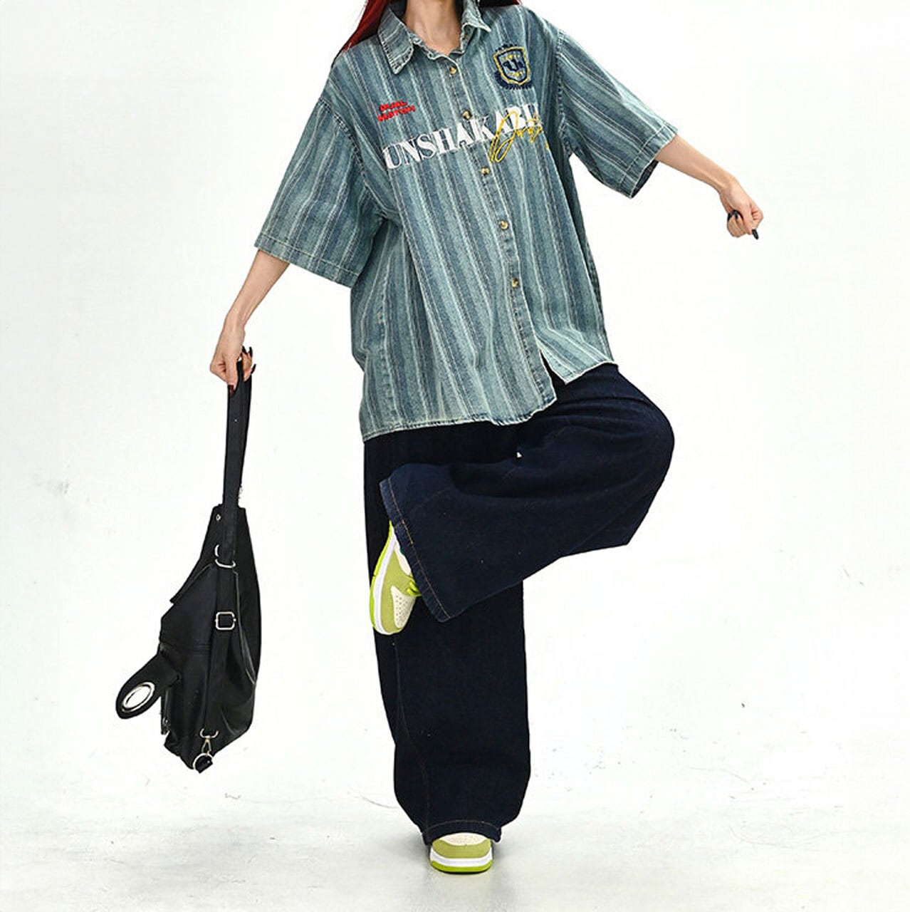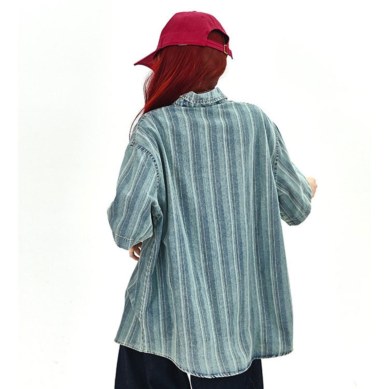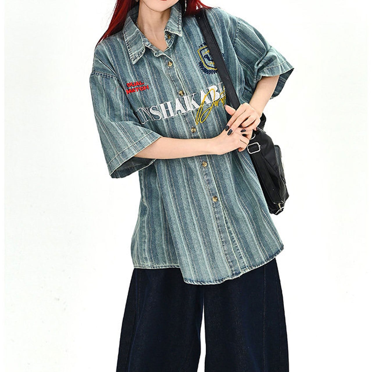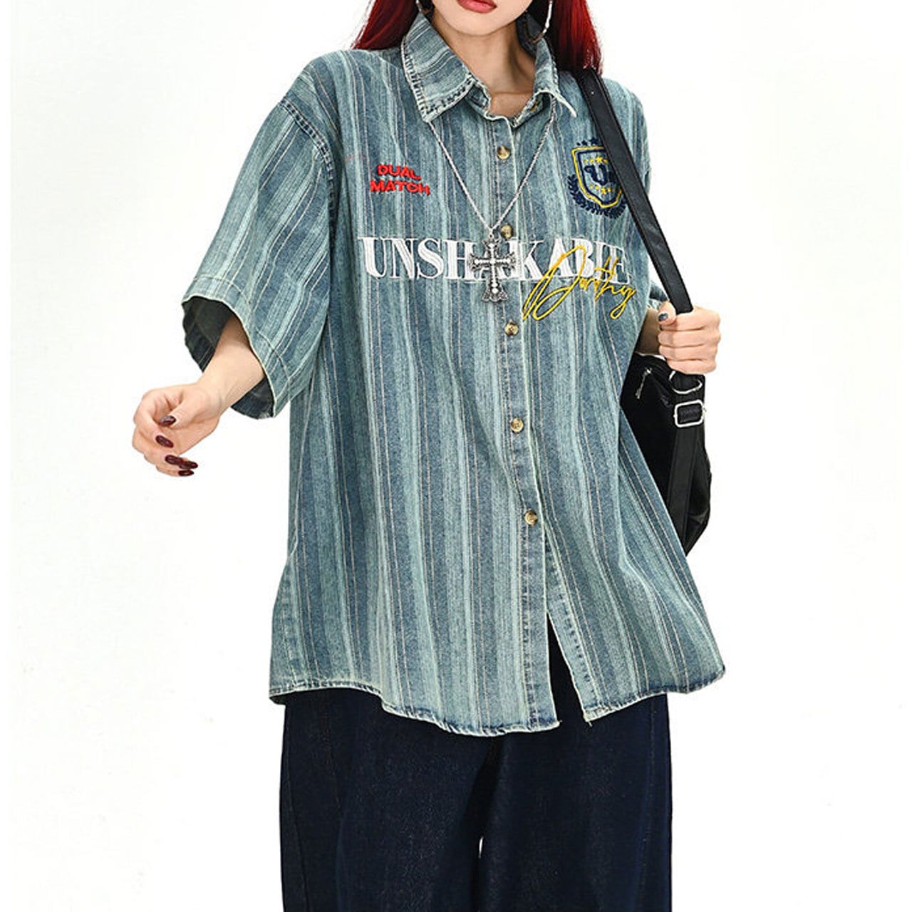 ストライプエンブレムワッペンビッグシャツ 1col R01708