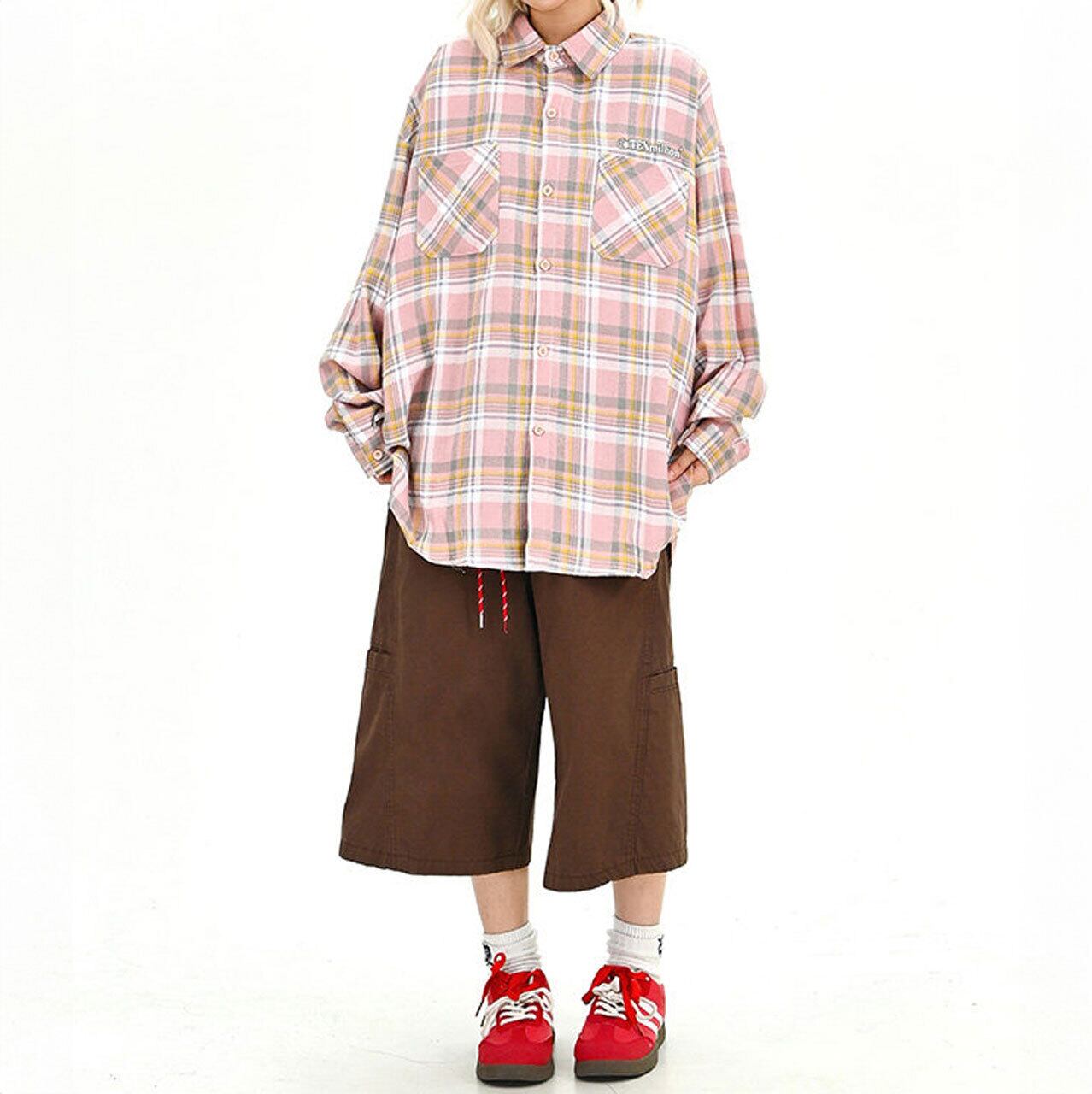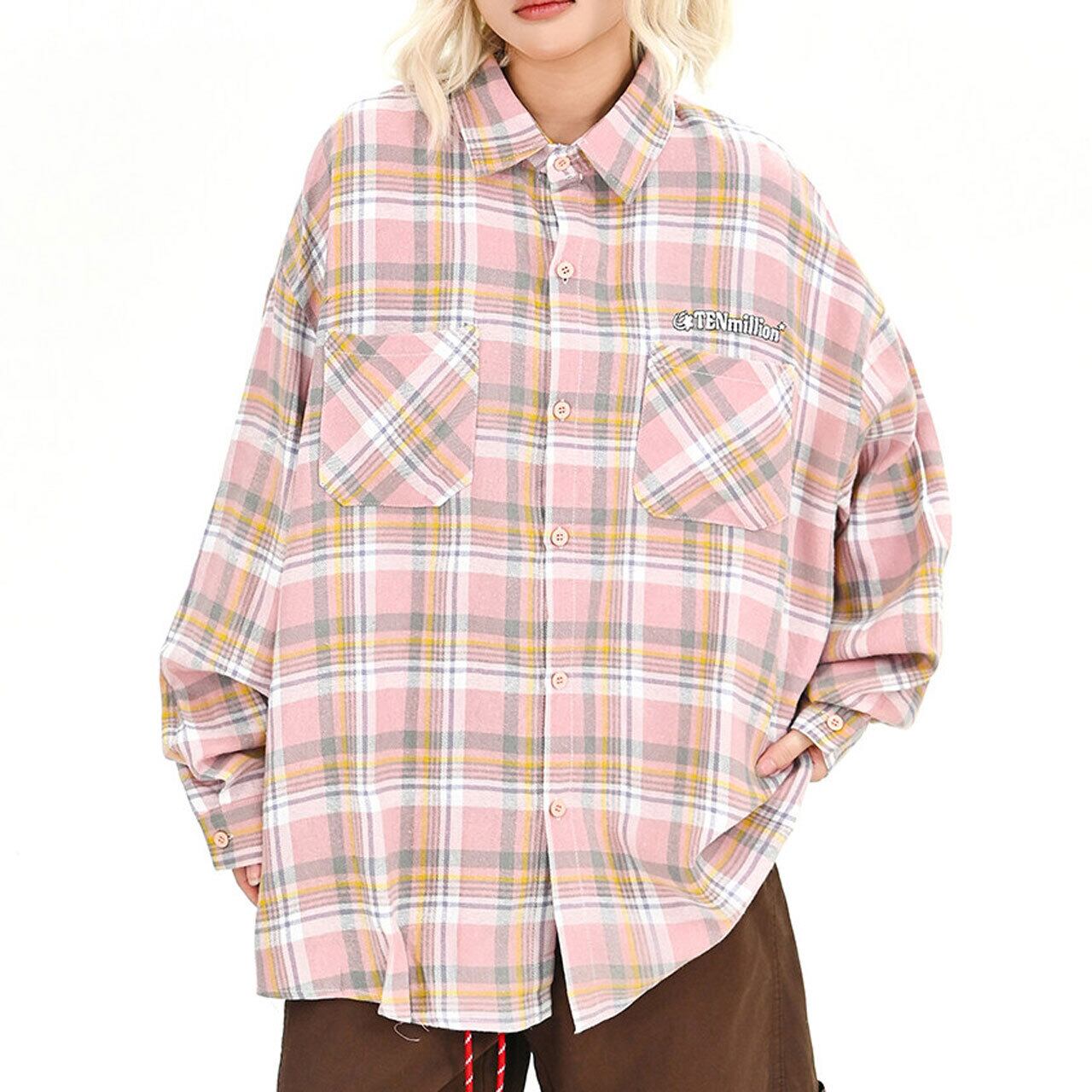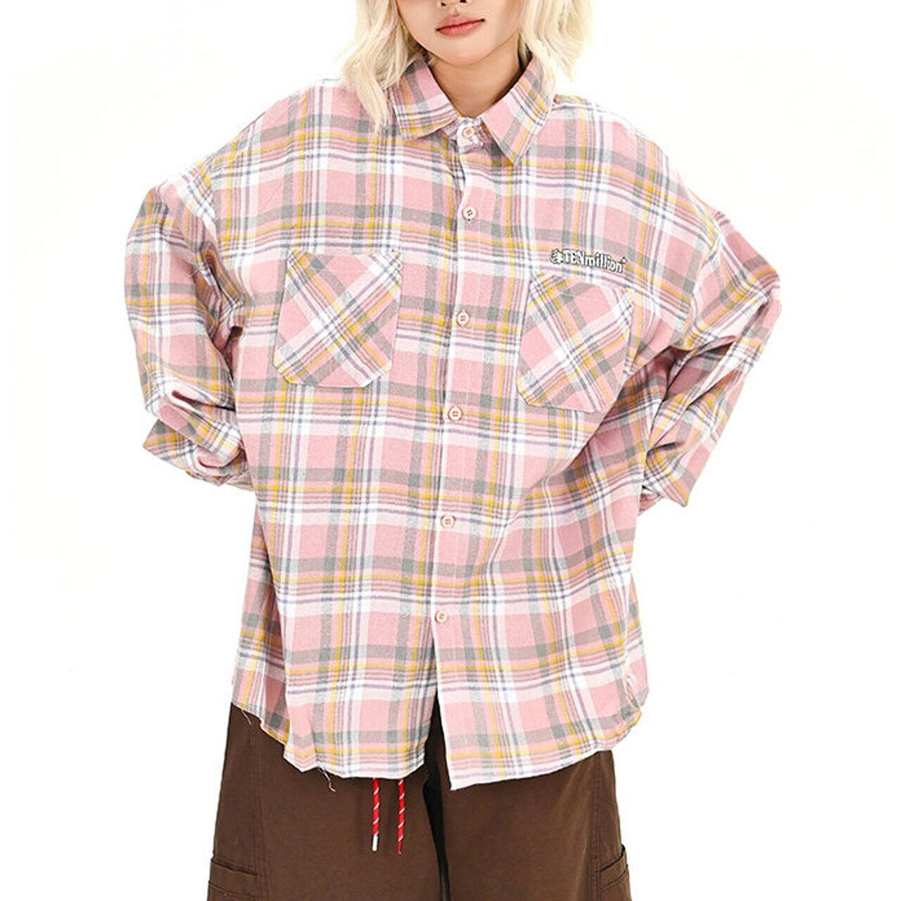 パステルチェックダブルポケットビッグシャツ 1col R01709