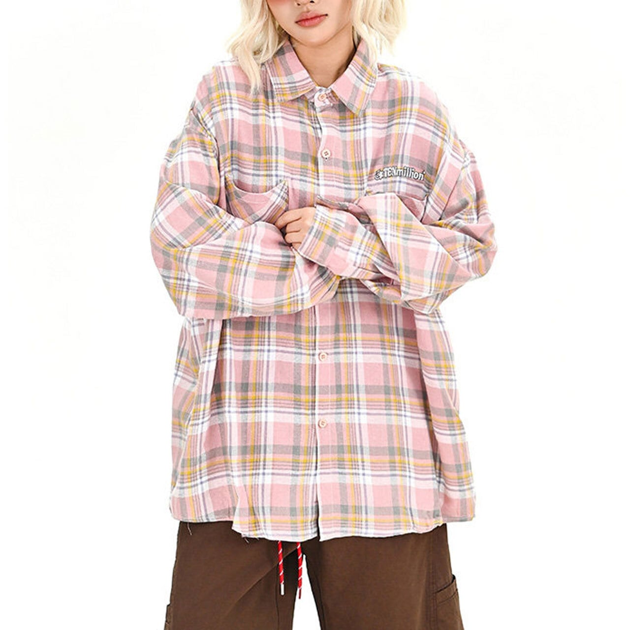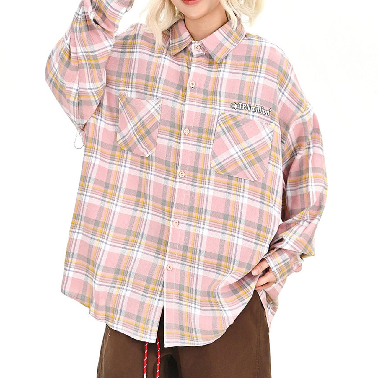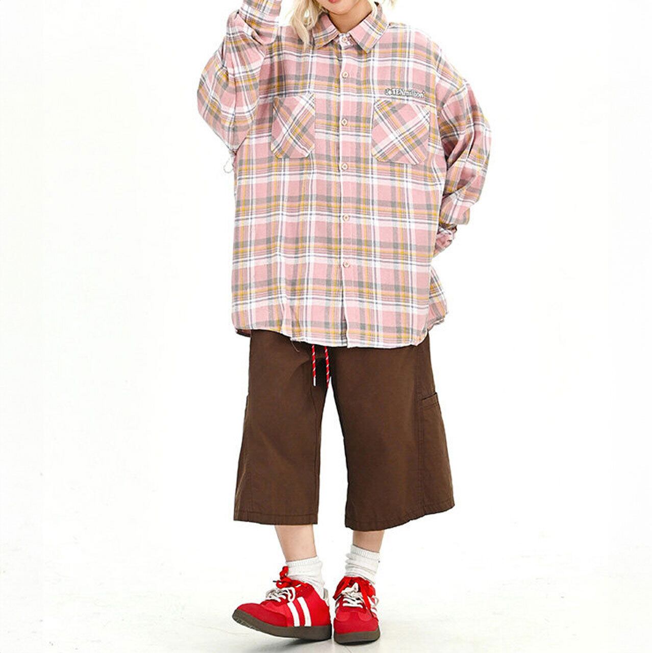 パステルチェックダブルポケットビッグシャツ 1col R01709