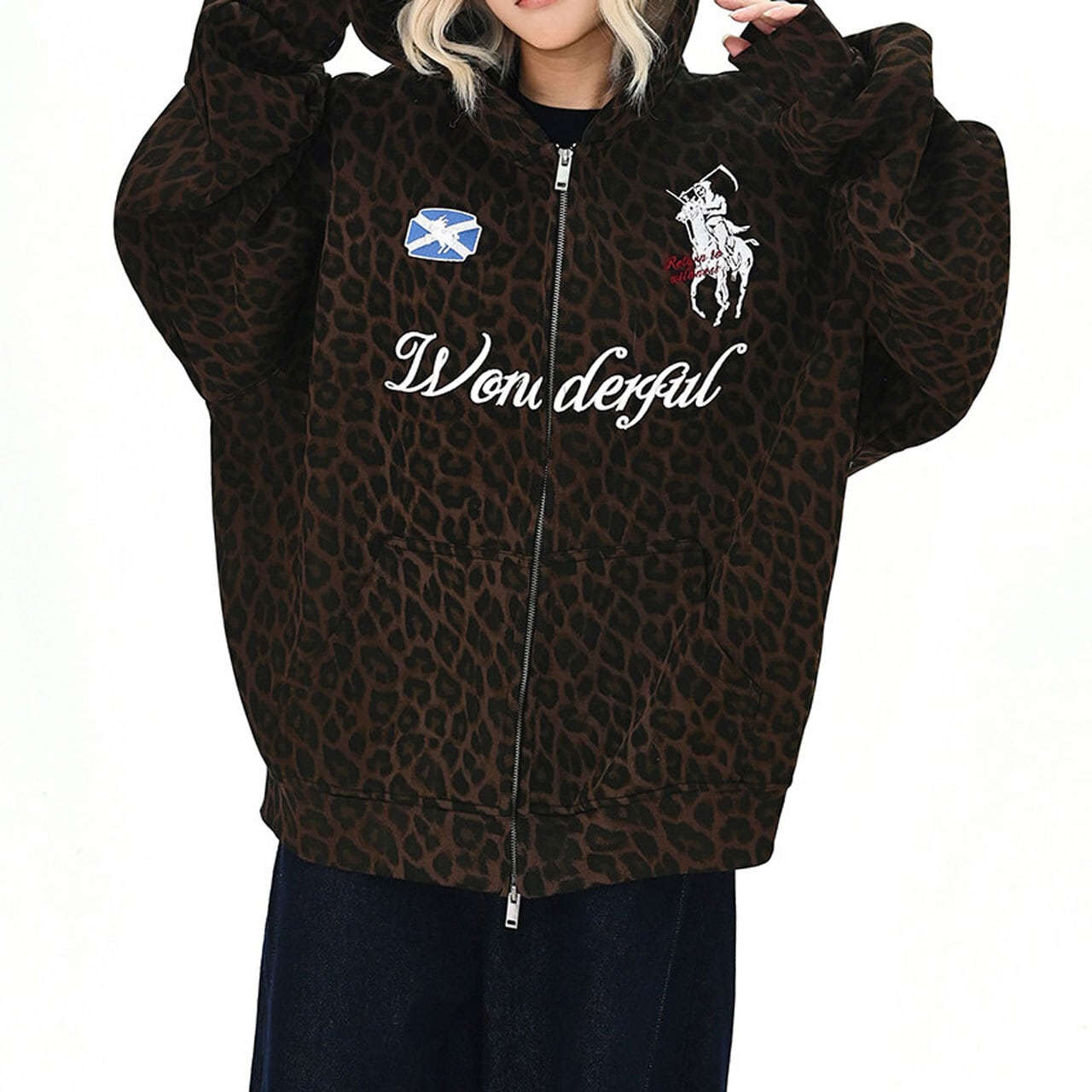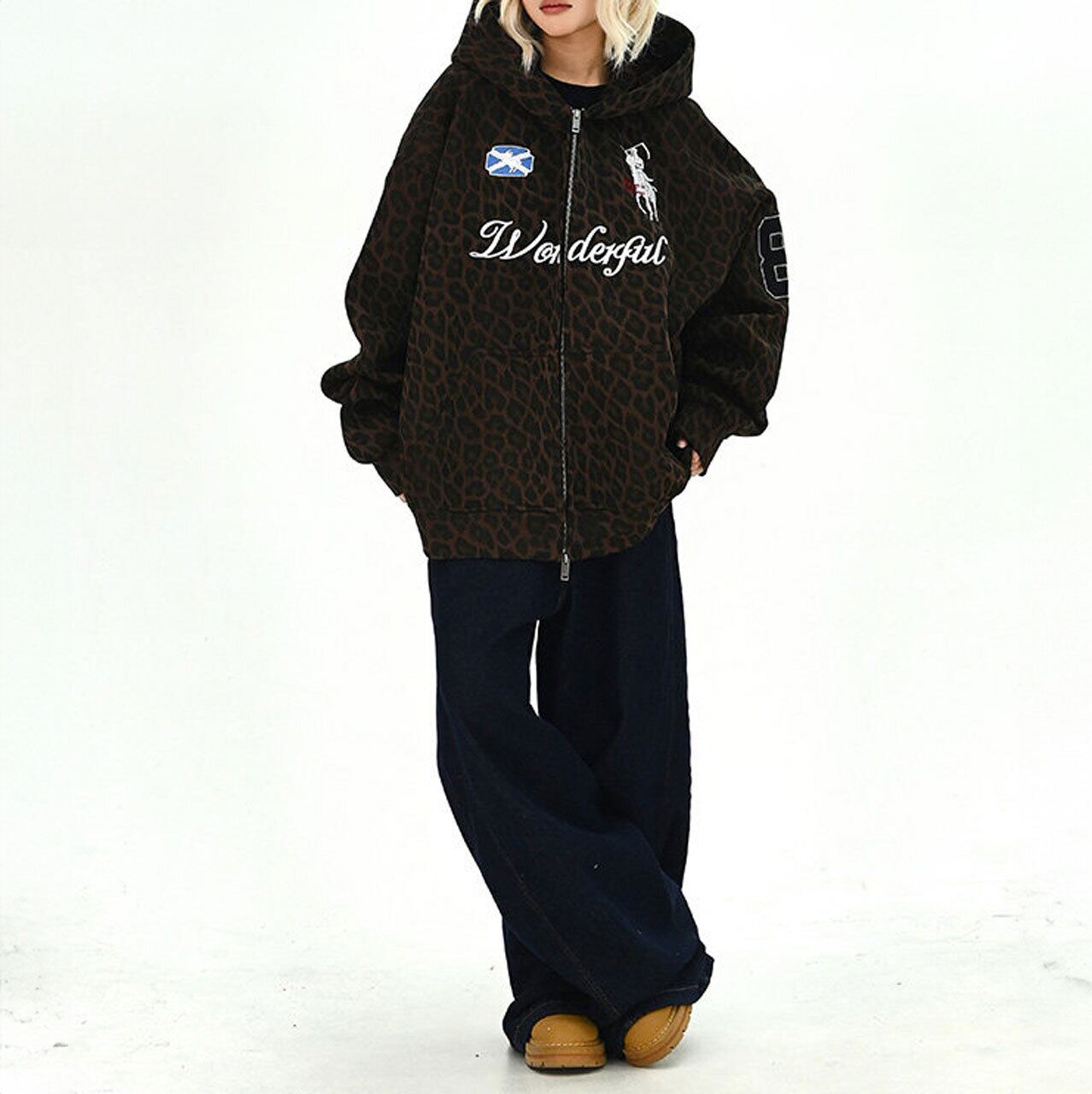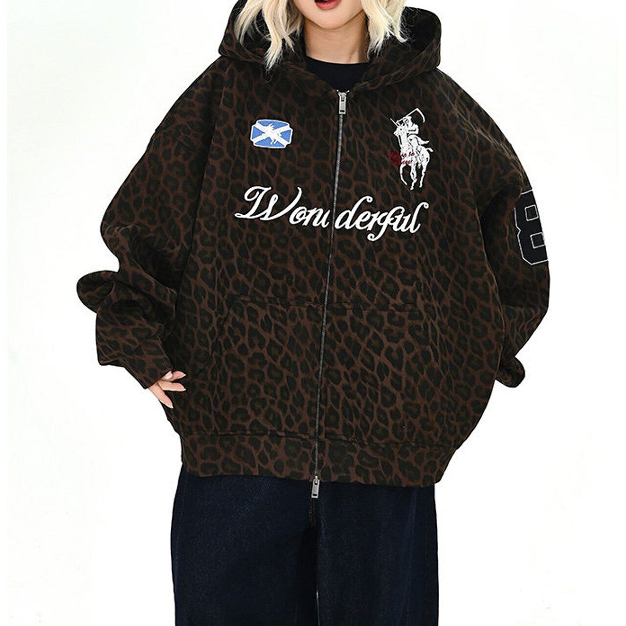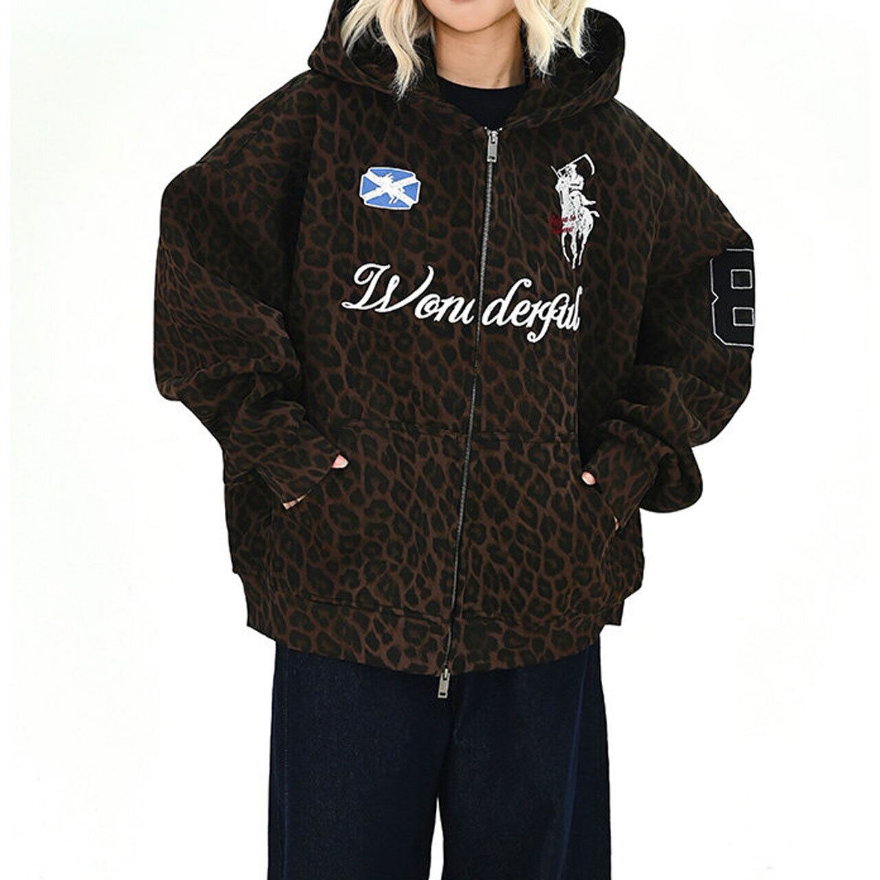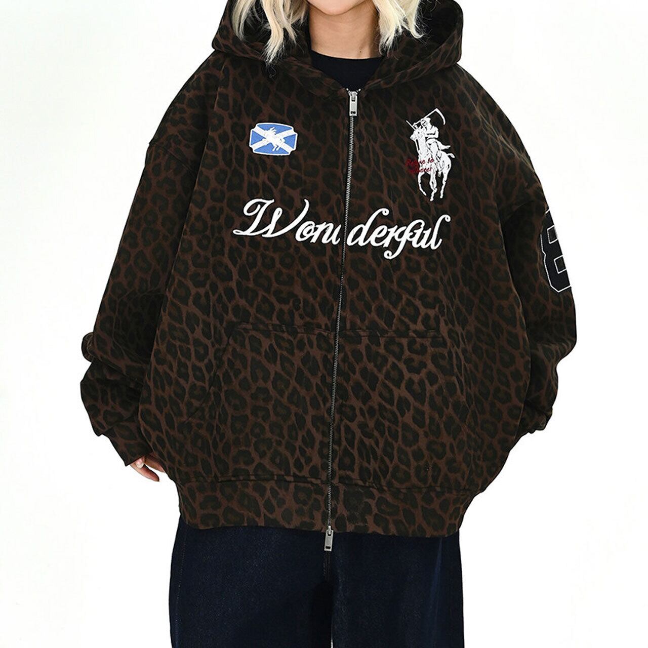 レオパードパターンワッペンジップフーディ 1col R01729