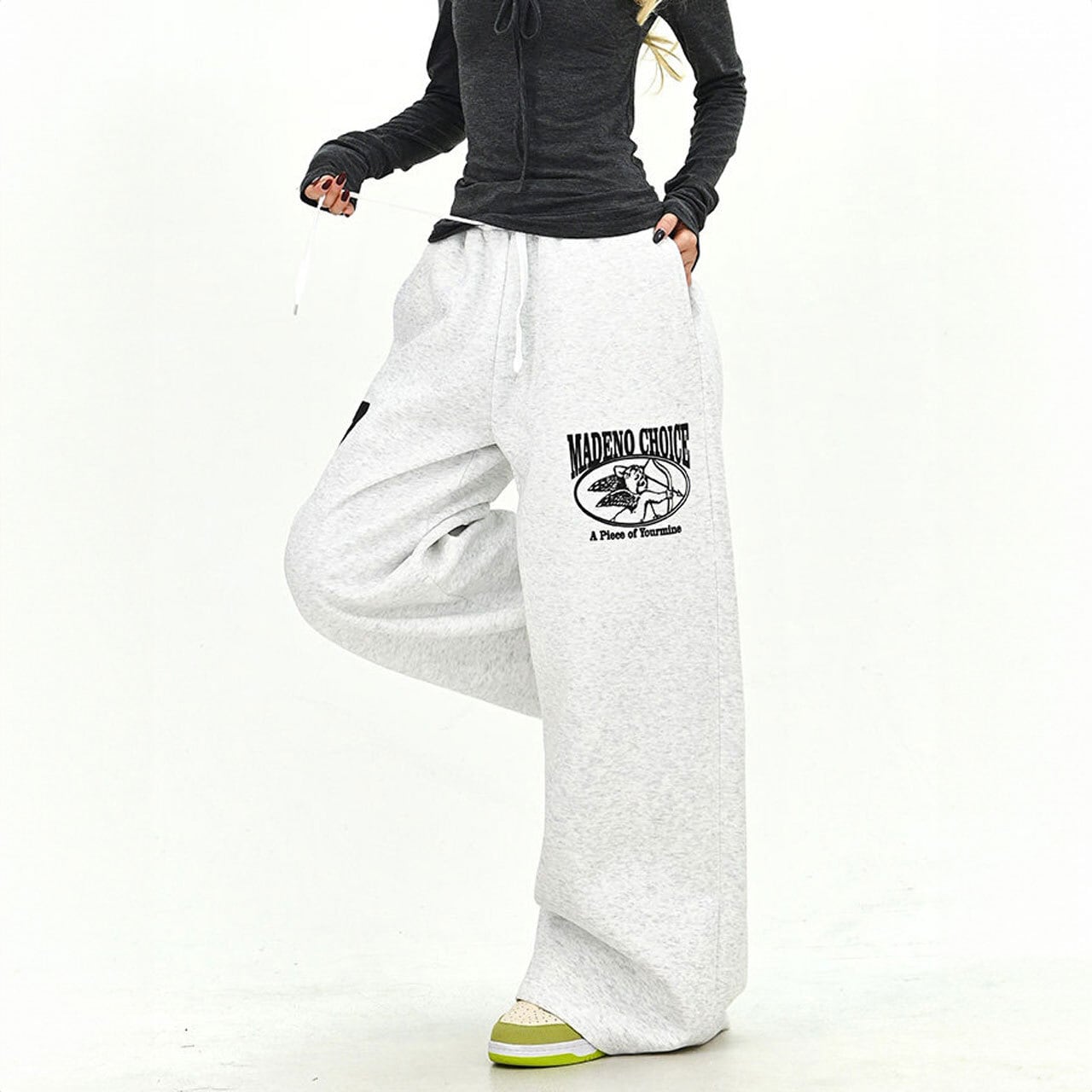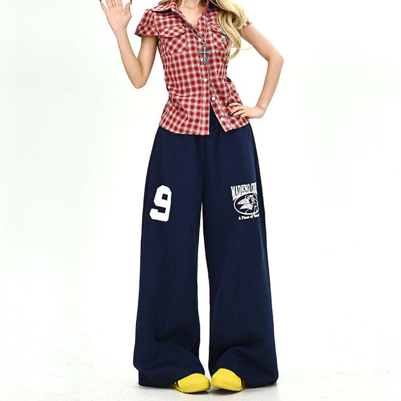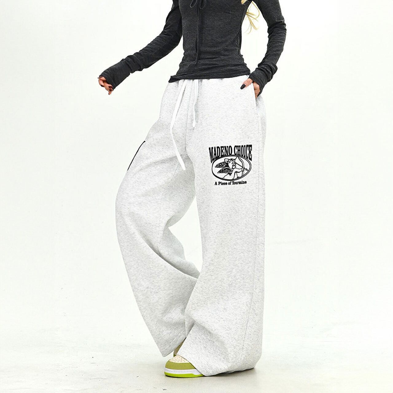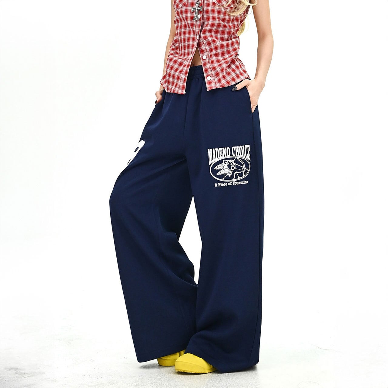 大胆なナンバーモチーフとレタリングデザインが映える、ストリート感たっぷりのワイドパンツ。