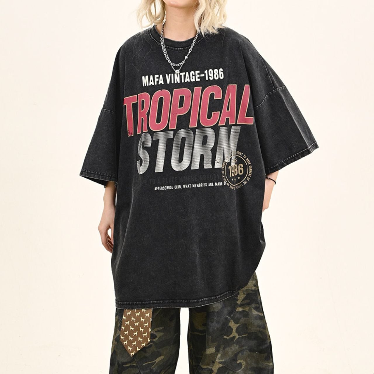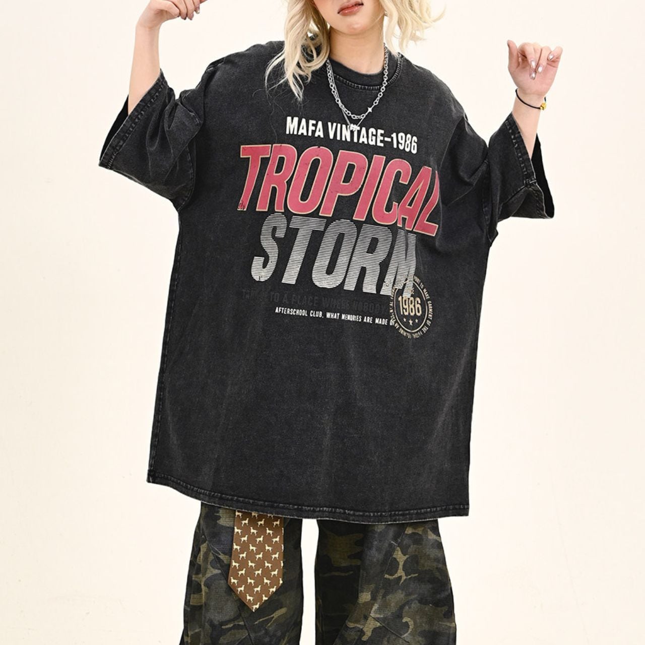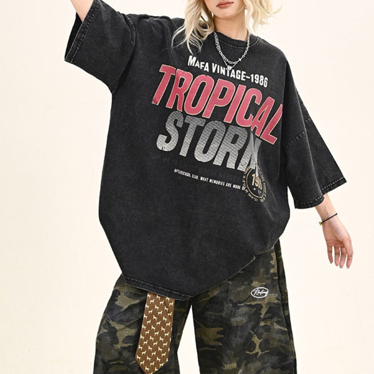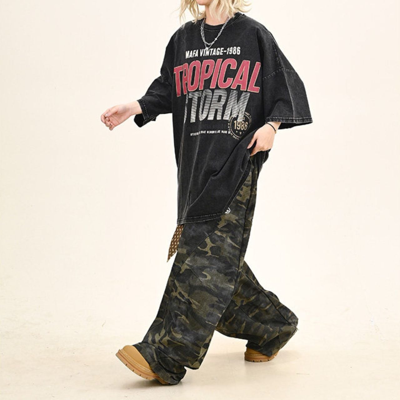 ヴィンテージライクな風合いと迫力あるグラフィックが、アメリカンストリートな雰囲気を演出。