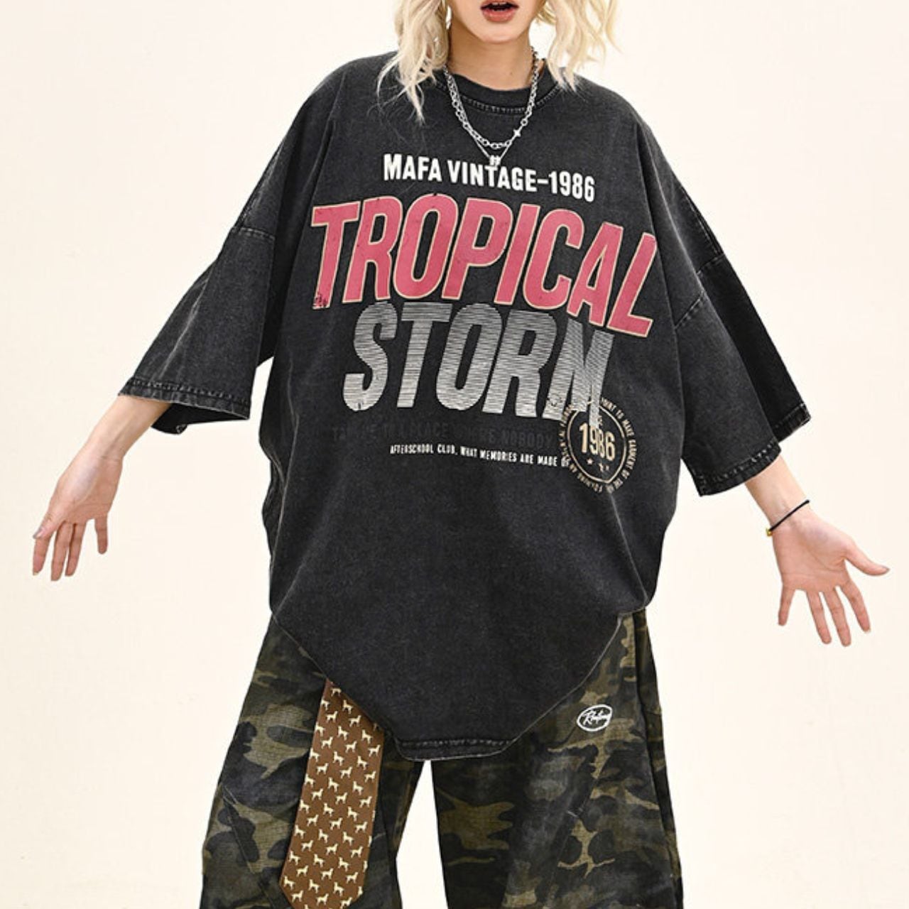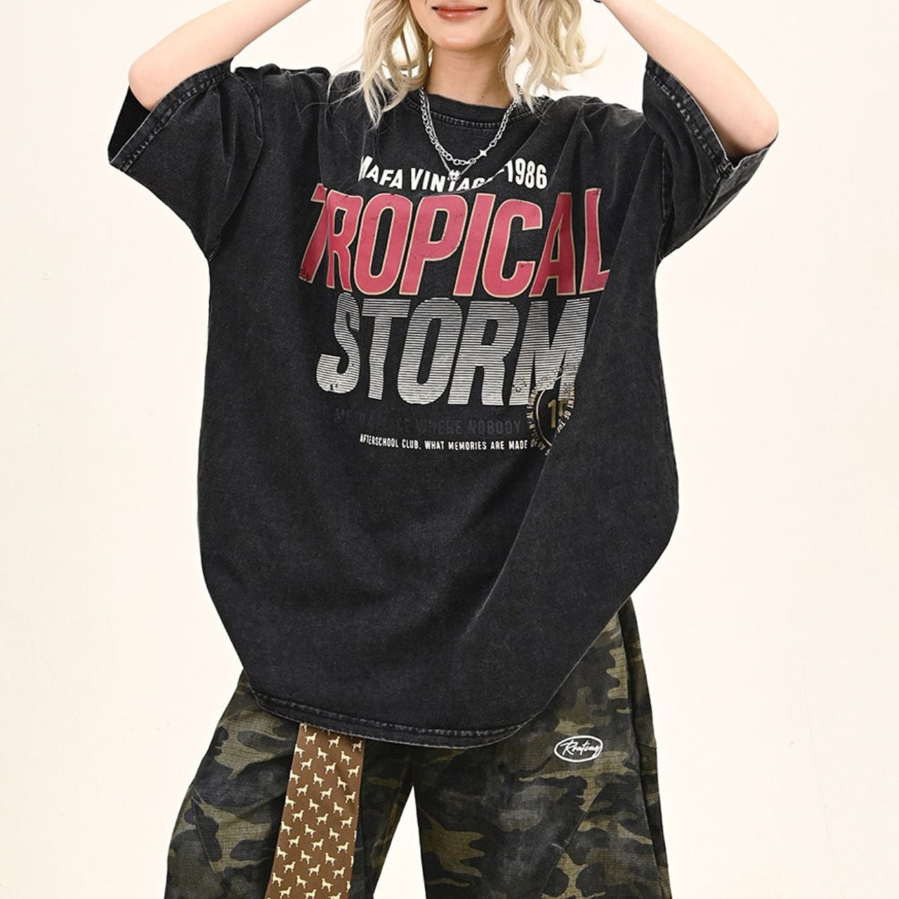 ワイドカーゴやボリュームパンツと合わせて、1枚で主役になるラフコーデに。