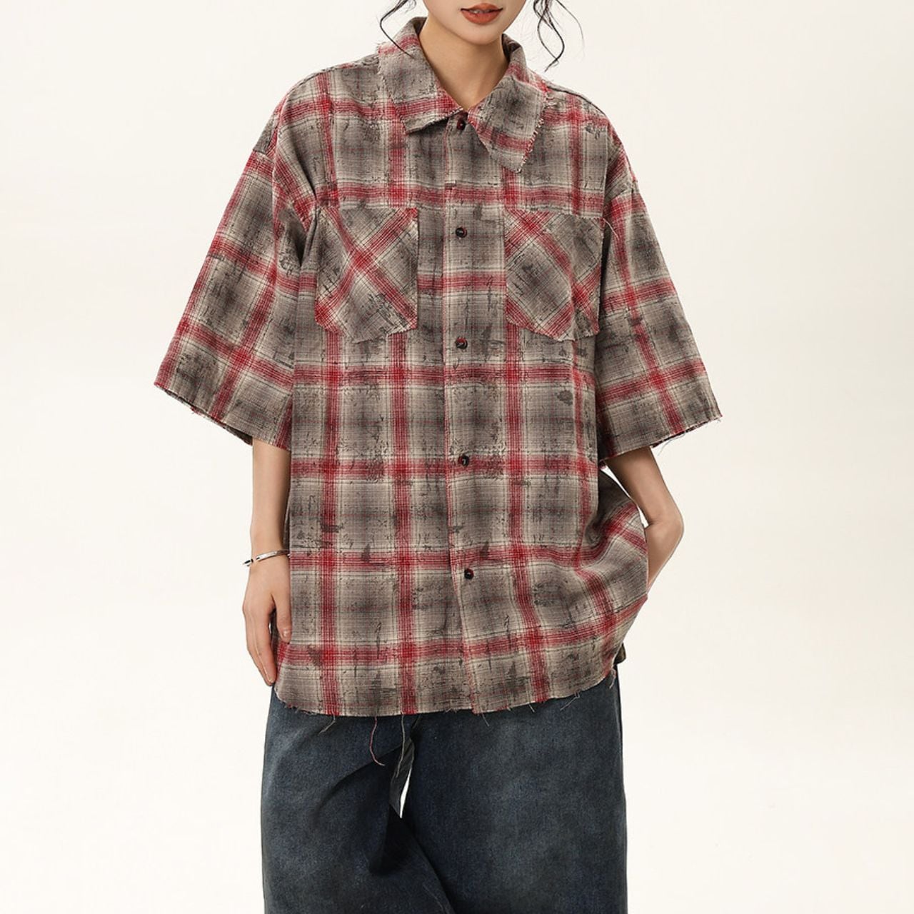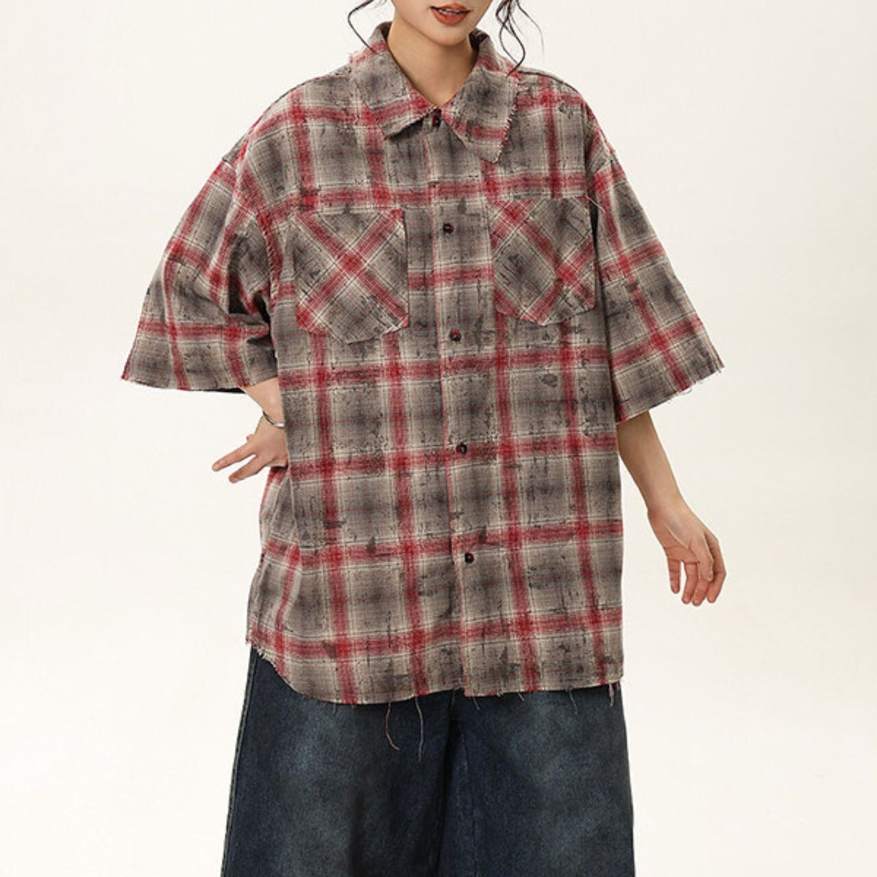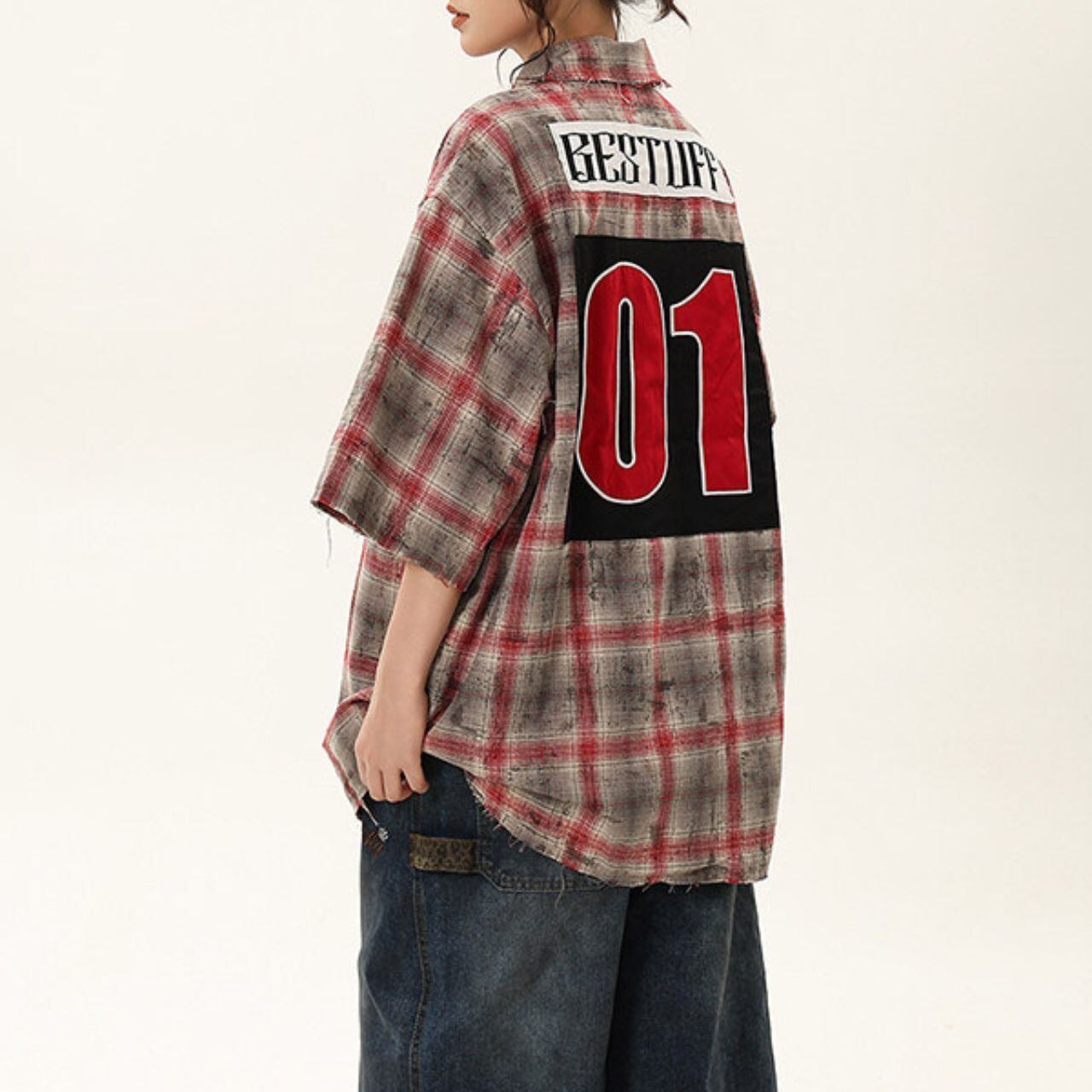 ナンバリングチェックハーフスリーブシャツ 1col R01748