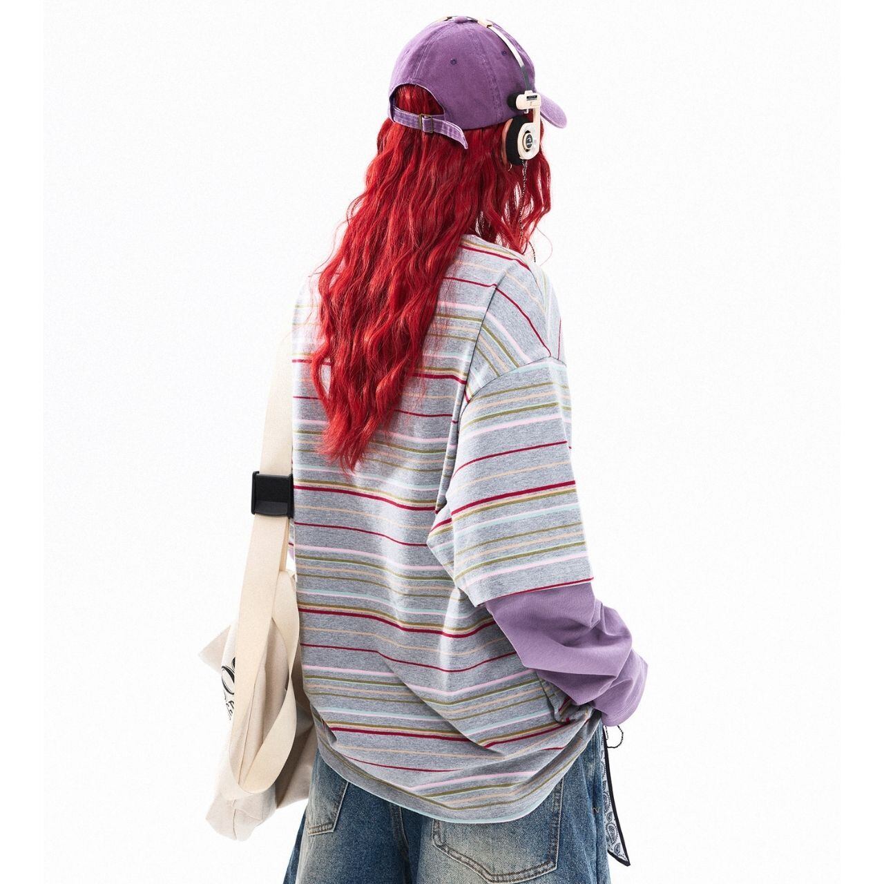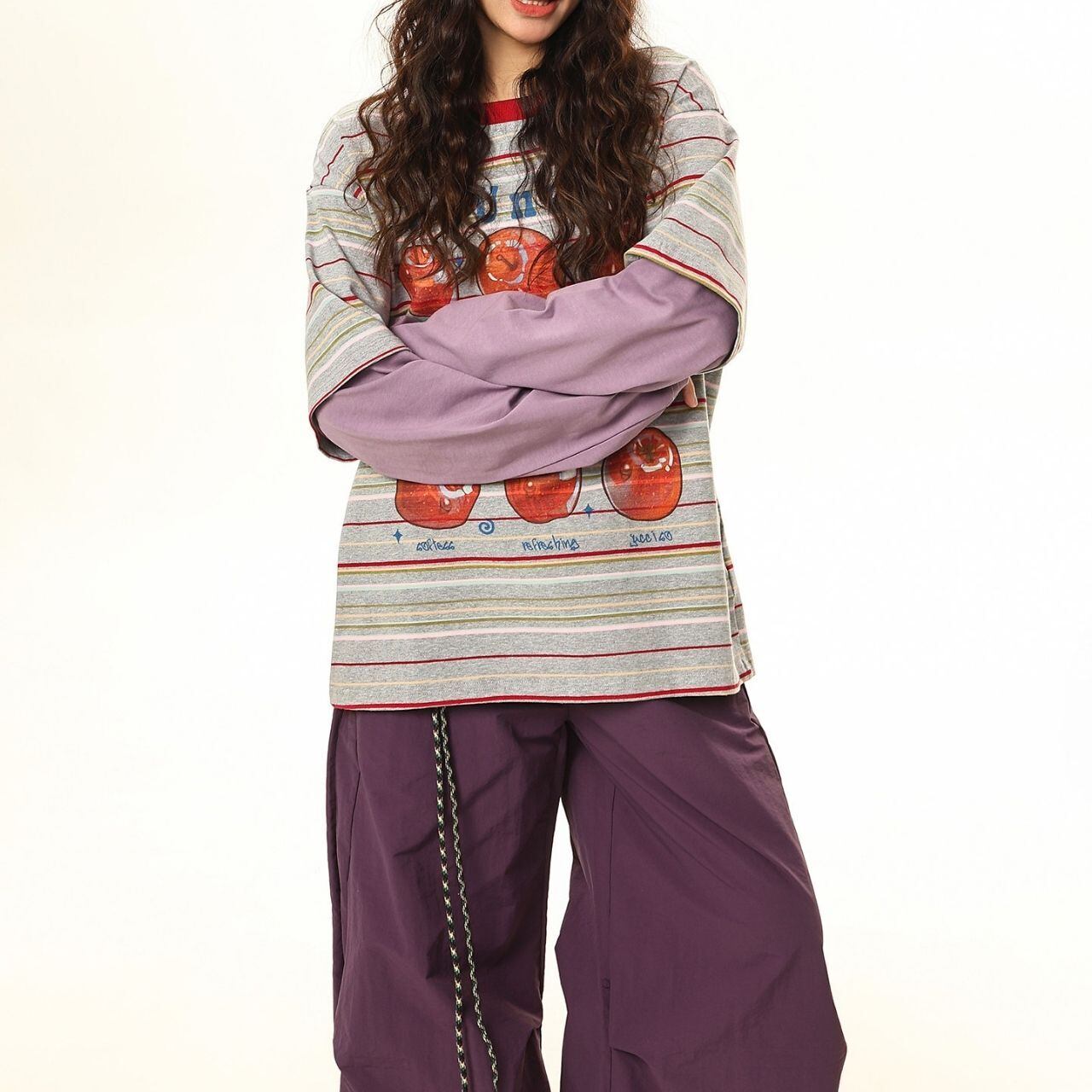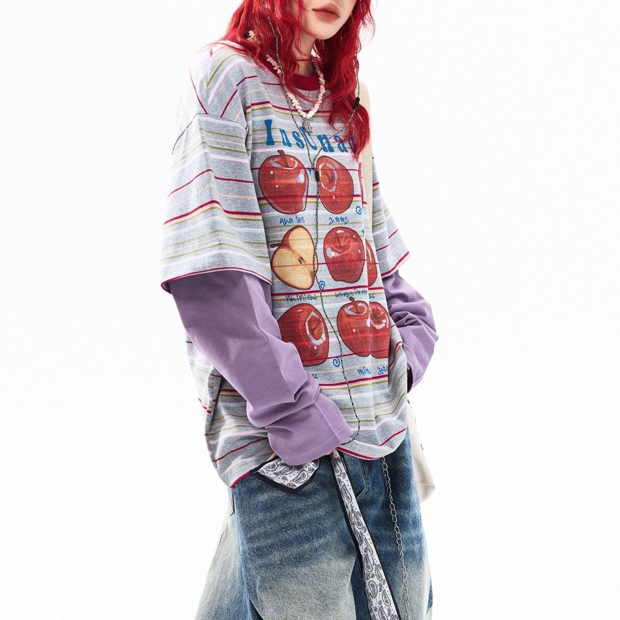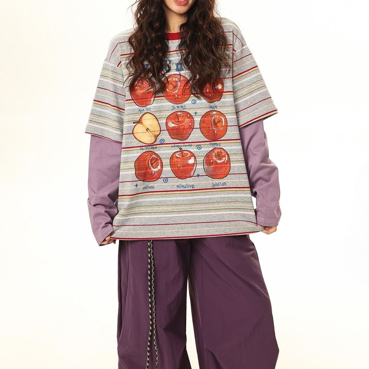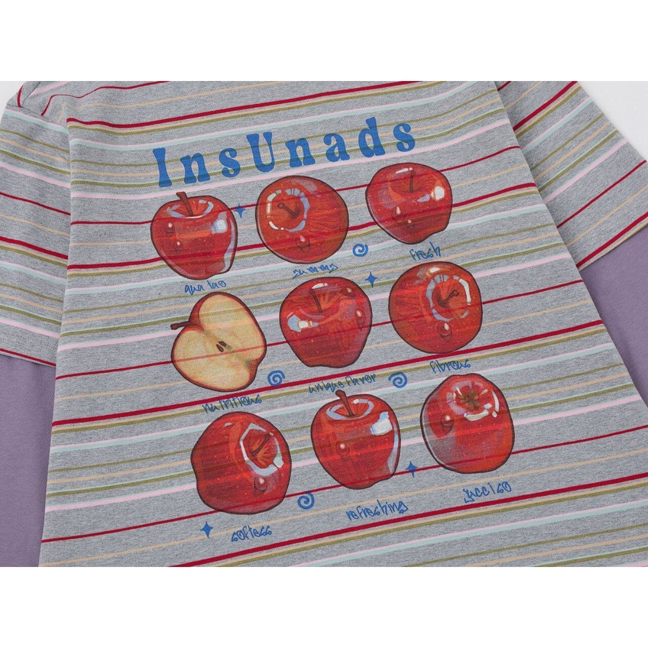アップルグラフィックマルチボーダーレイヤードTシャツ 2col R01765