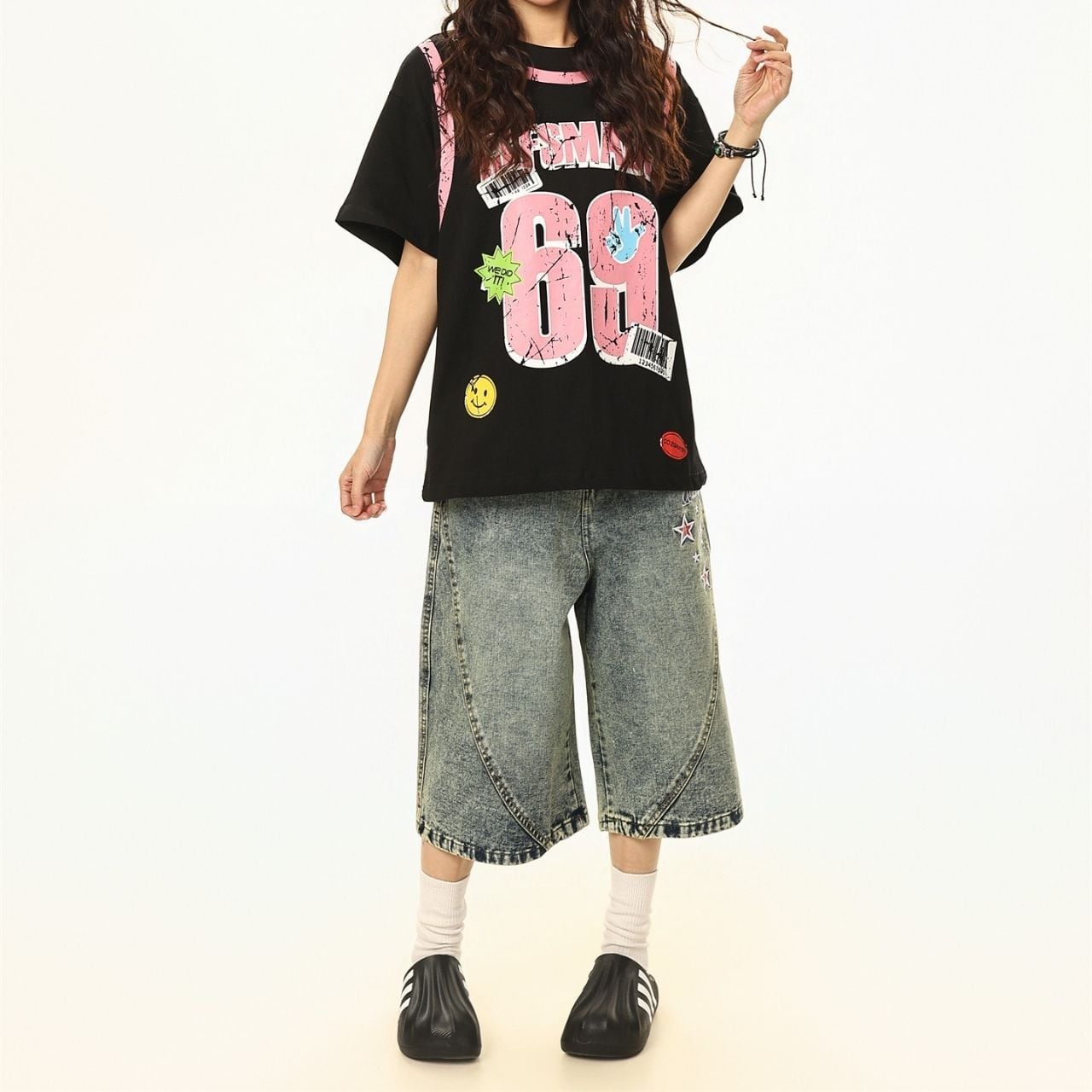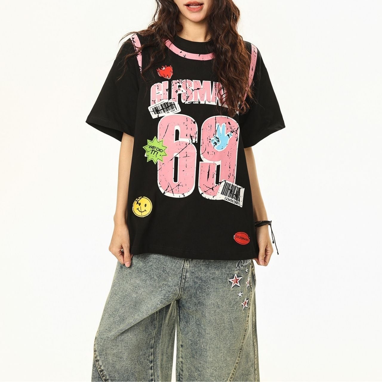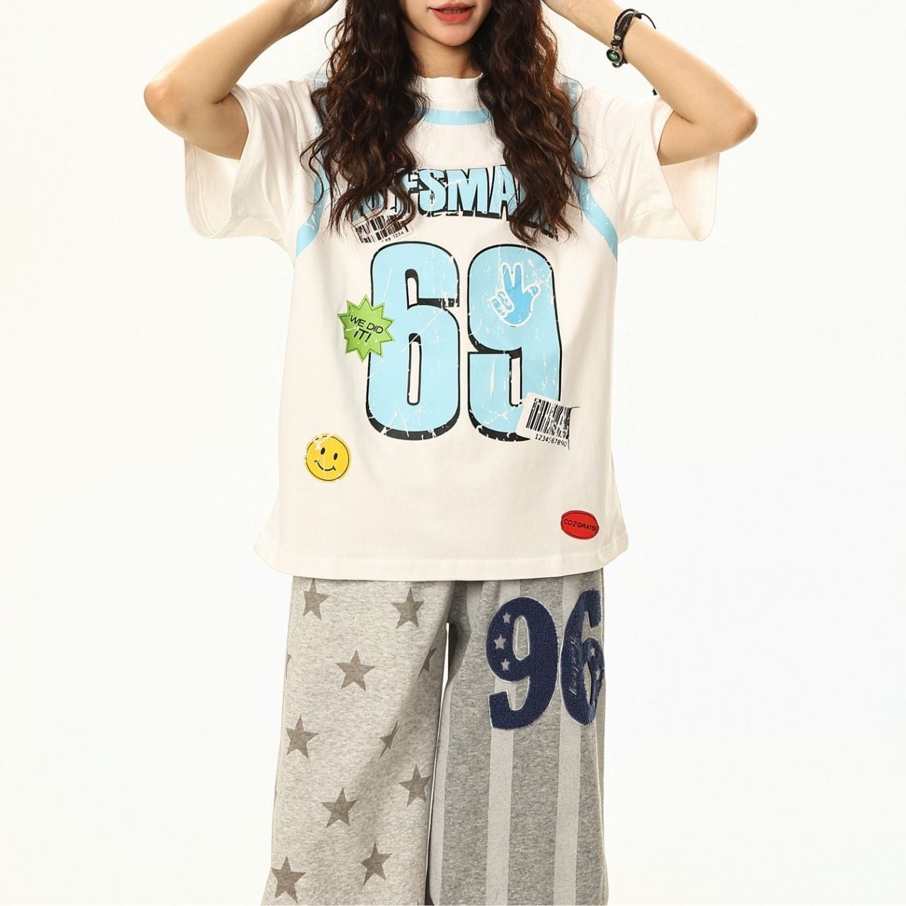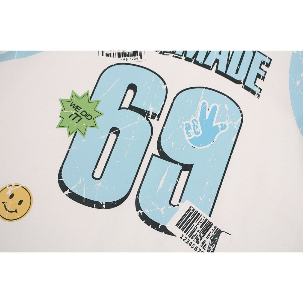 大胆なナンバーモチーフとポップなアクセントを散りばめた、ストリート感あふれるデザインTシャツ。