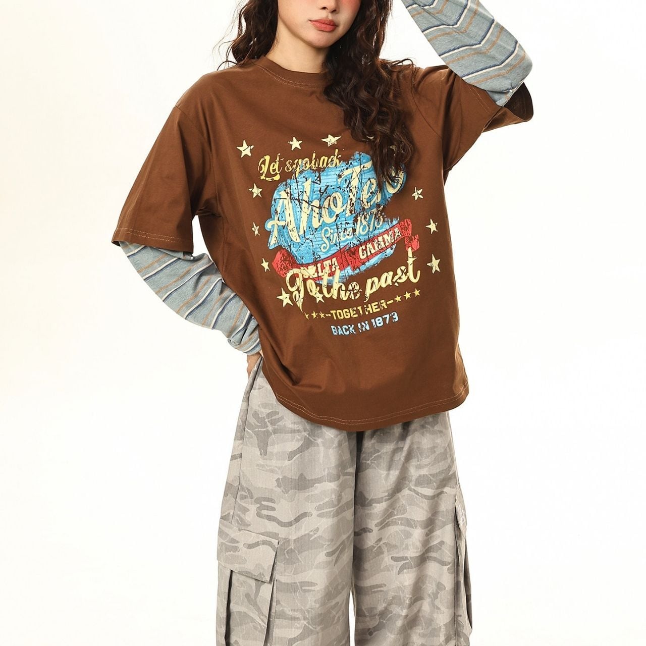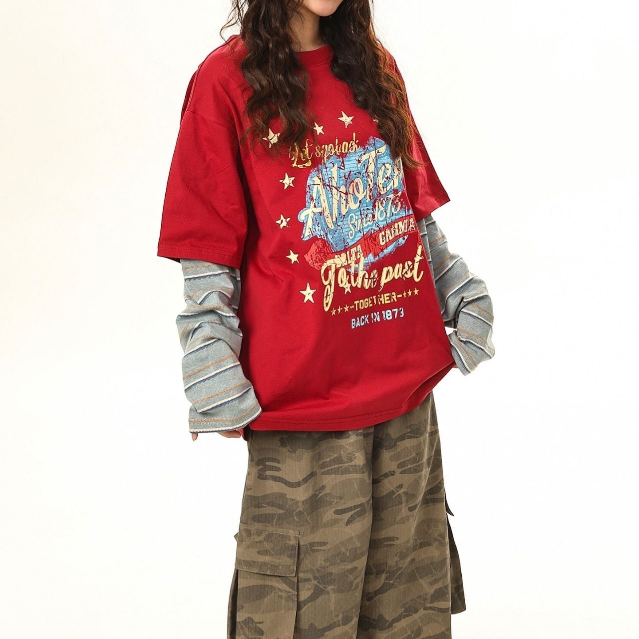 ヴィンテージライクなグラフィックがコーデに奥行きを生み、1枚で存在感を放つ仕上がり。