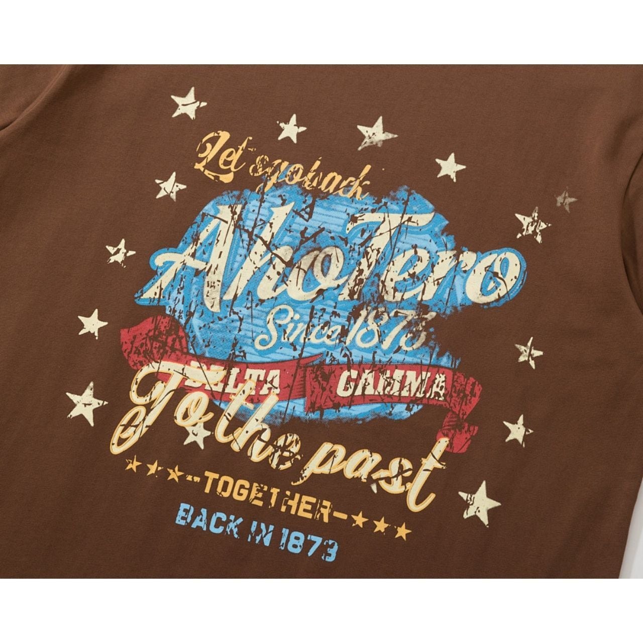 フロントに大胆なレタリングモチーフを配した、アメリカンレトロムード漂うデザインTシャツ。