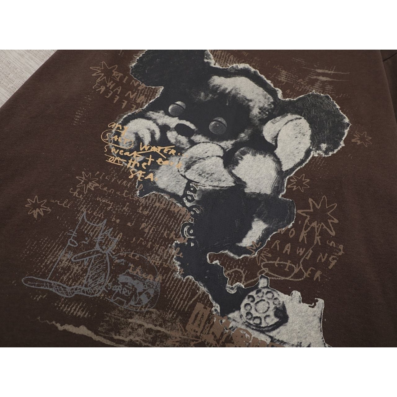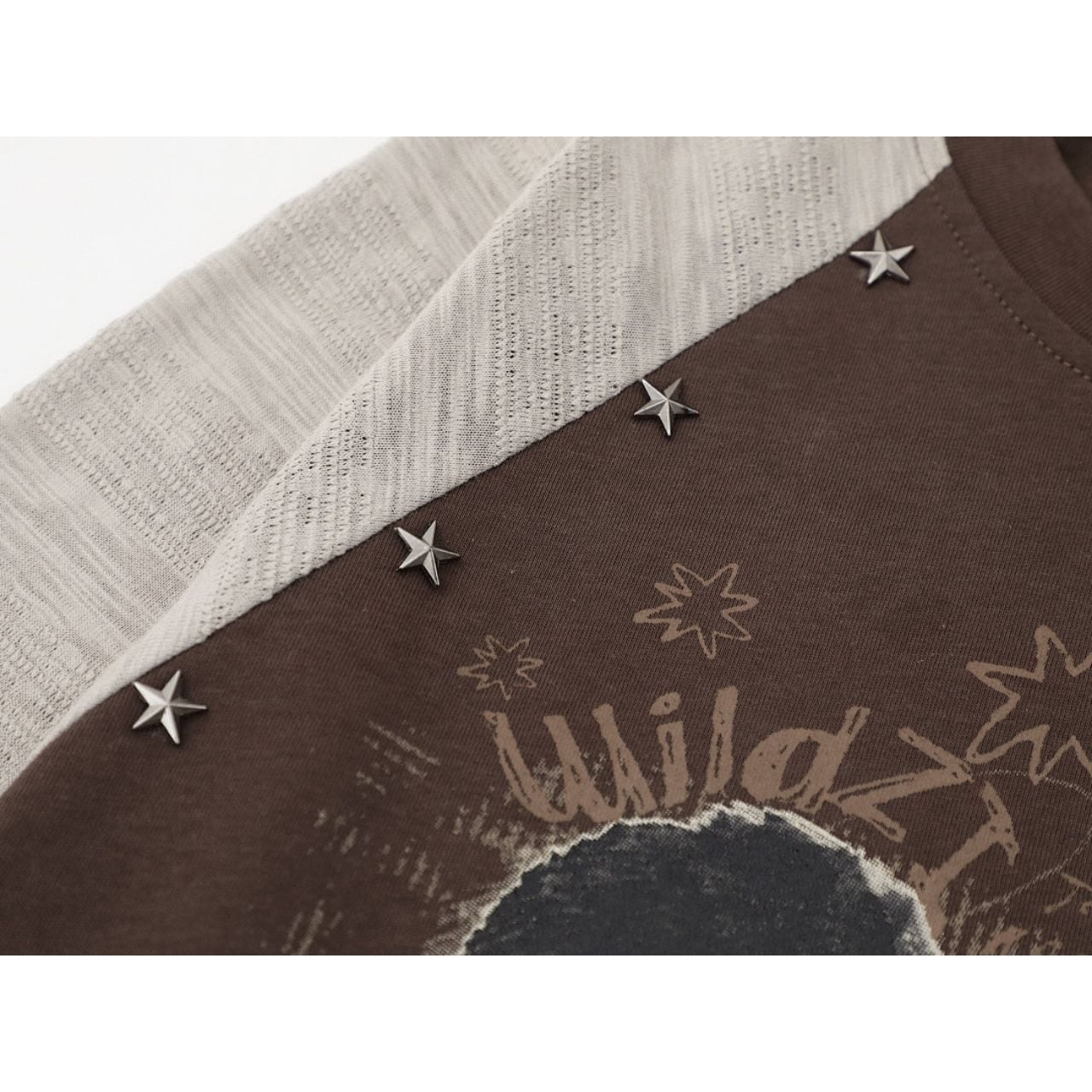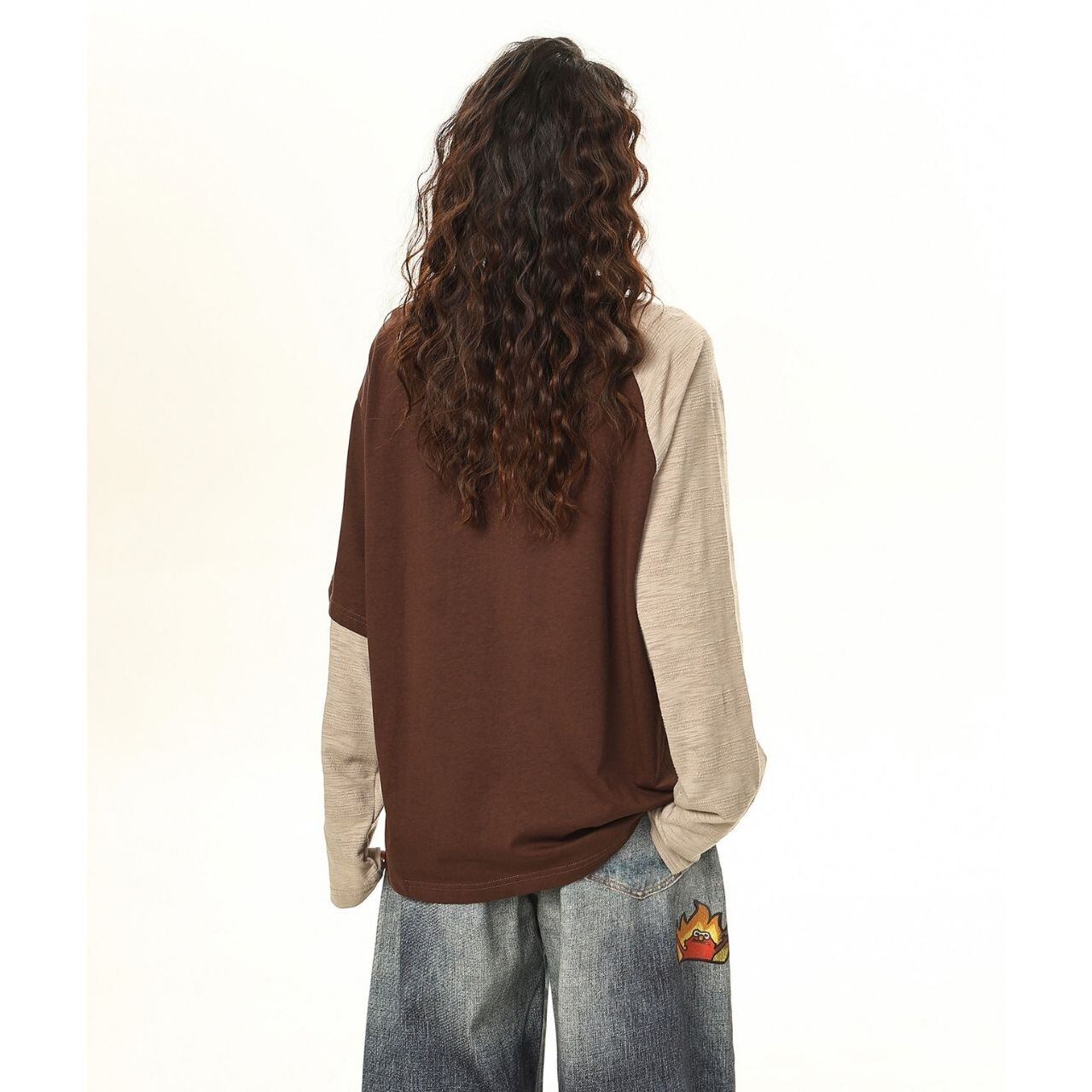 手描き風のグラフィックやレタリングが重なり、コーデに奥行きと遊び心をプラスします。