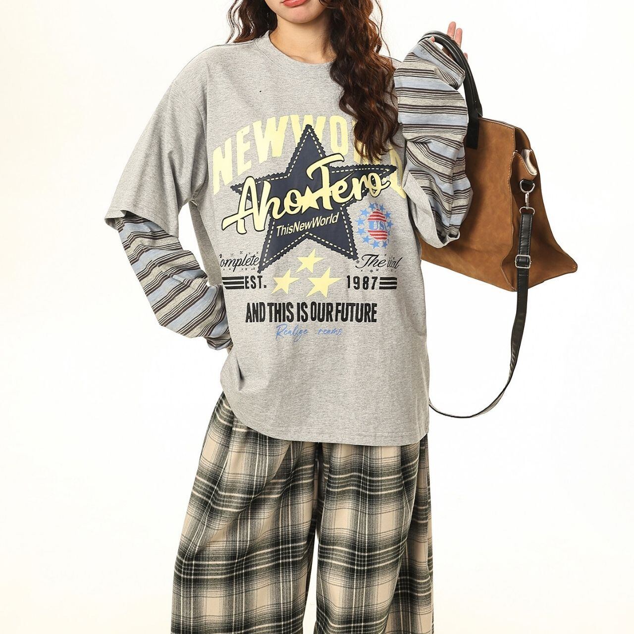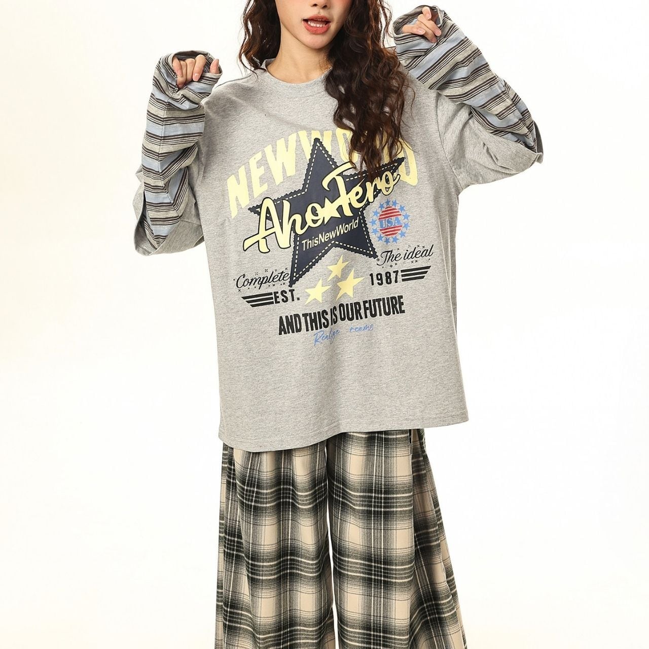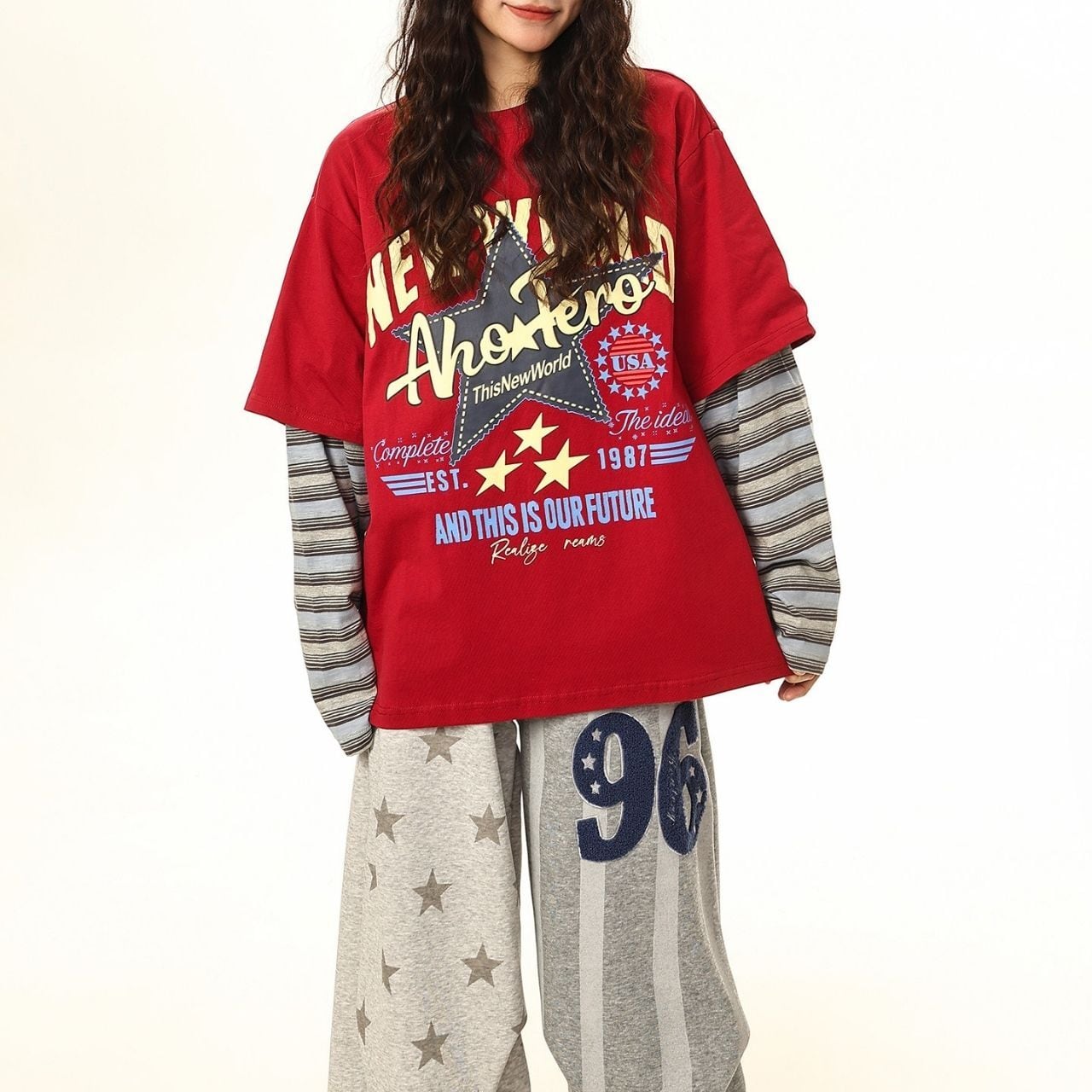 スターグラフィックレタリングレイヤードTシャツ 2col R01769