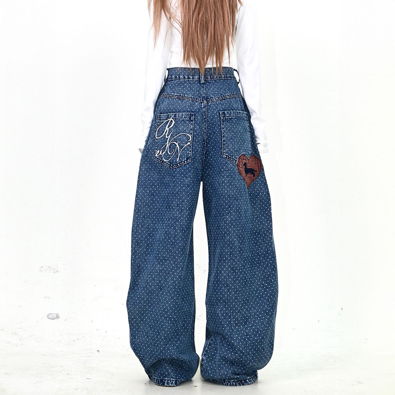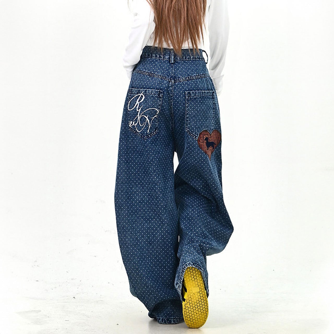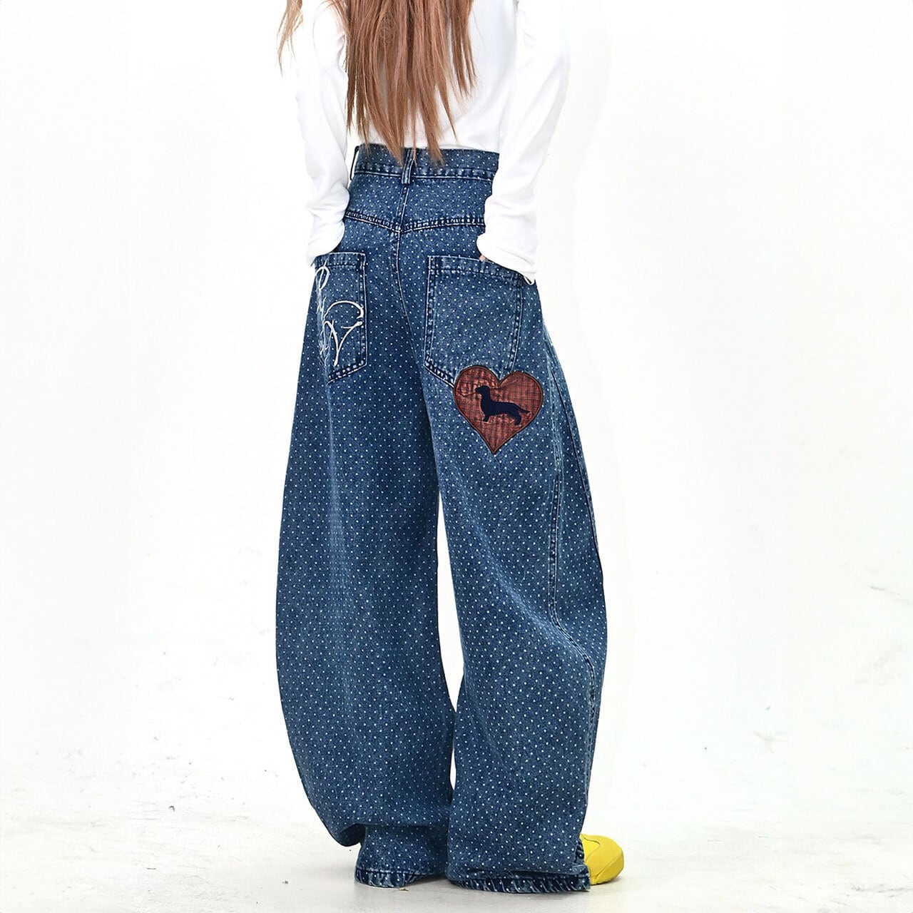 ドットパターンハートパッチデニムパンツ 1col R01779