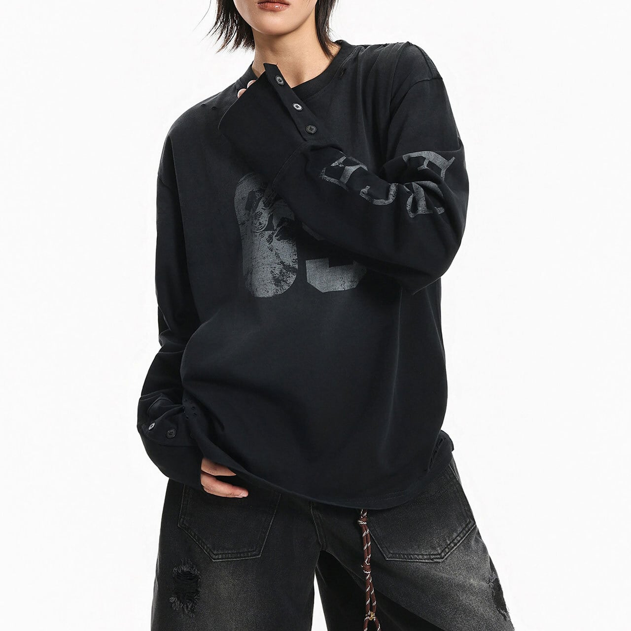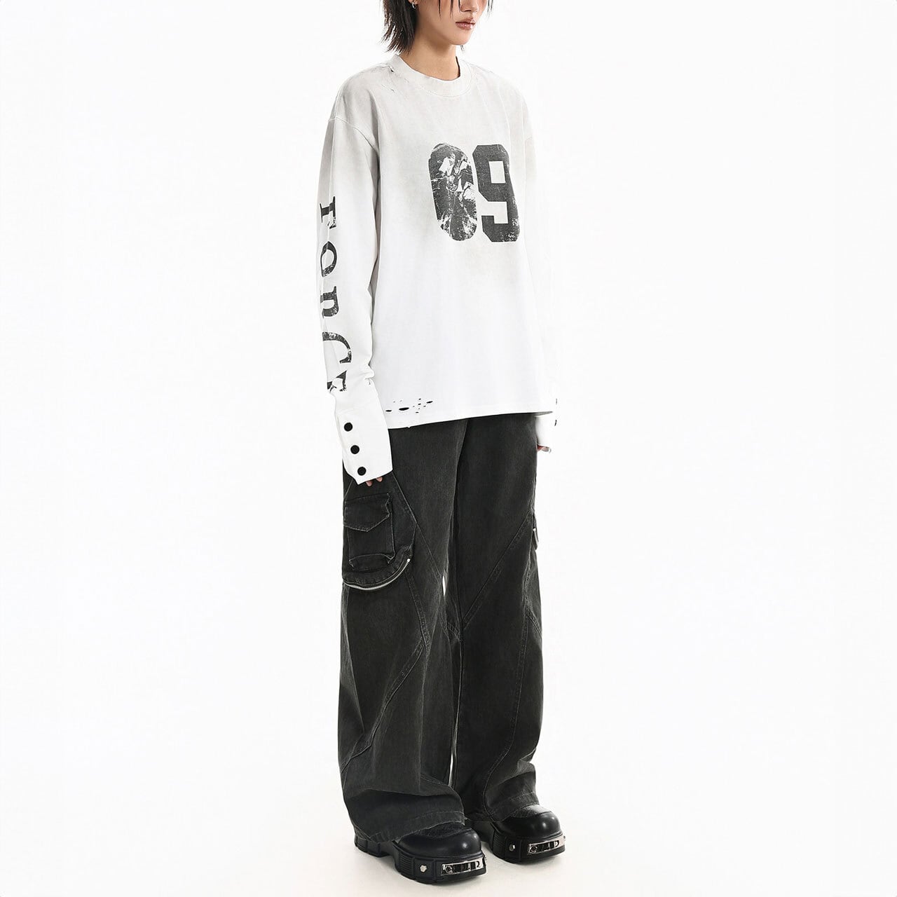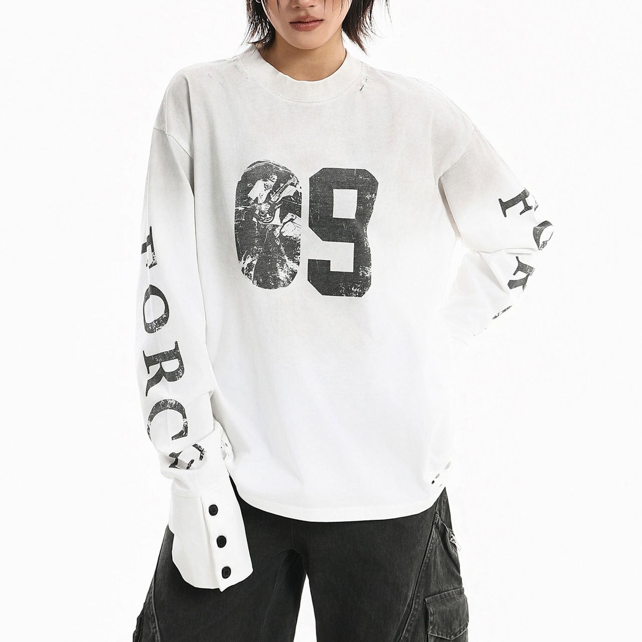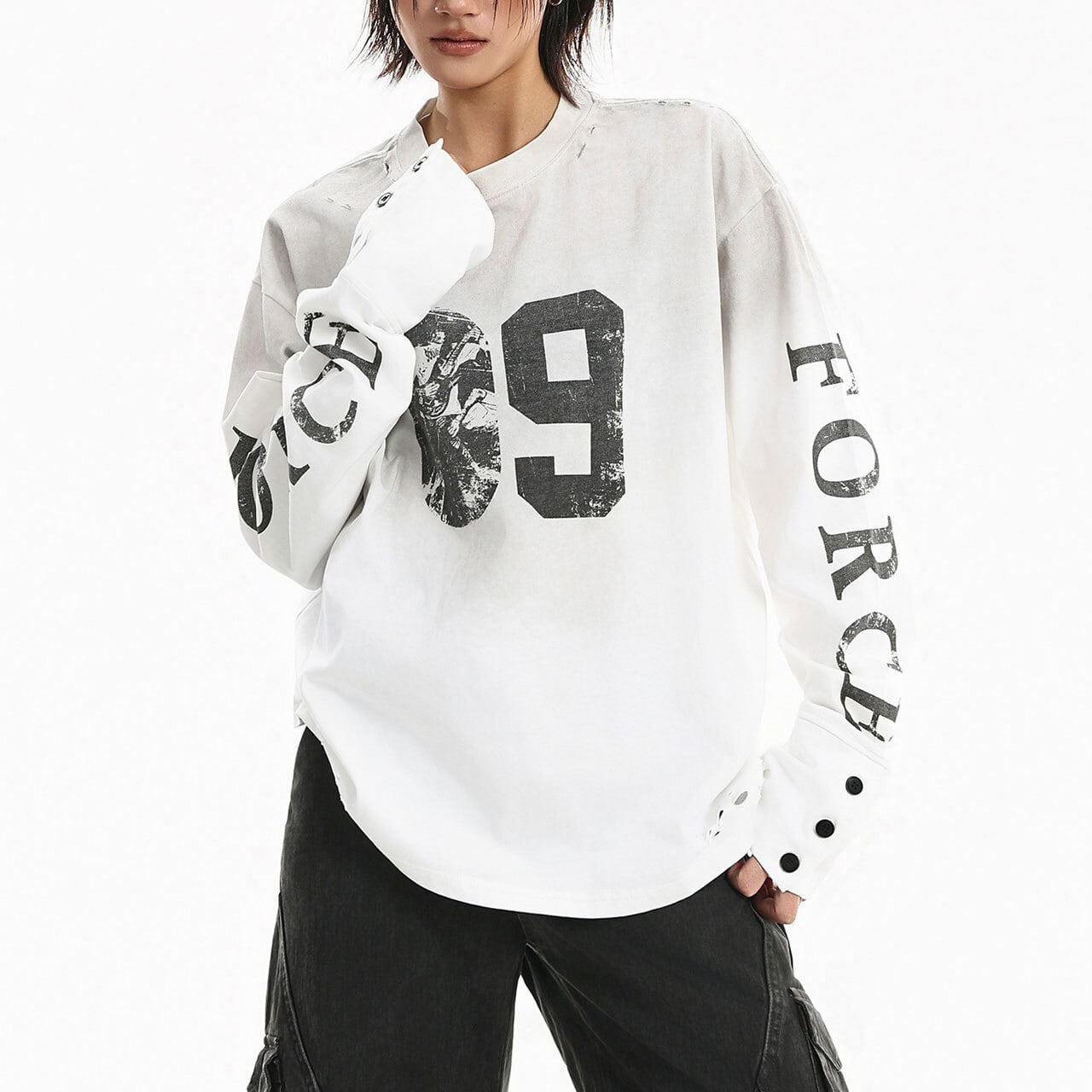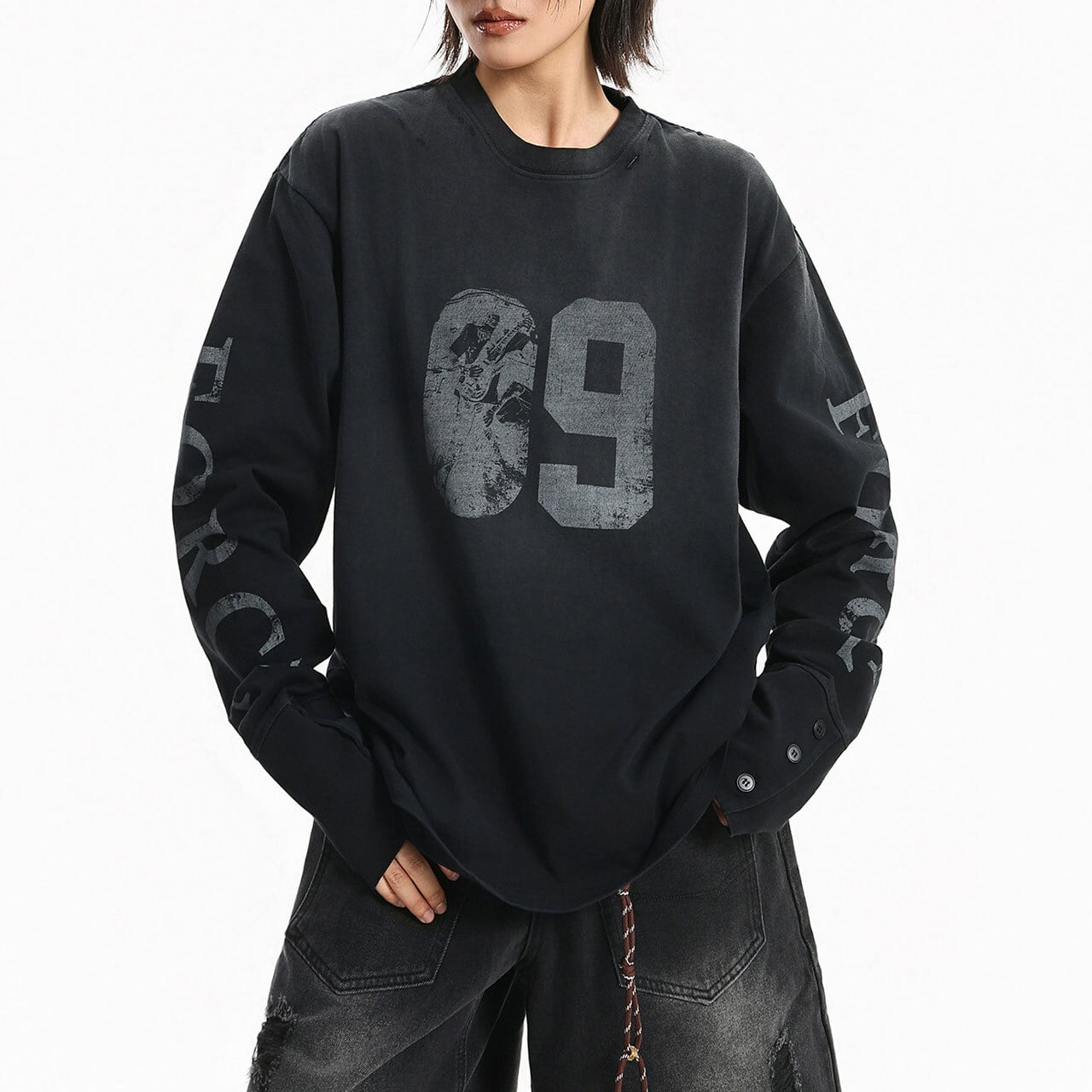 フロントのナンバーモチーフが視線を集める、ストリートテイストなロングスリーブ。