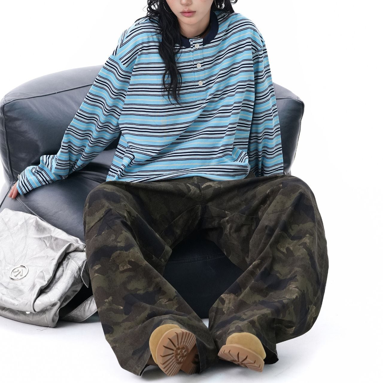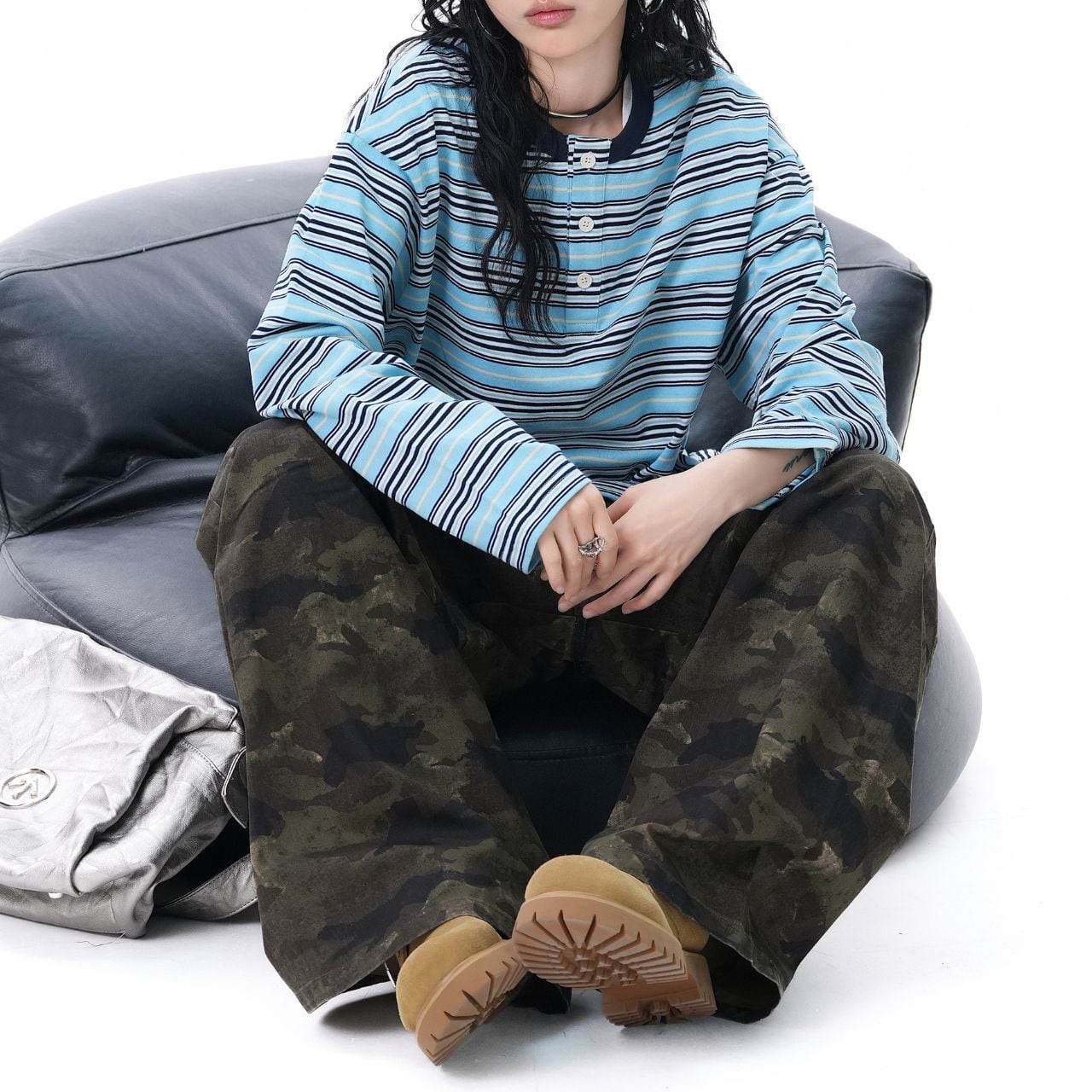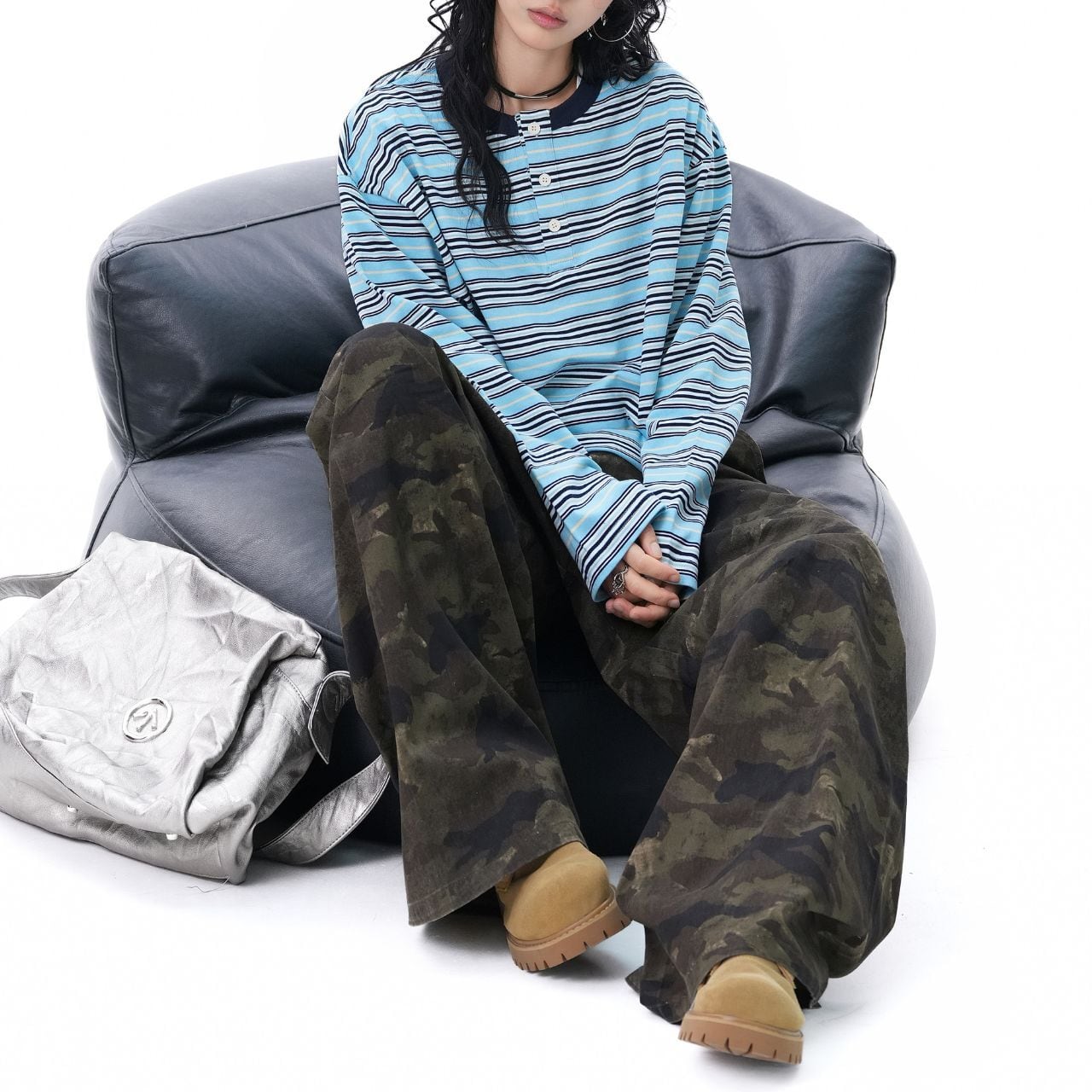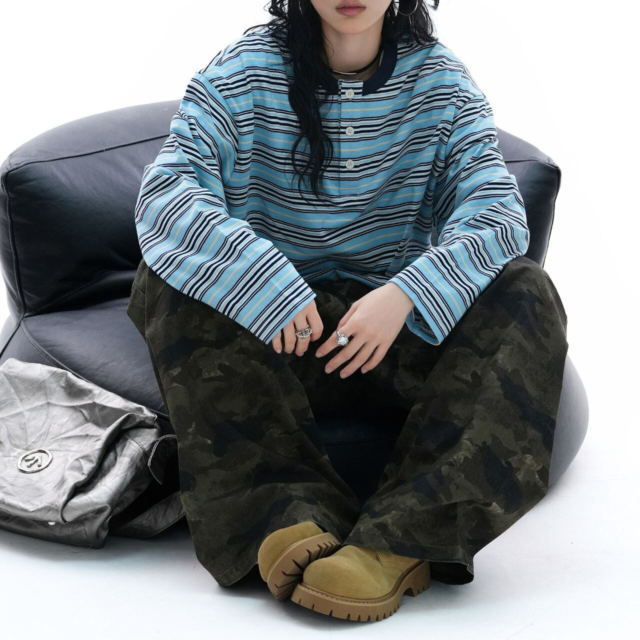 ワイドカーゴやデニムと合わせて、ラフにまとめるだけで雰囲気の出る1枚。