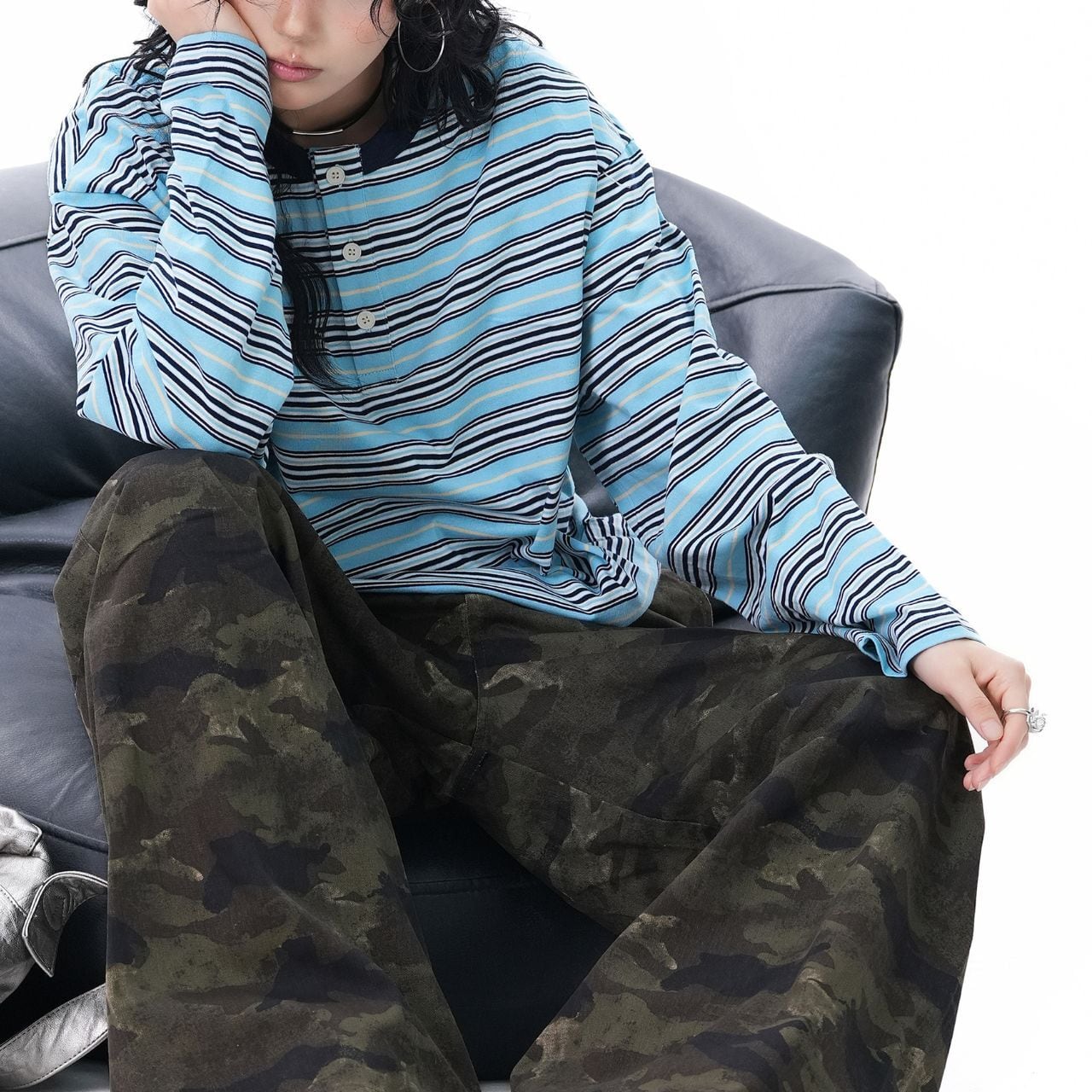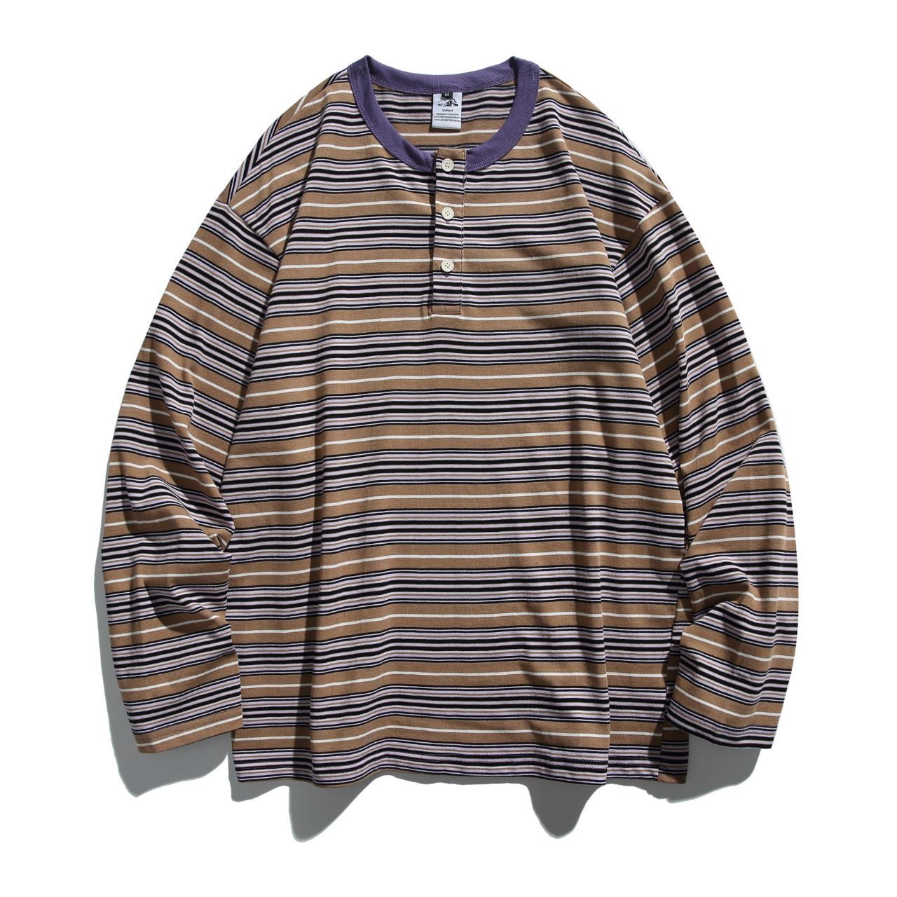 マルチボーダーヘンリーネックロングTシャツ 2col R01800