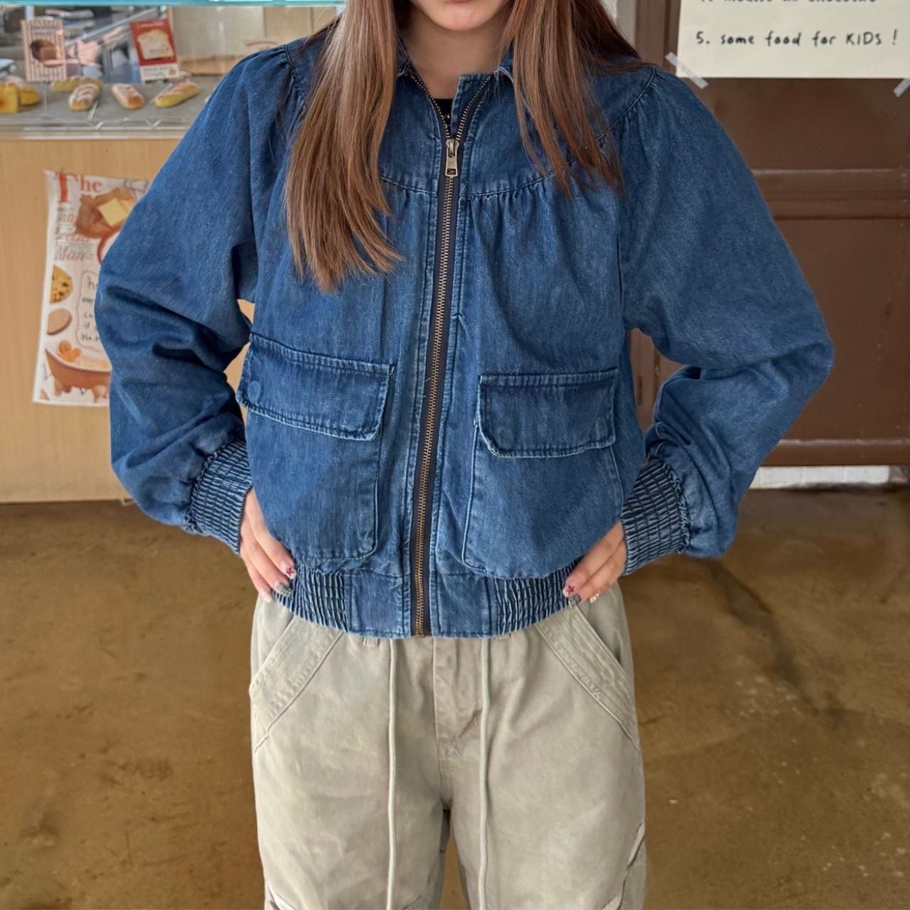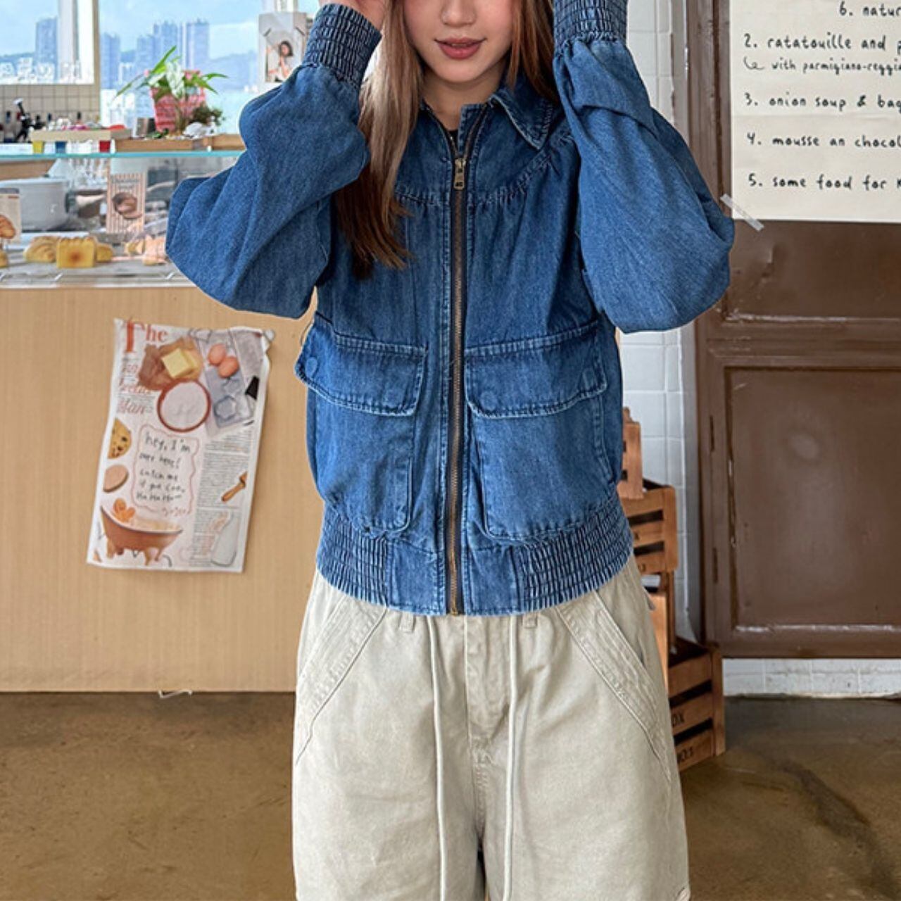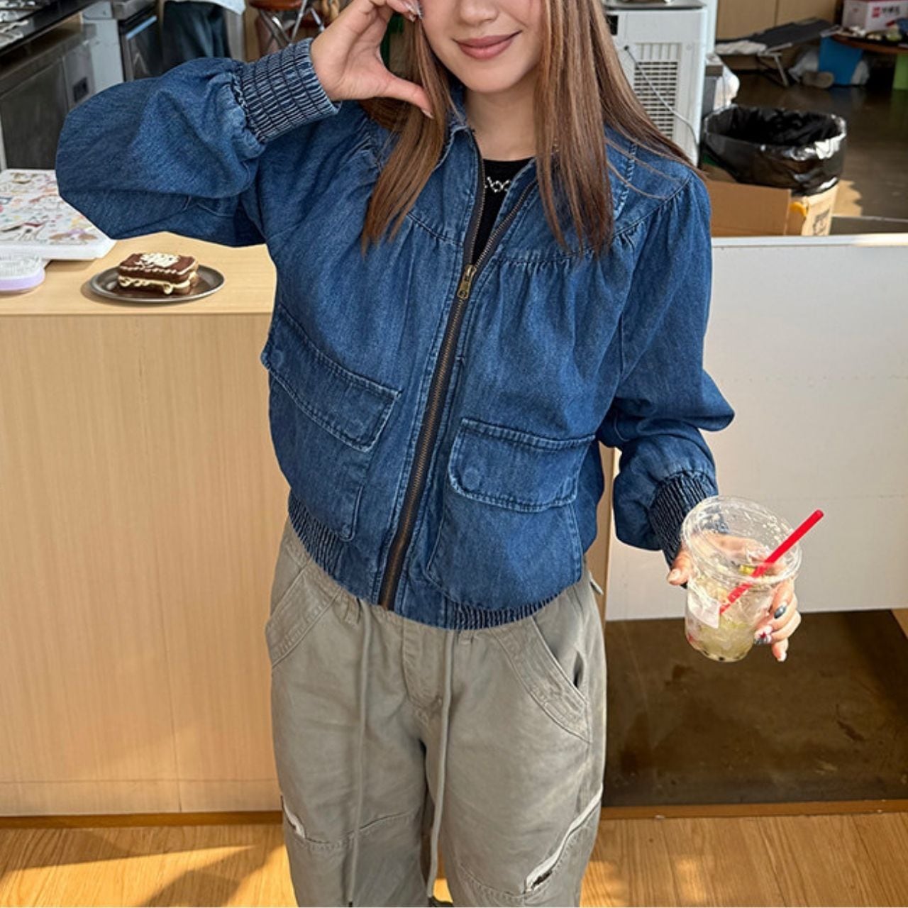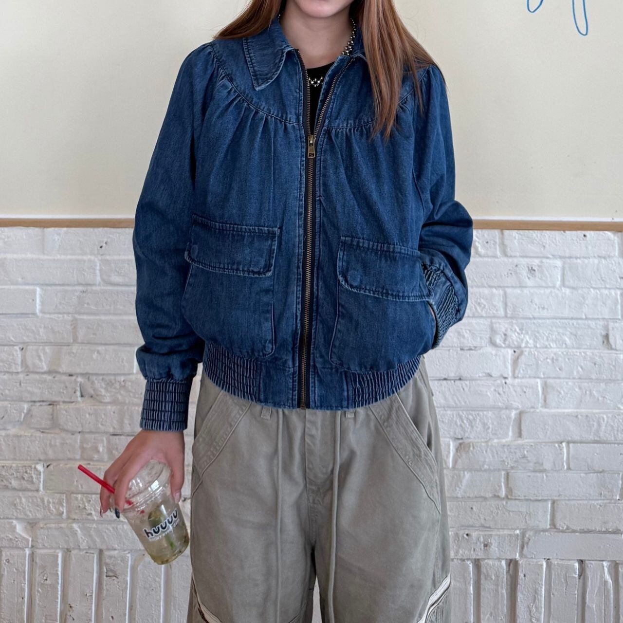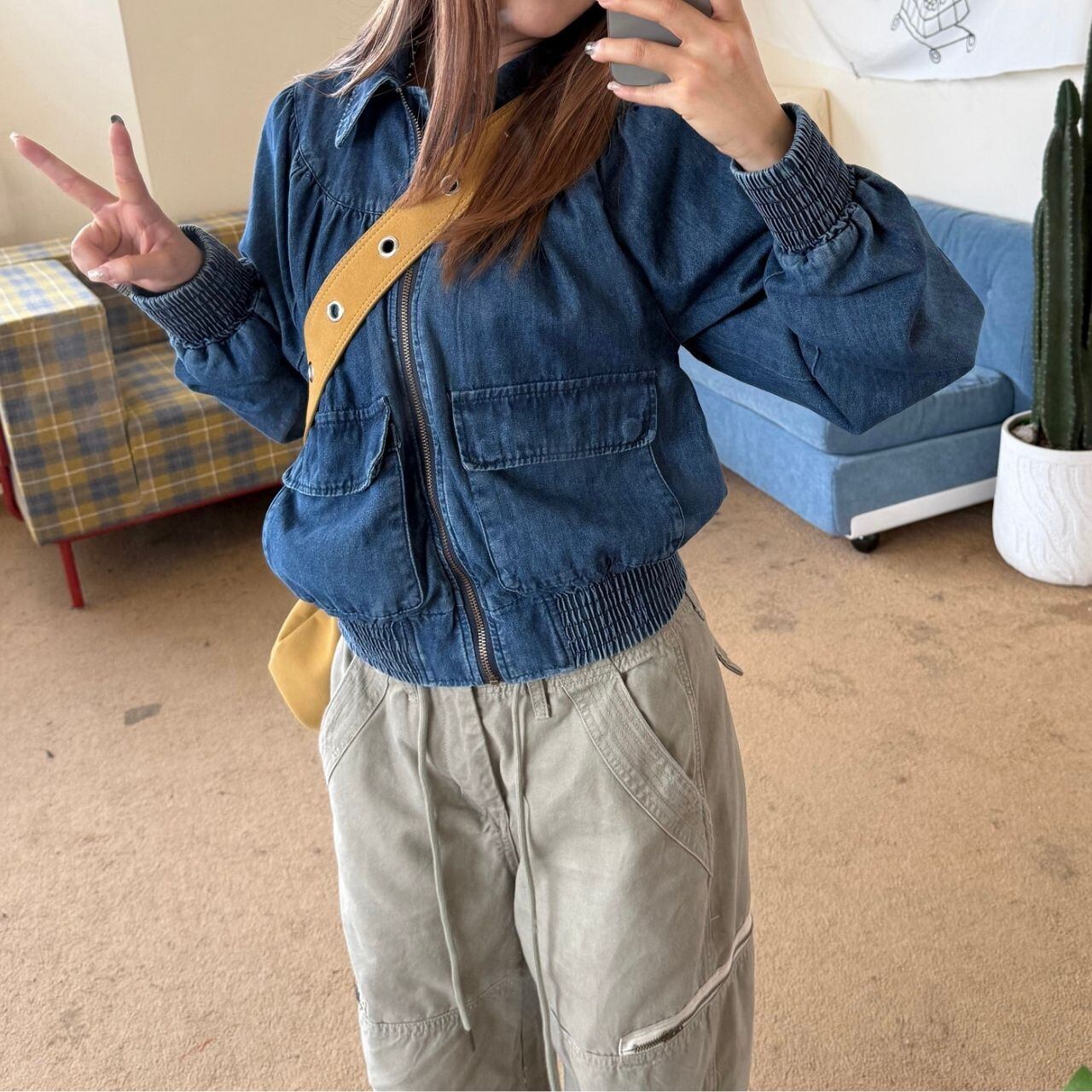 ヴィンテージムード漂うデニムデザインが目を引くジップジャケット。