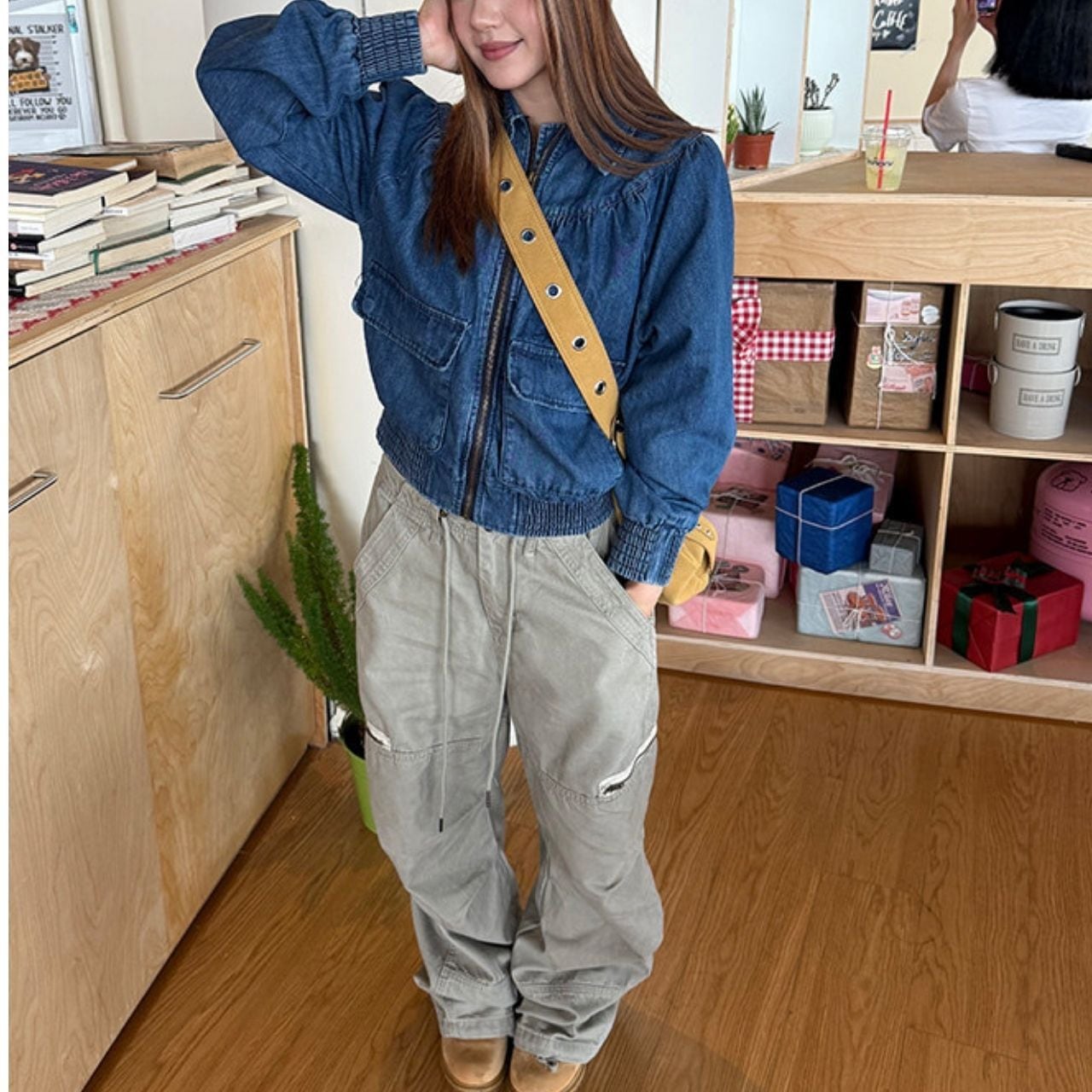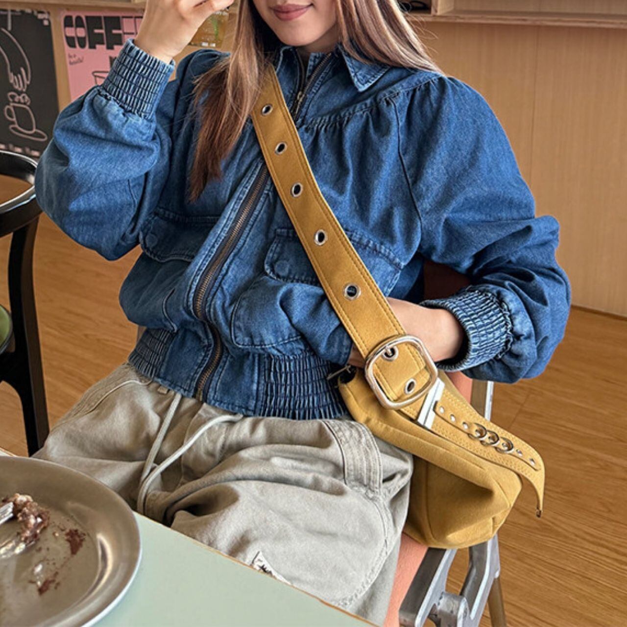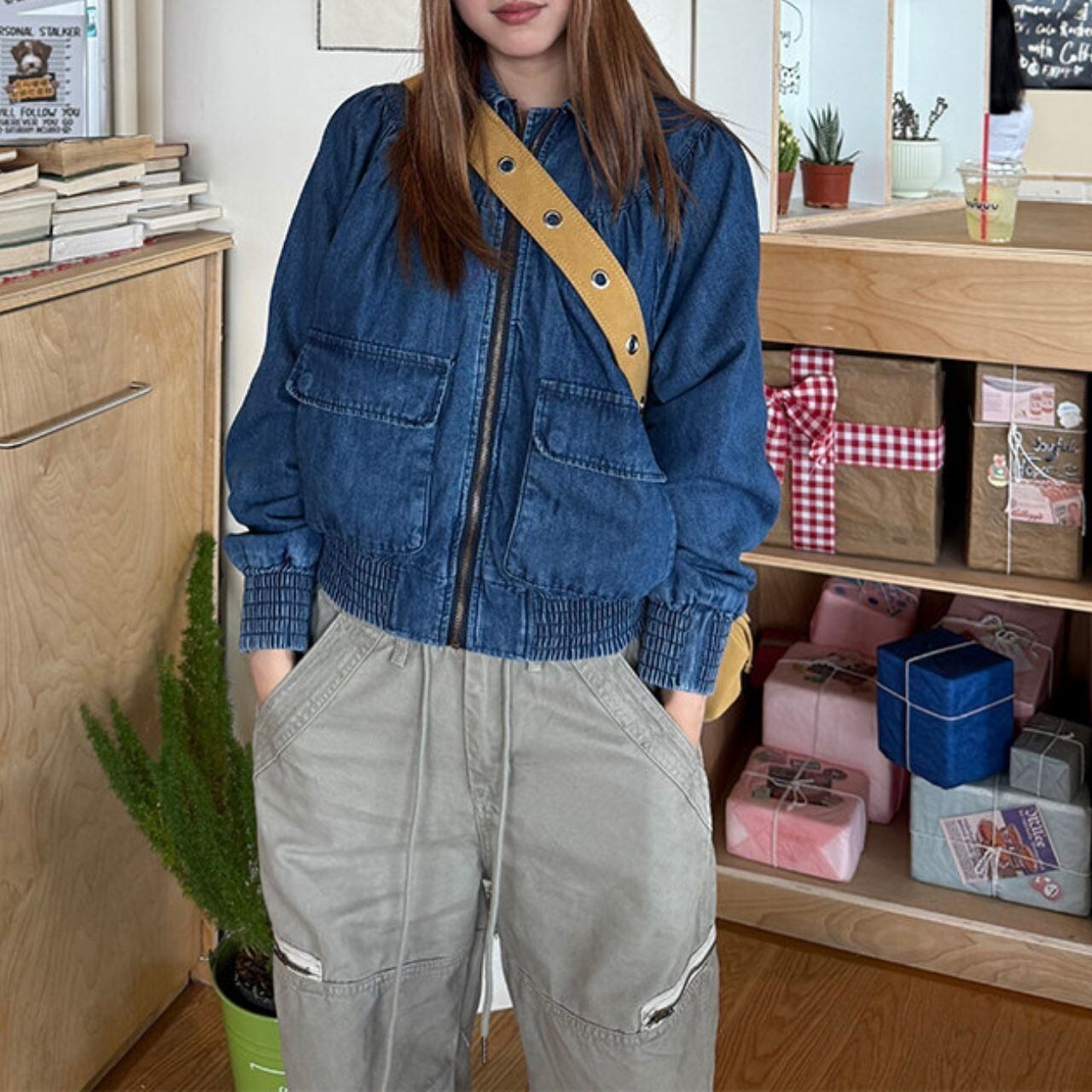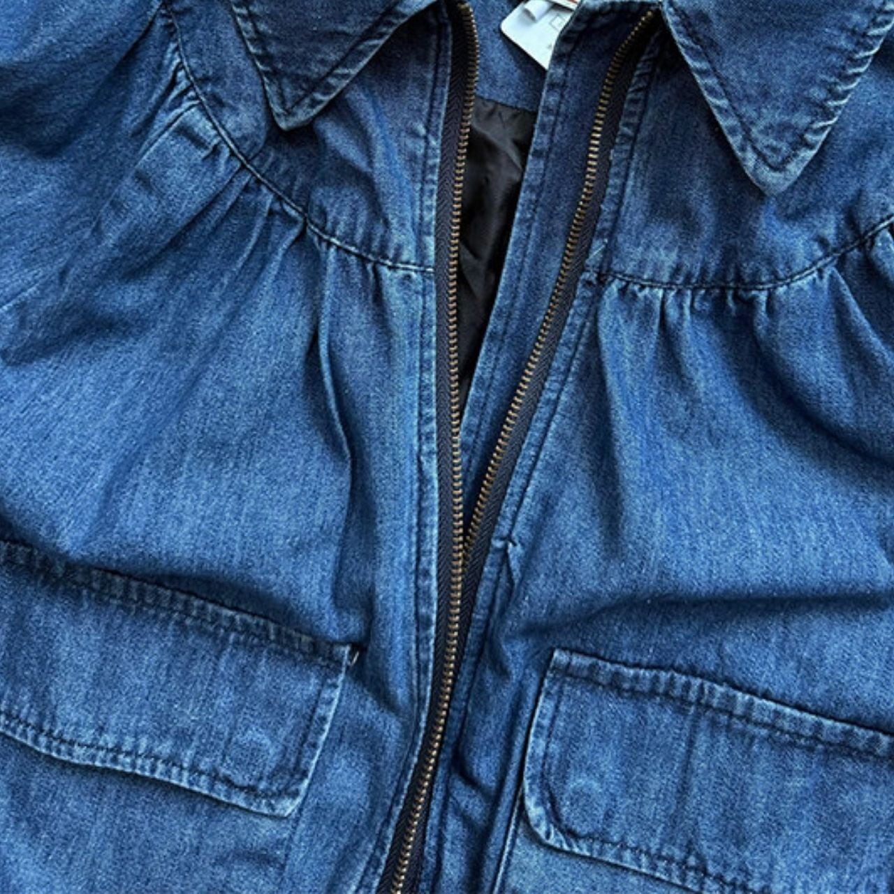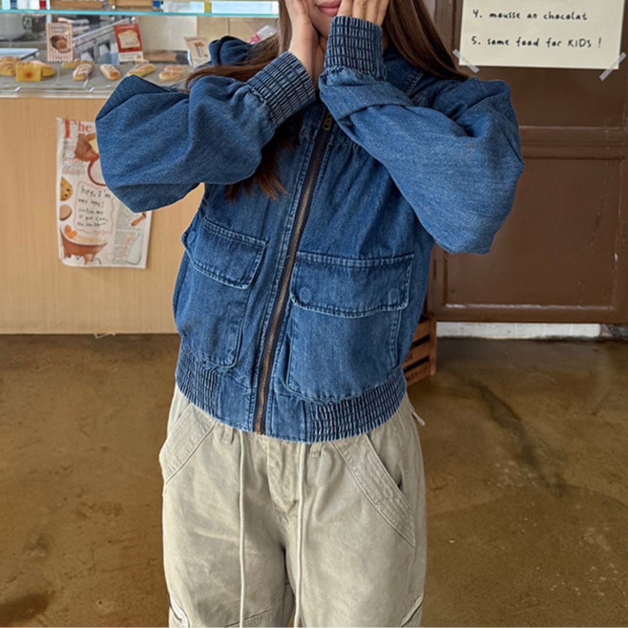 ヴィンテージムード漂うデニムデザインが目を引くジップジャケット。