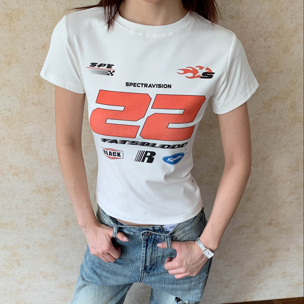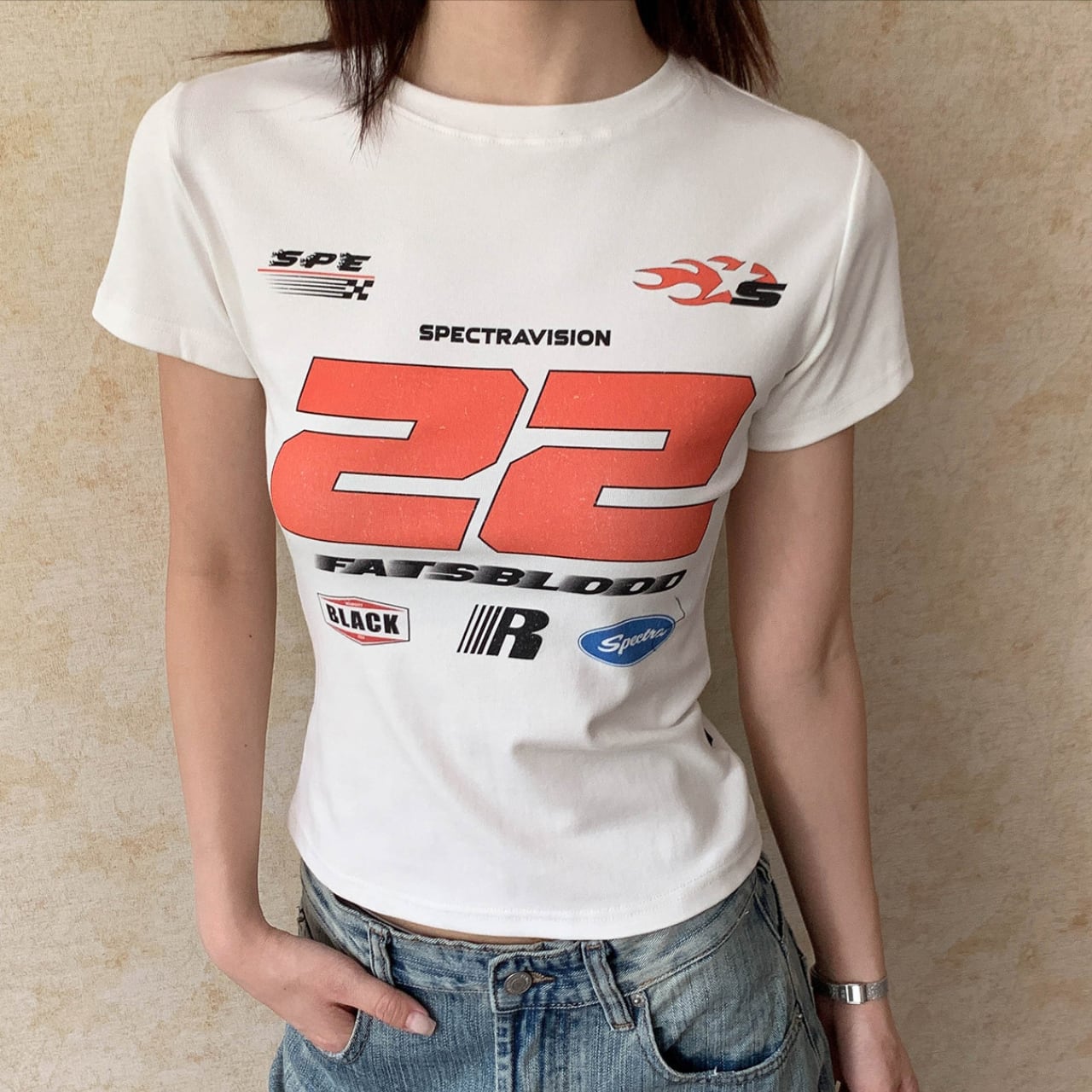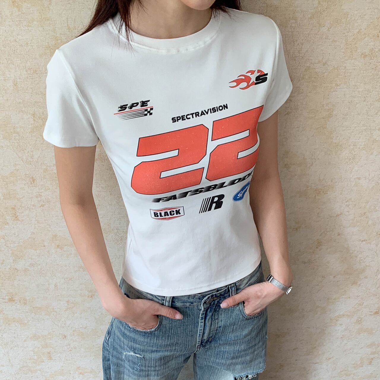 グラフィックプリントクロップドTシャツ 1col R01818