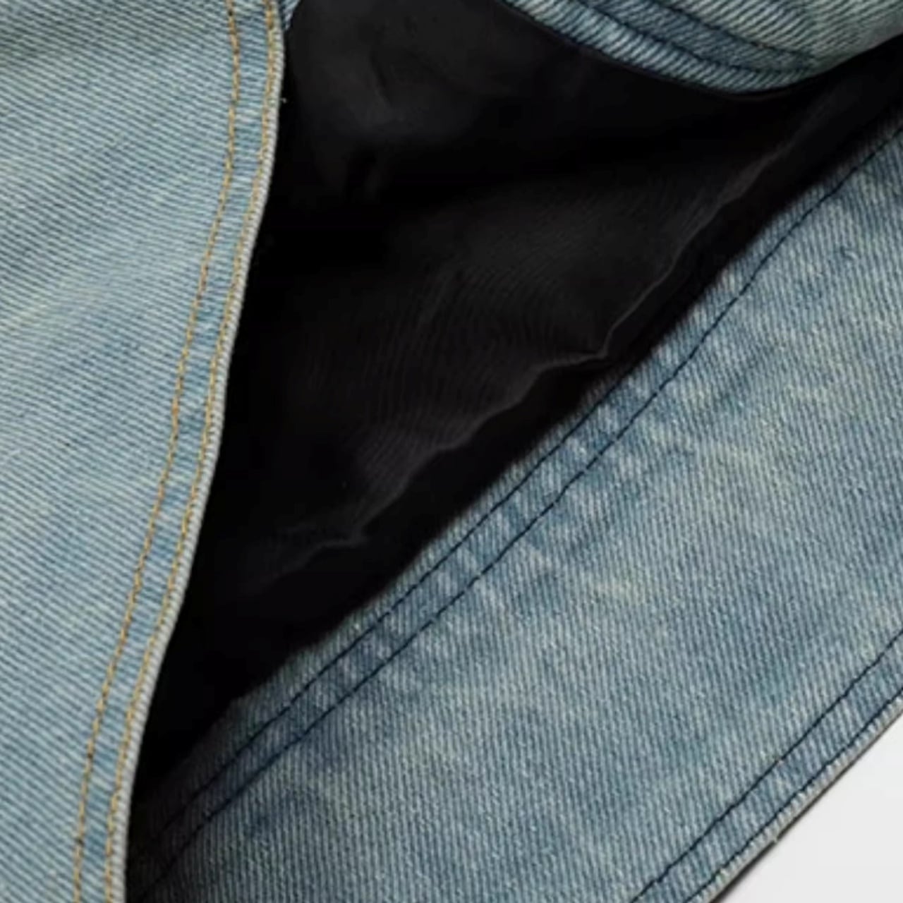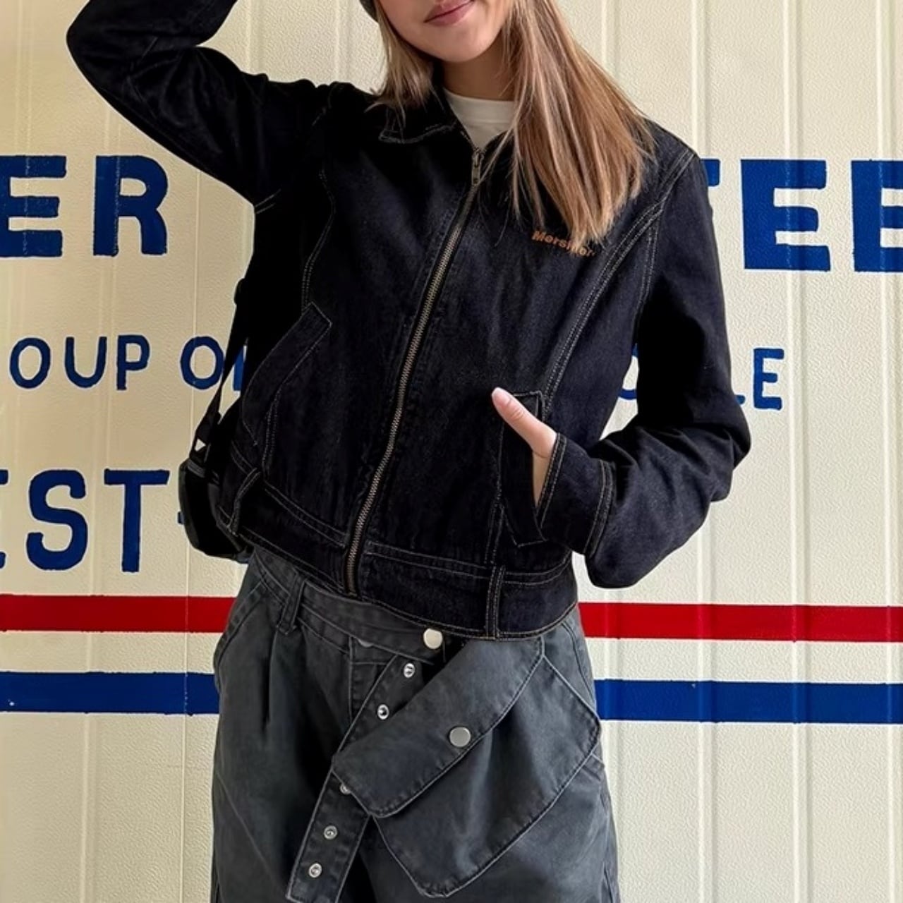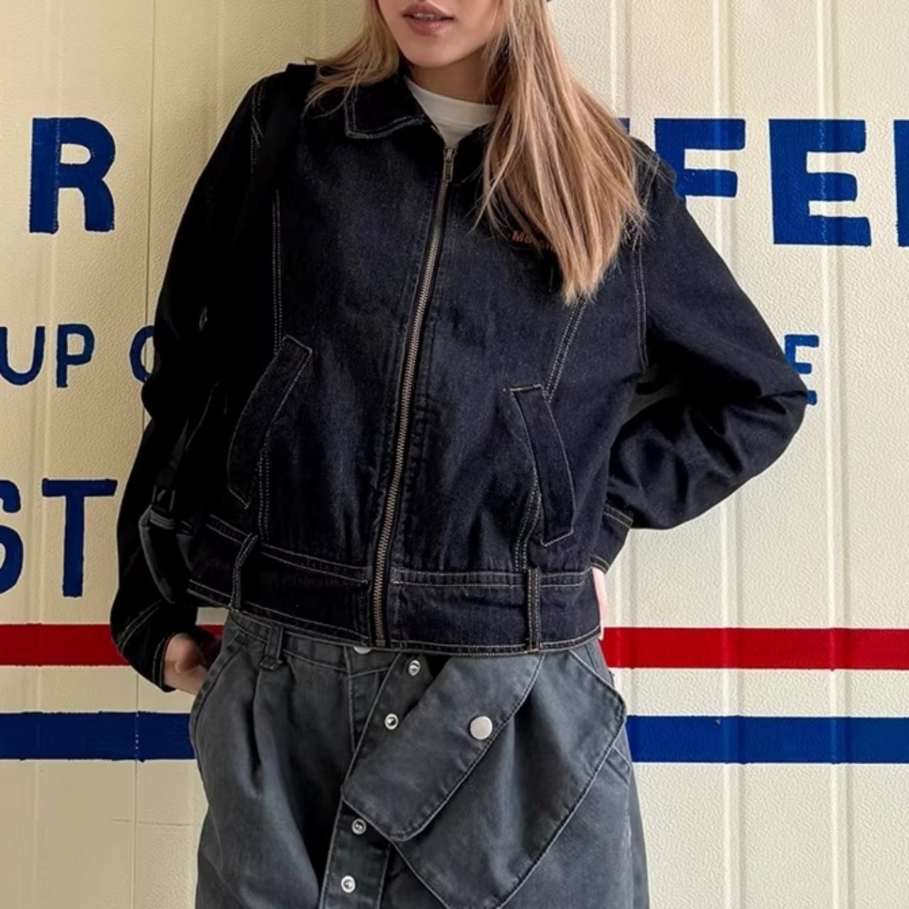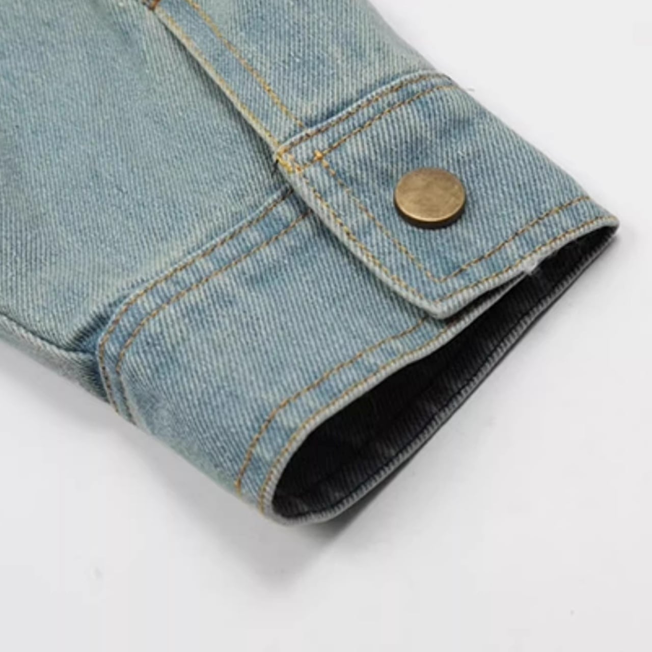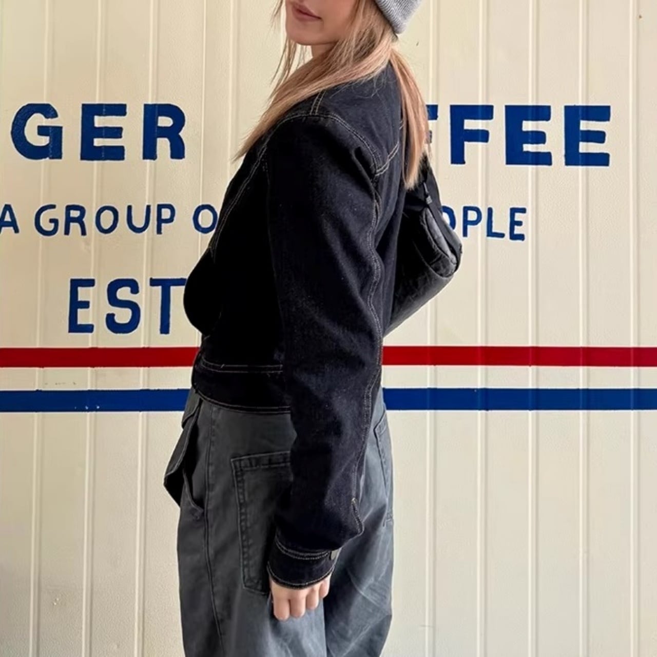 コンパクトなシルエットが魅力の、長袖デニムジャケット。