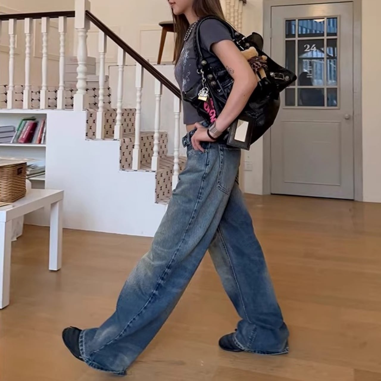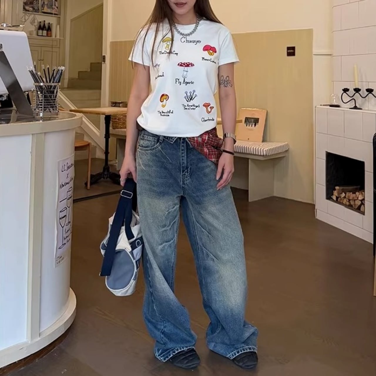 ゆるめのトップスを合わせた、リラックス感のあるストリートコーデで個性を楽しめます。