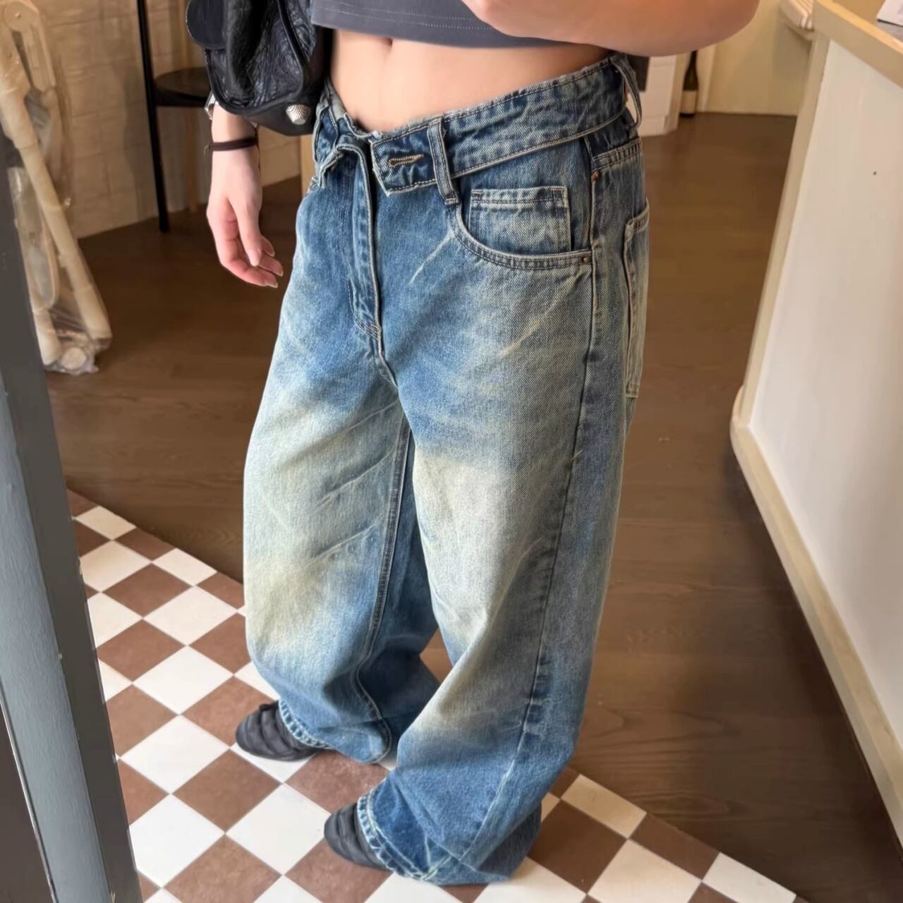 フリップアップウエストワイドラインデニムパンツ 1col R01828