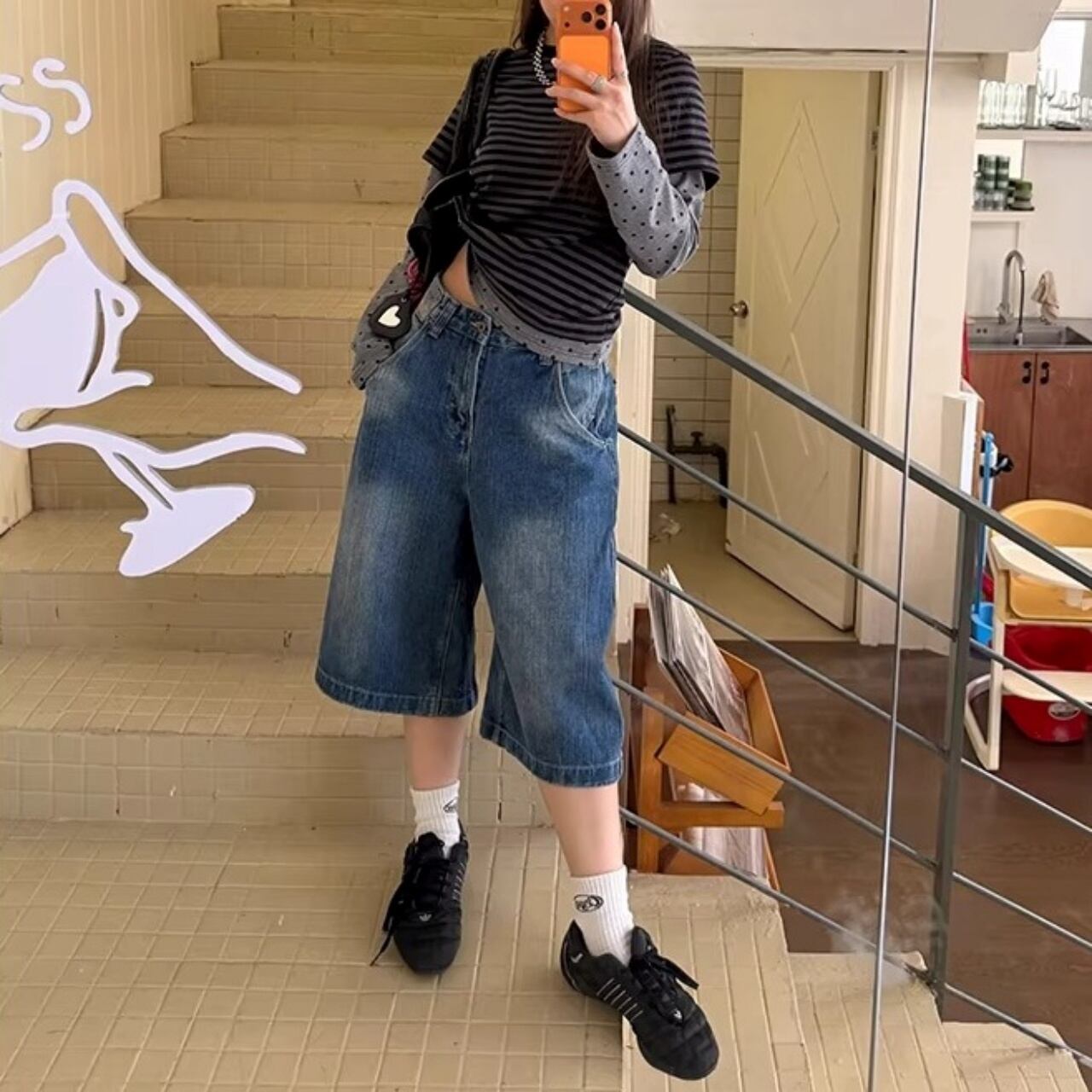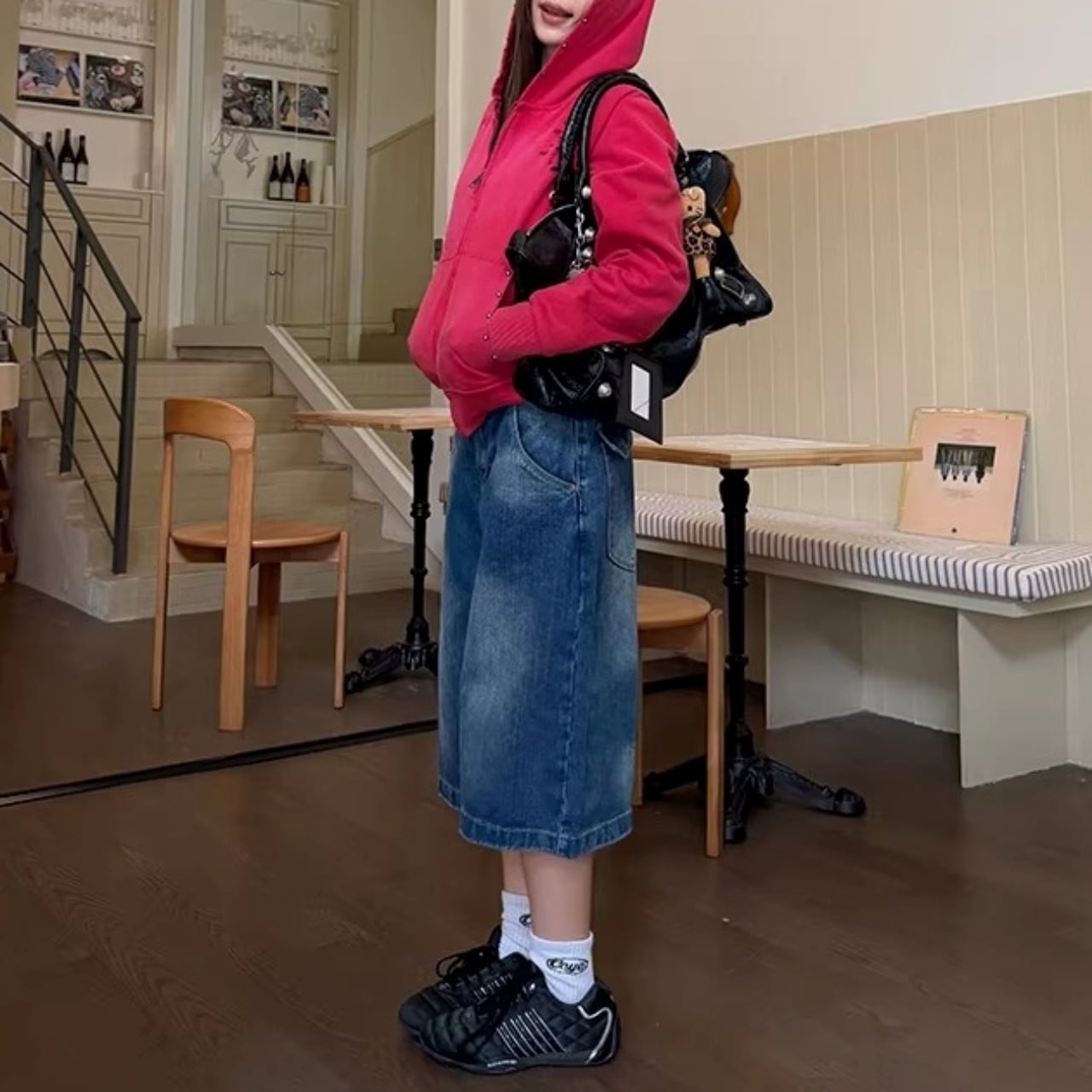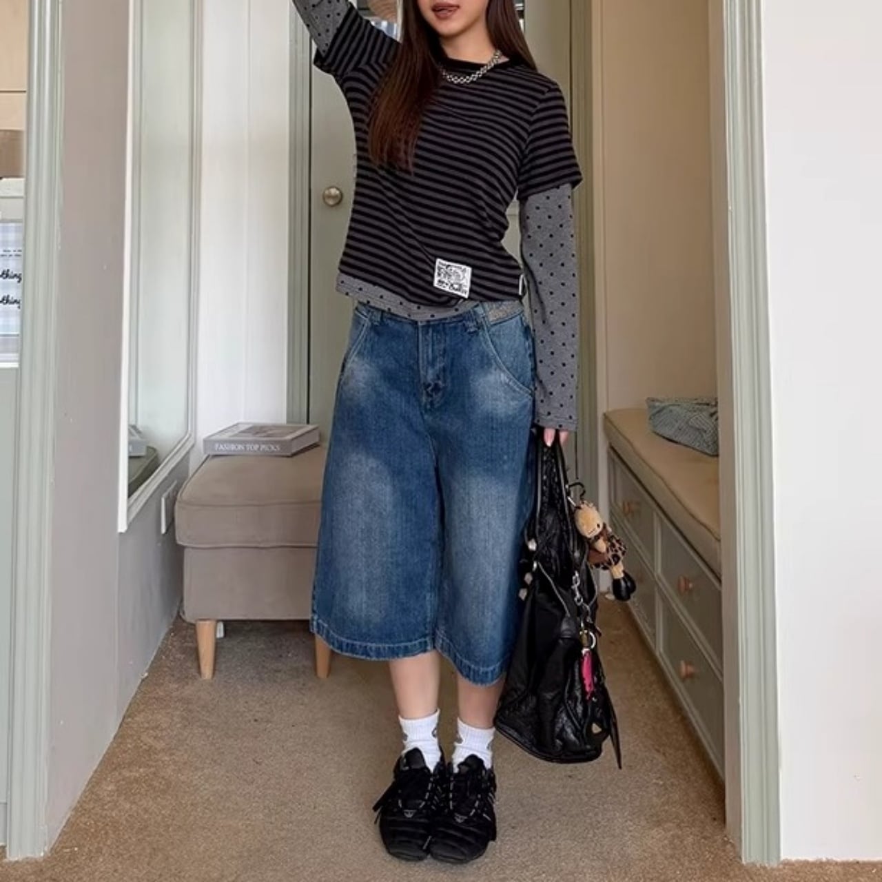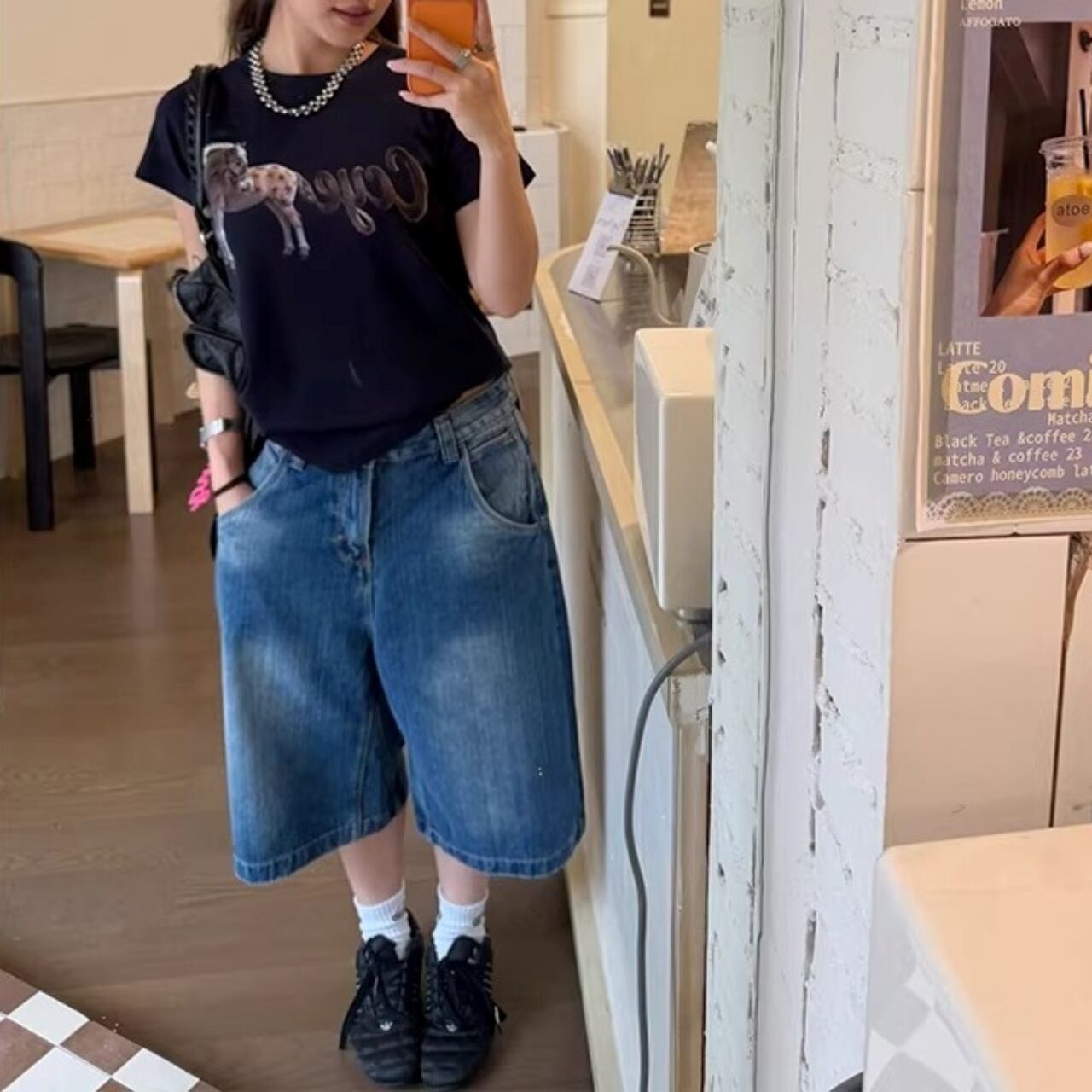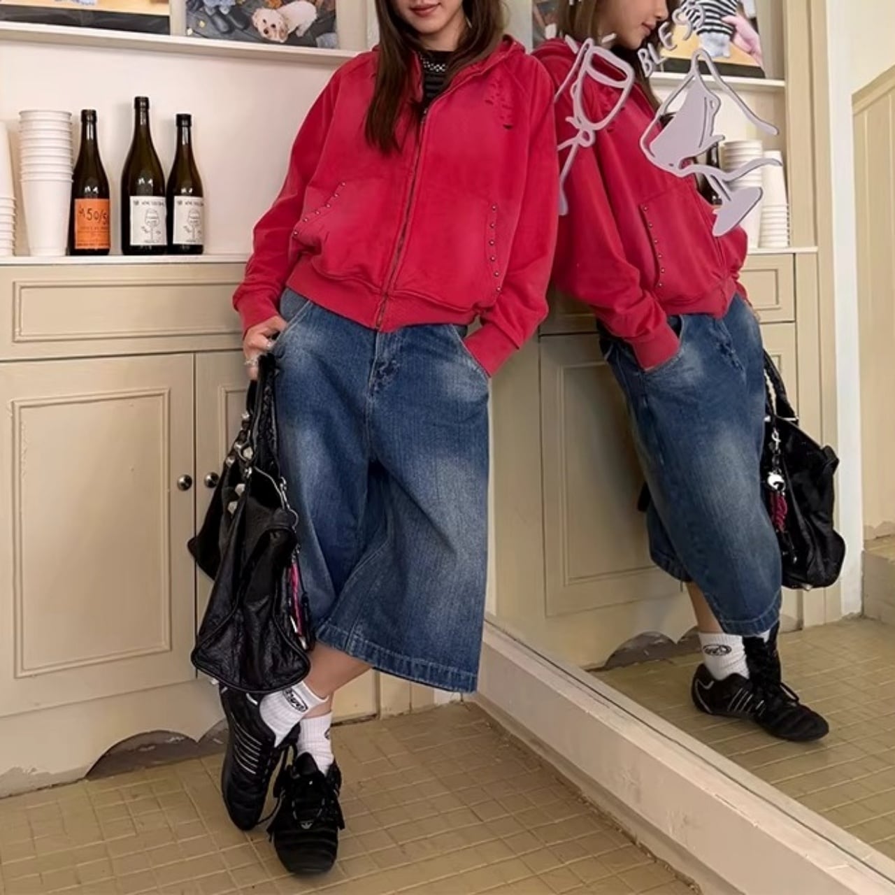 オーバーサイズのTシャツをインして腰回りのアクセントを見せたり、スニーカーと合わせたストリートスタイルがおすすめです。