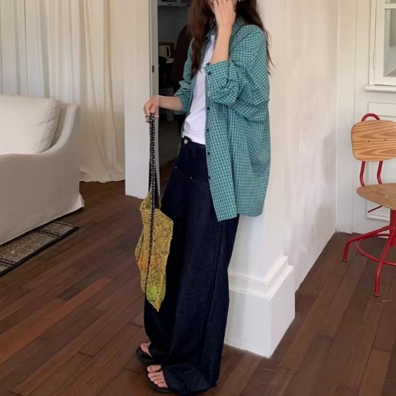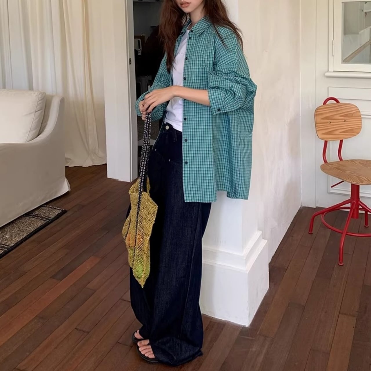 クラシカルなチェック柄が目を引く、ビッグシルエットへ落とし込んだ存在感のあるシャツ。