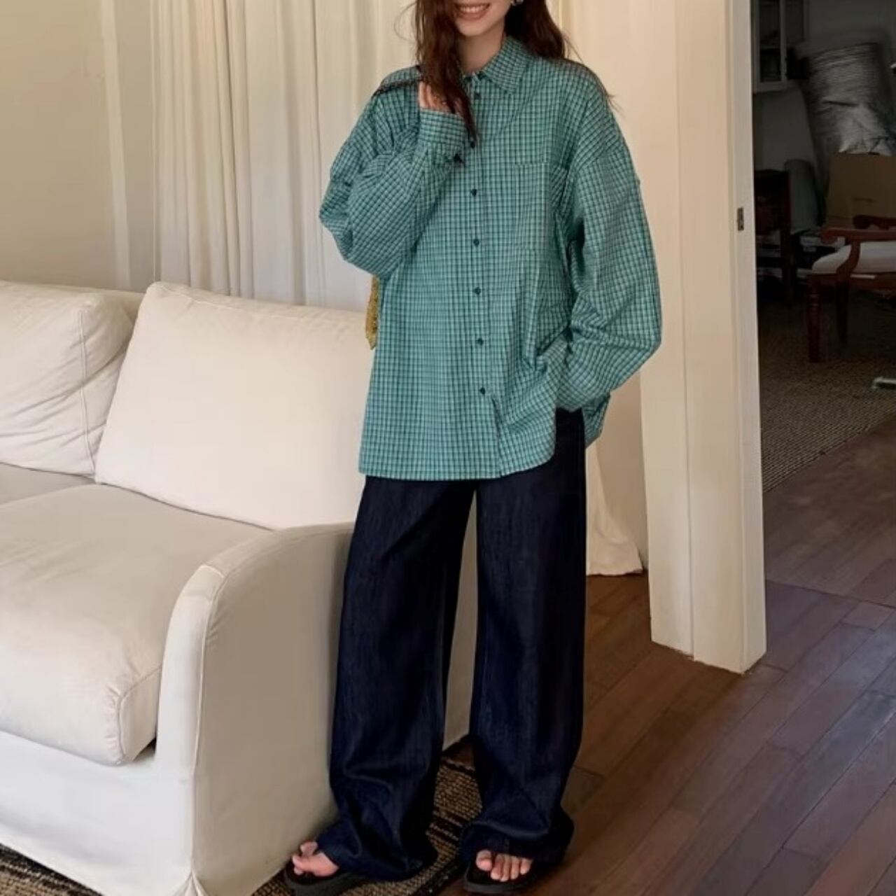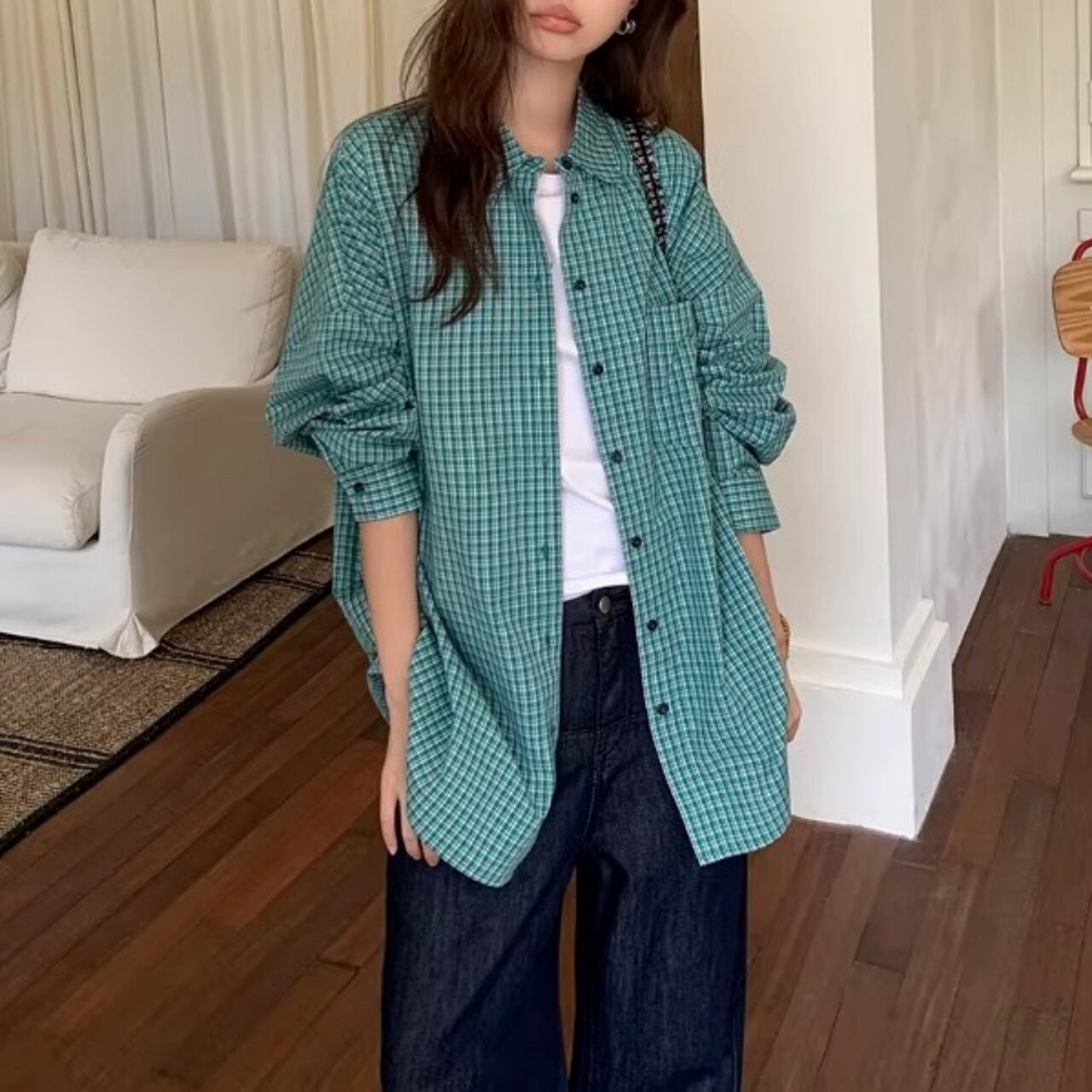 トラッドチェックルーズシルエットシャツ 1col R01832