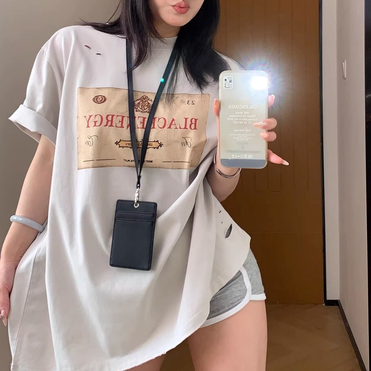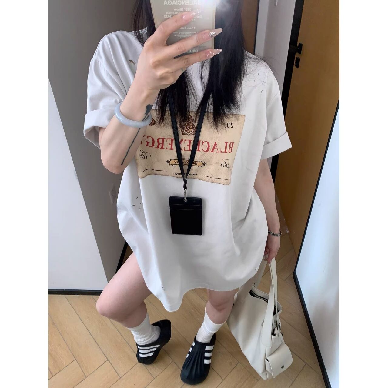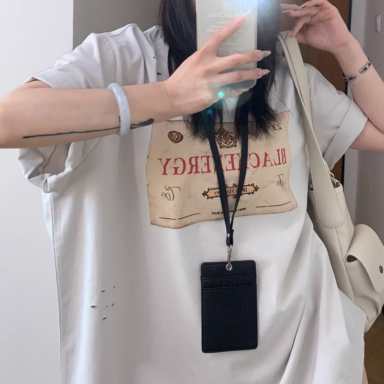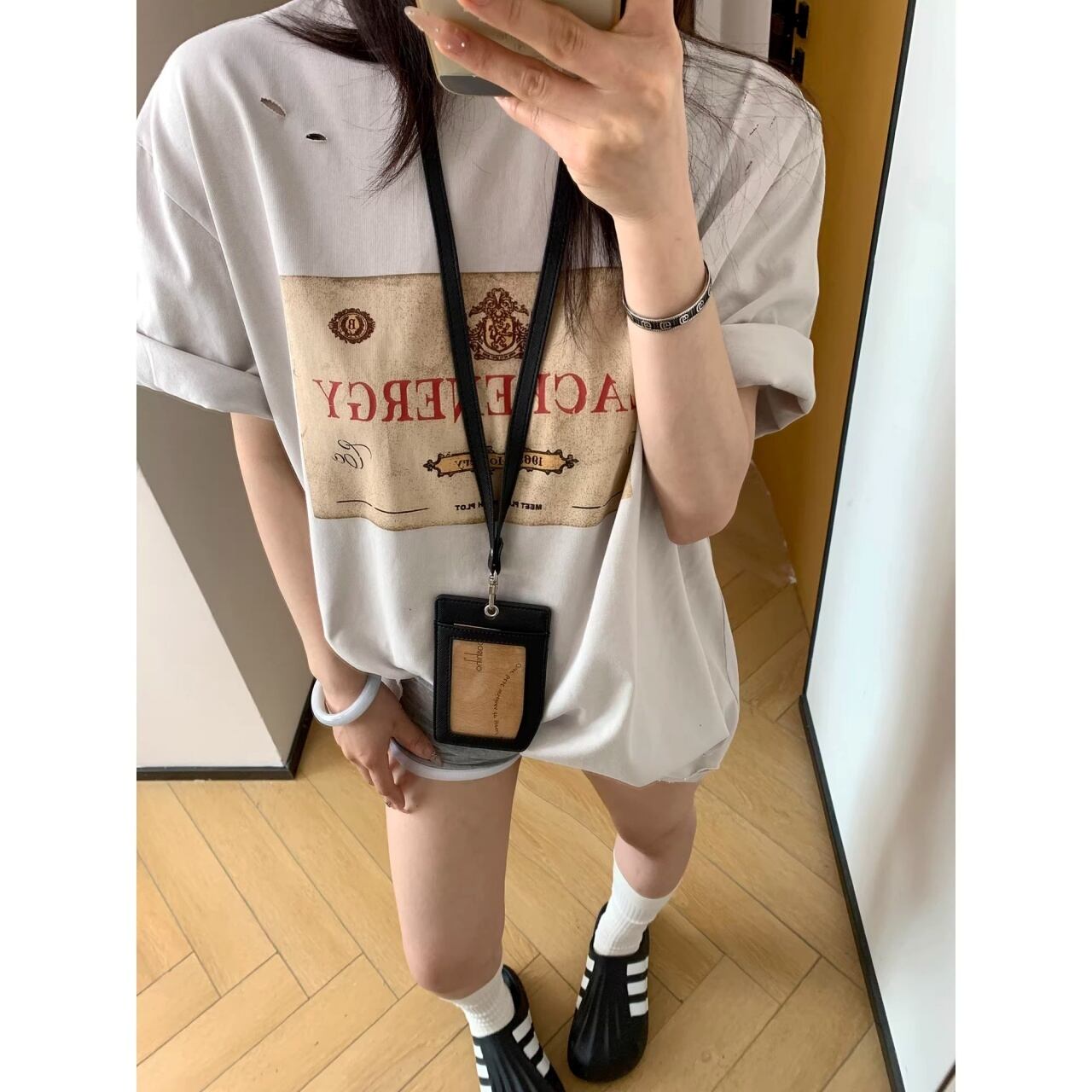 クラシカルなラベルモチーフを大胆に配置し、ダメージディテールでエッジを効かせたTシャツ。