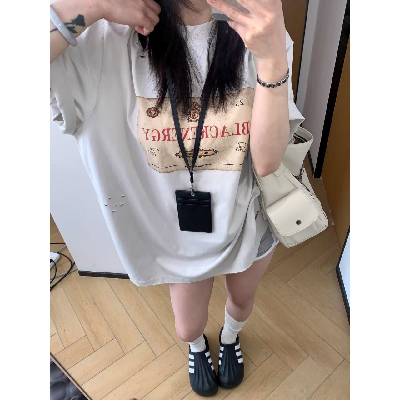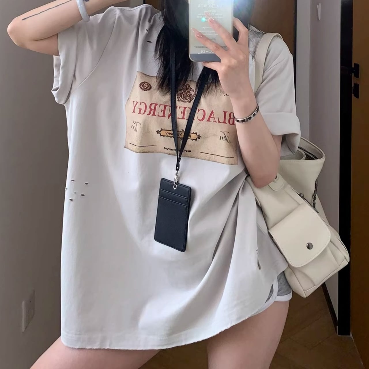 クラッシュデザインラベルモチーフプリントTシャツ 1col R01833