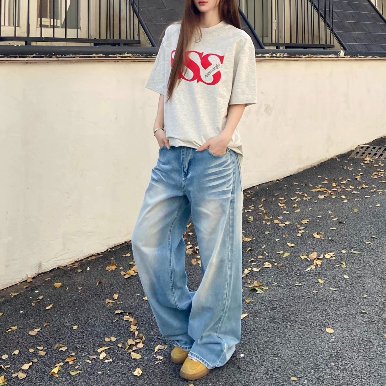 モダンフォントプリントルーズフォルムTシャツ 2col R01840