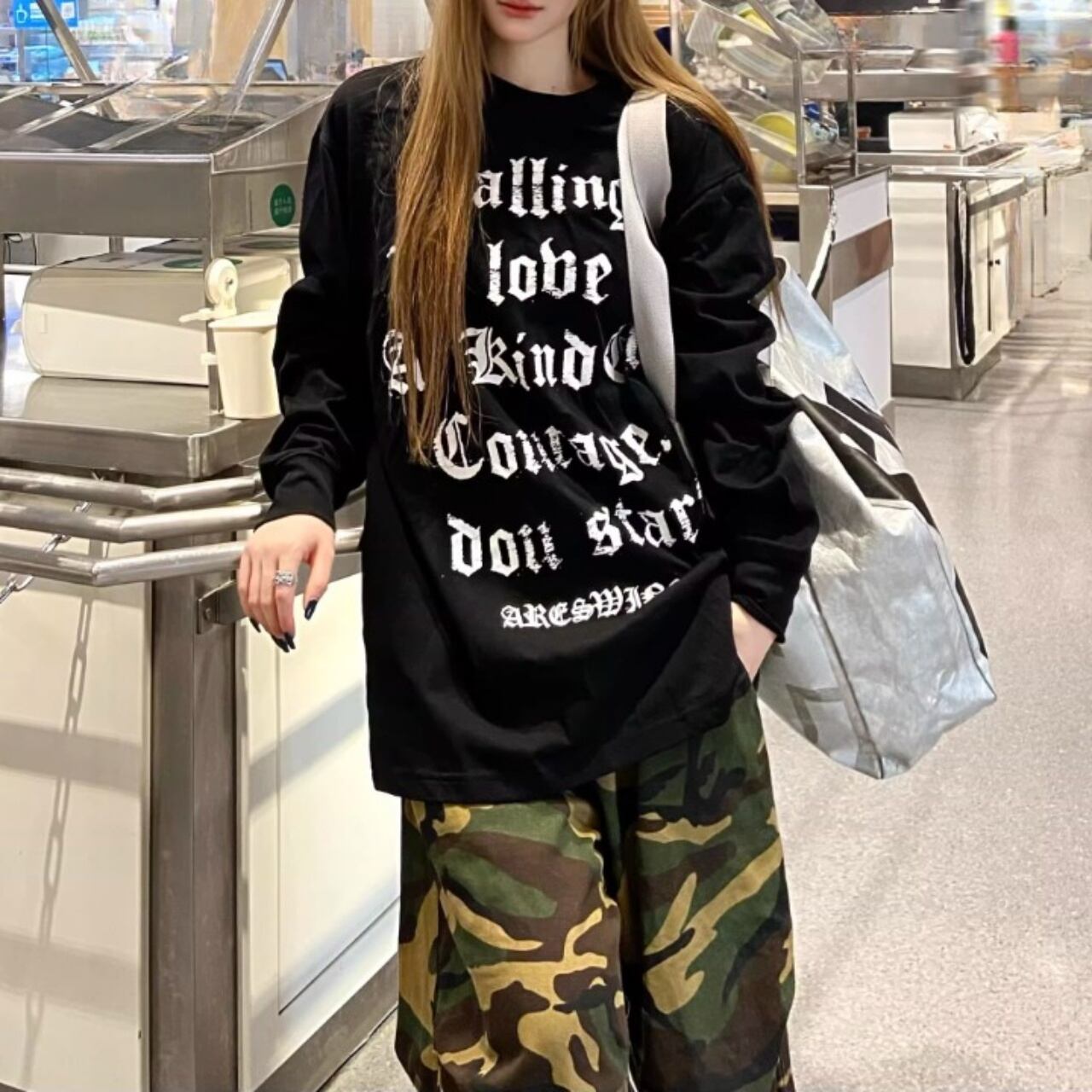 ゴシックテキストプリントロングスリーブTシャツ 3col R01846