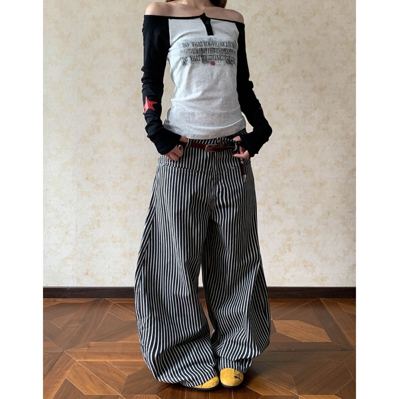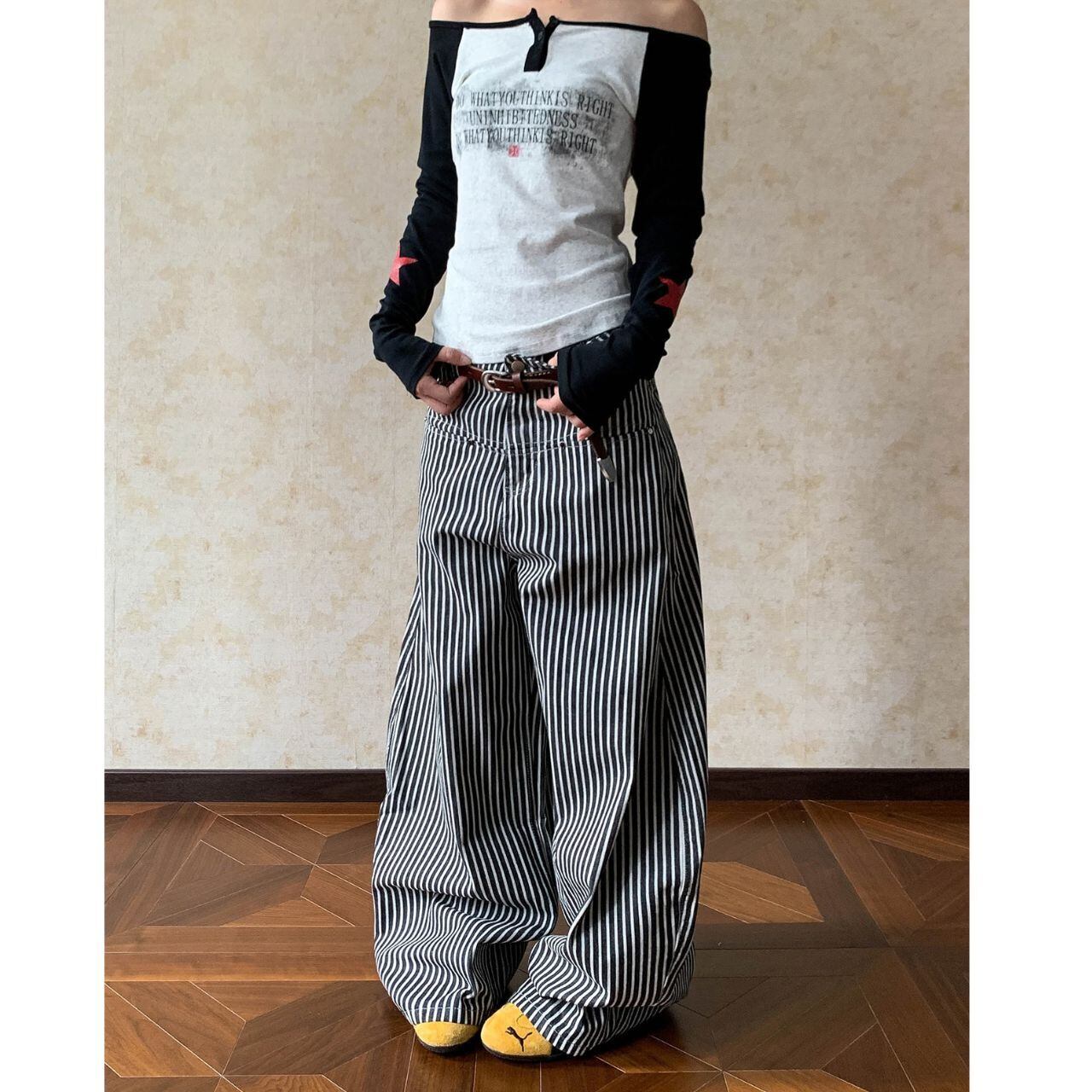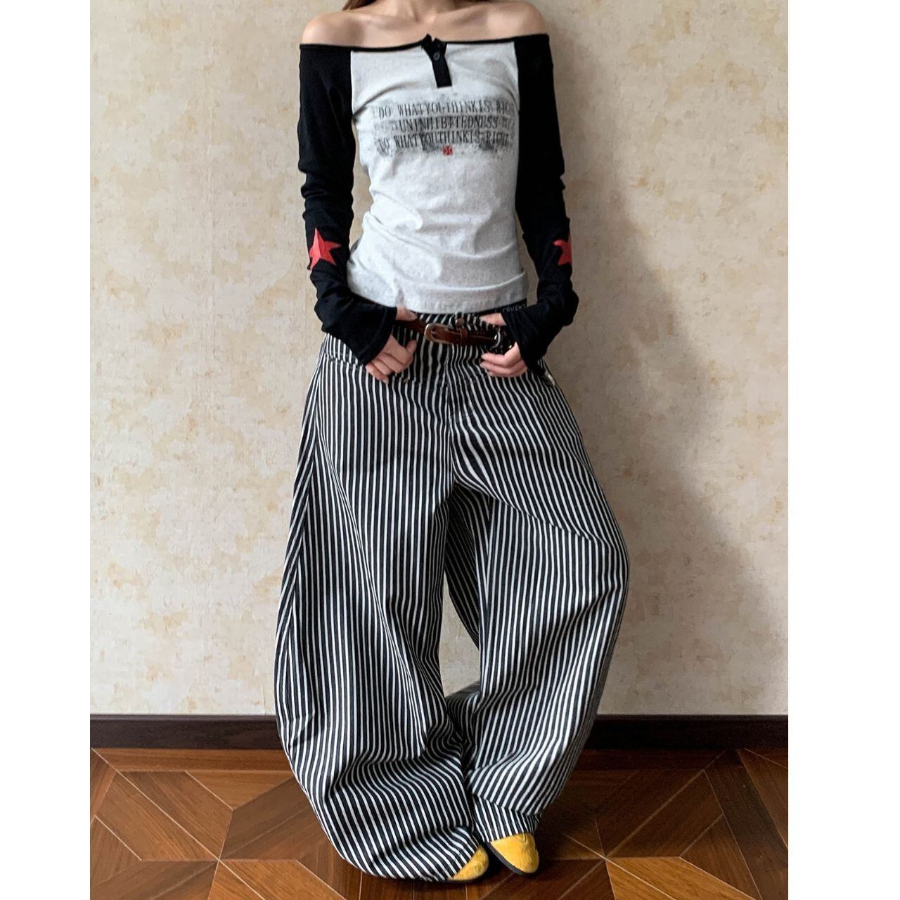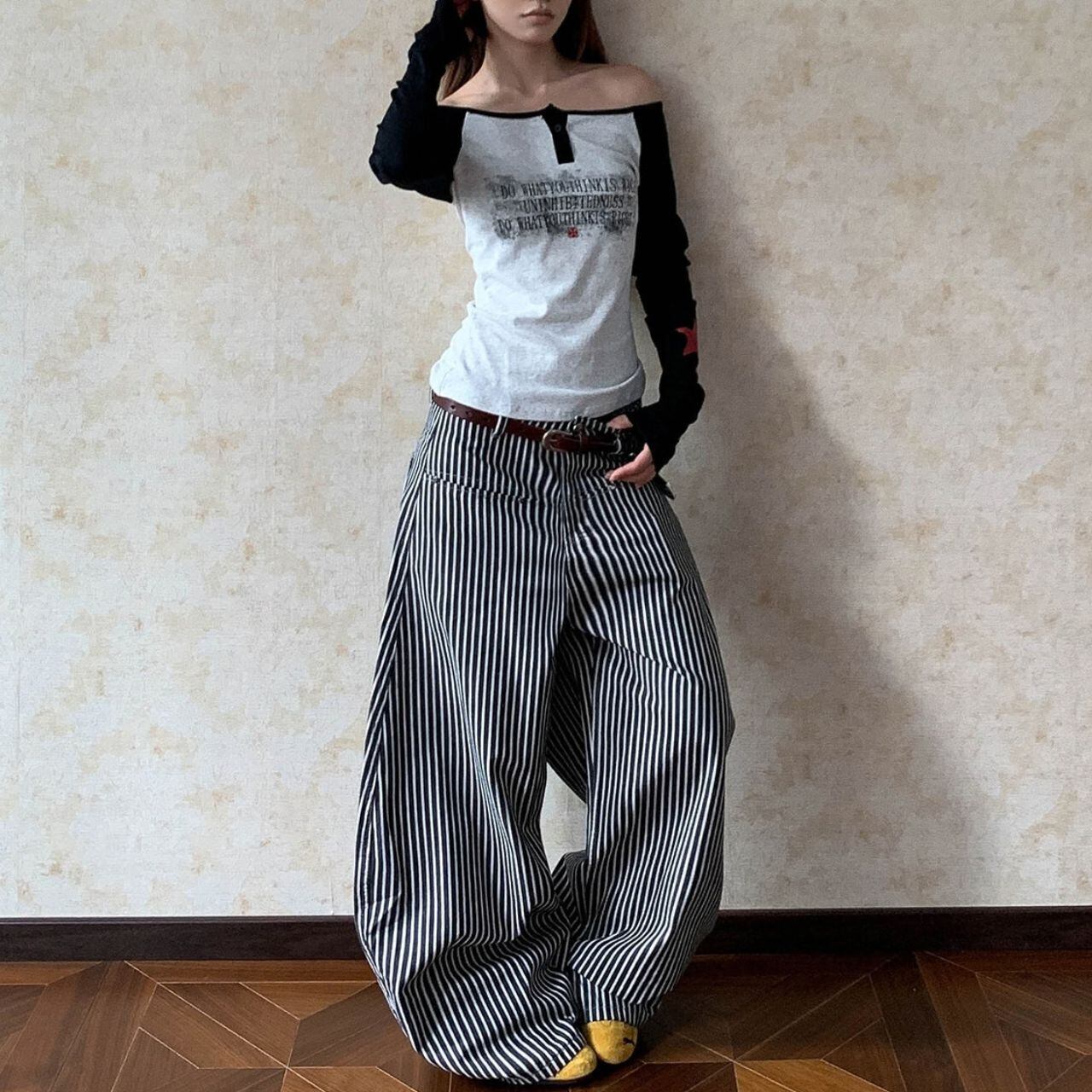 ヴィンテージフルレングスストライプワイドカーゴパンツ 1col R01879