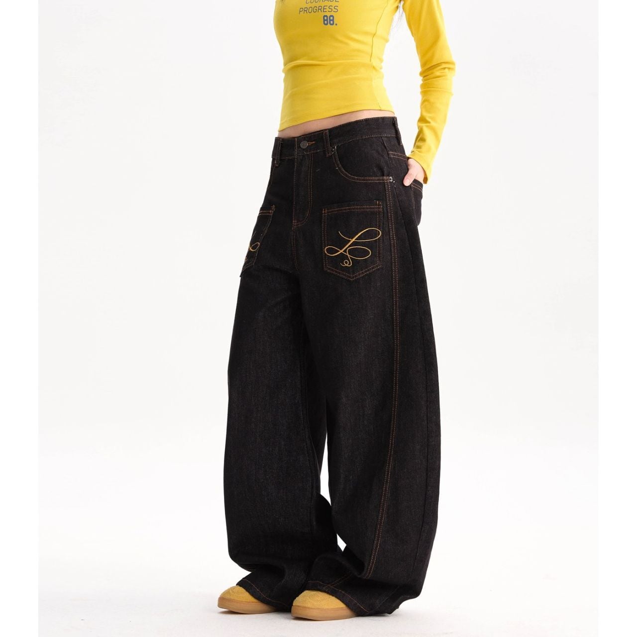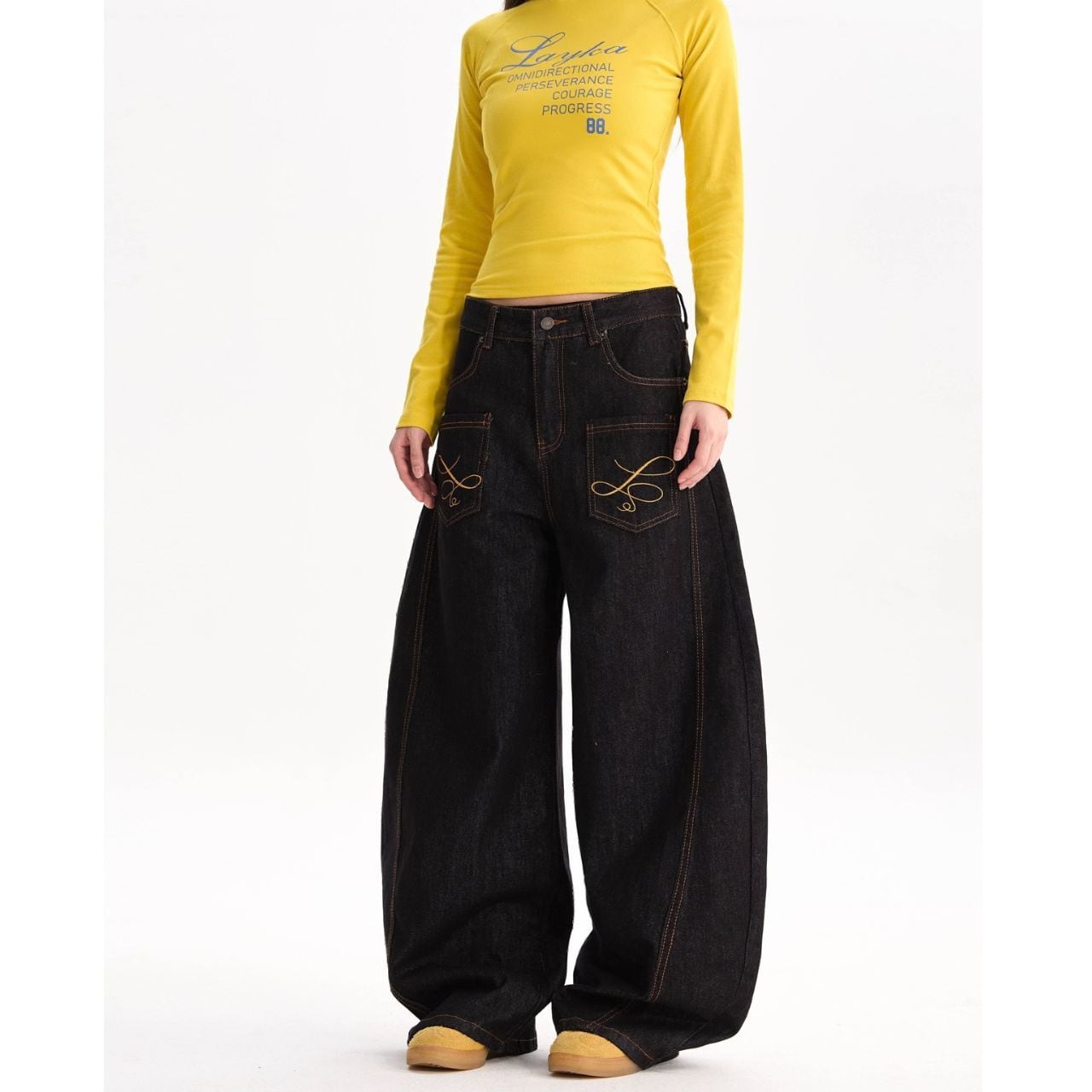パッチポケットフルレングスワイドデニムパンツ 1col R01878