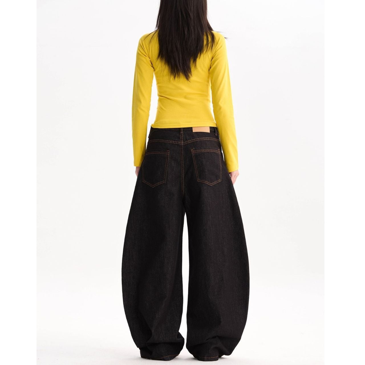 ワイドシルエットがトレンド感をプラスする、フルレングスのデニムパンツ。