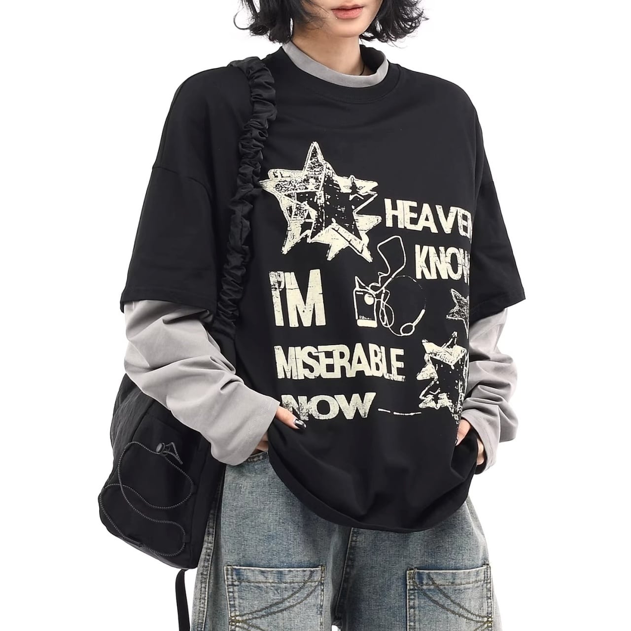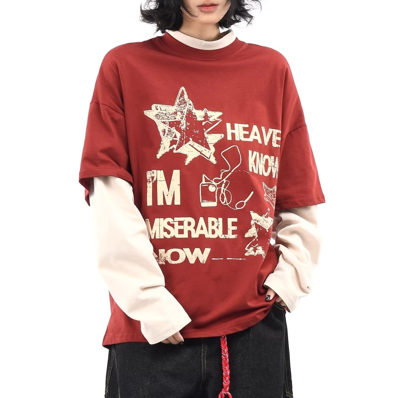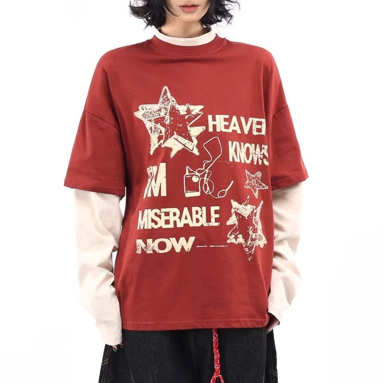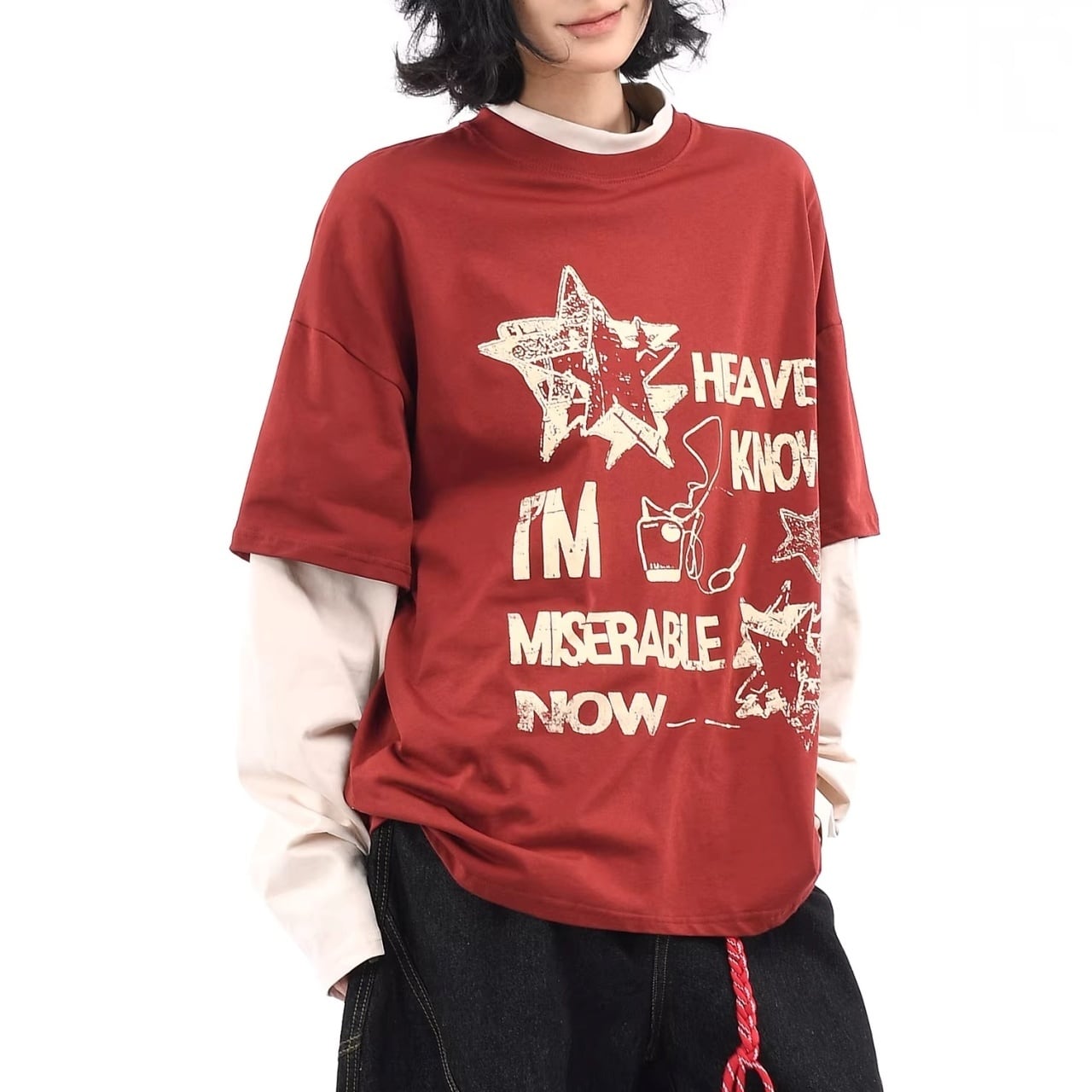 スターグラフィックプリントフェイクレイヤードTシャツ 2col R01863