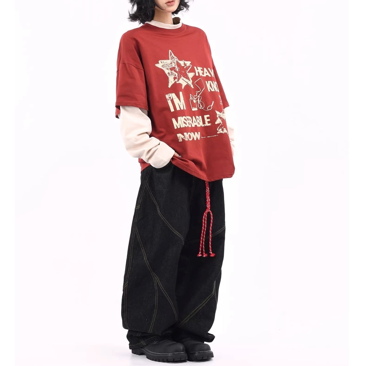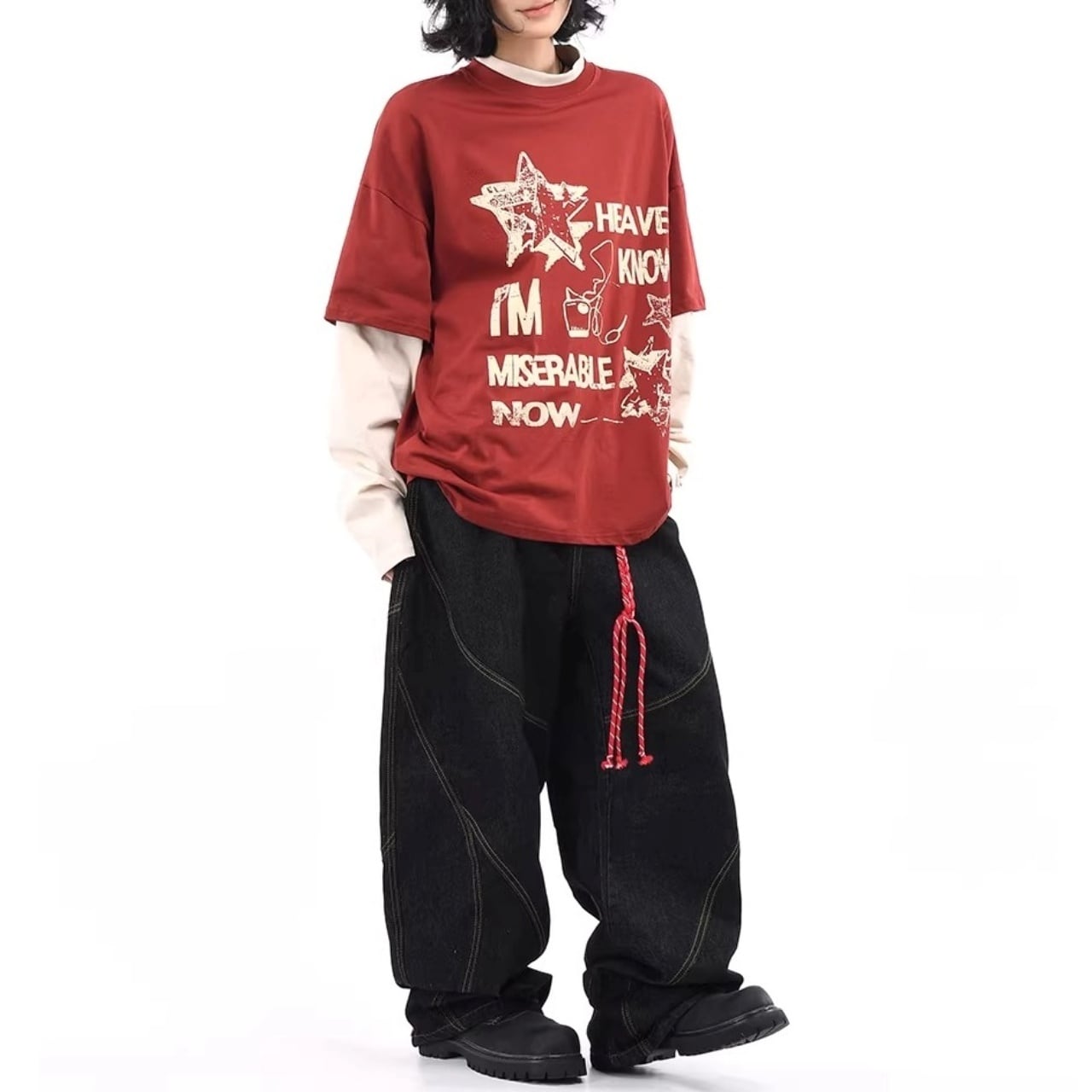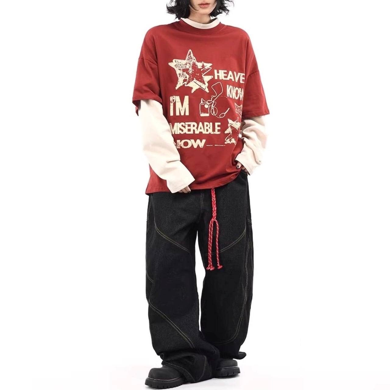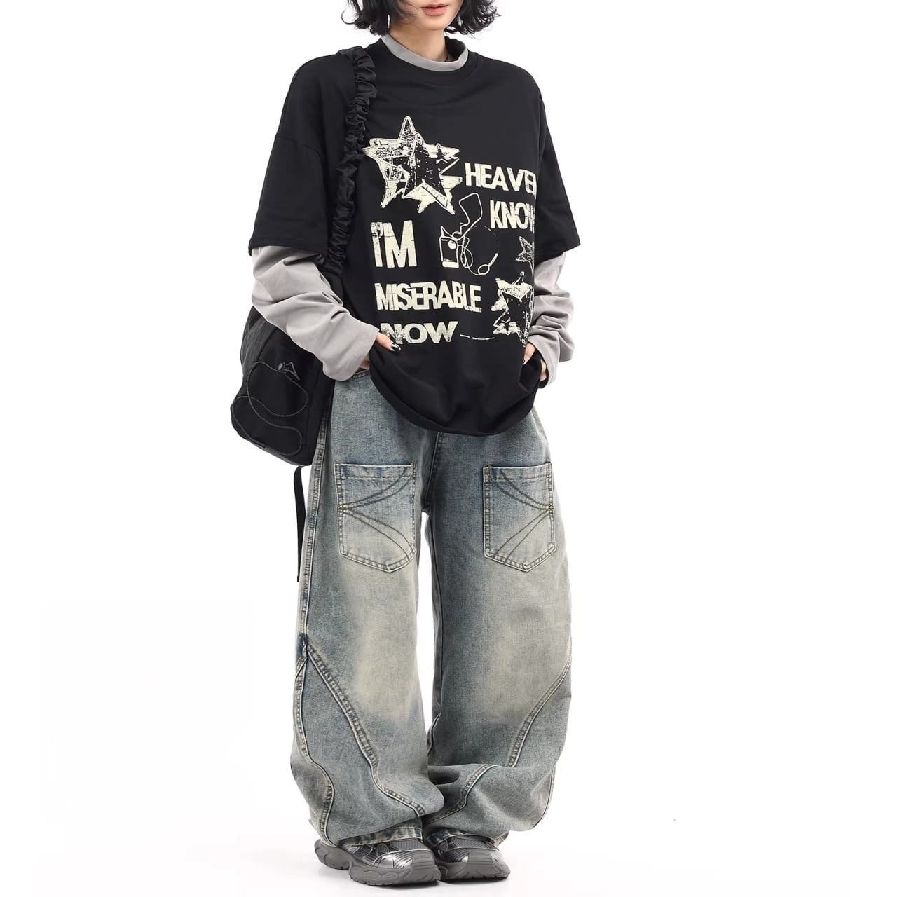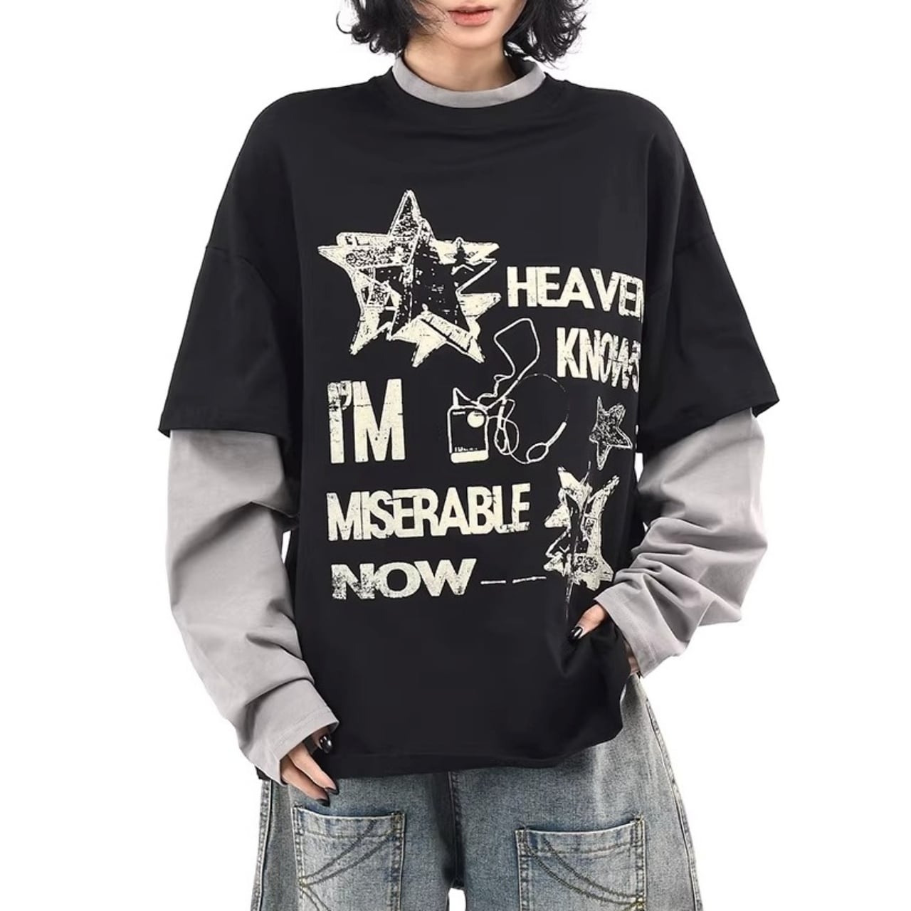 スターグラフィックプリントフェイクレイヤードTシャツ 2col R01863